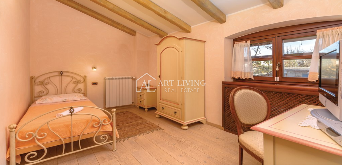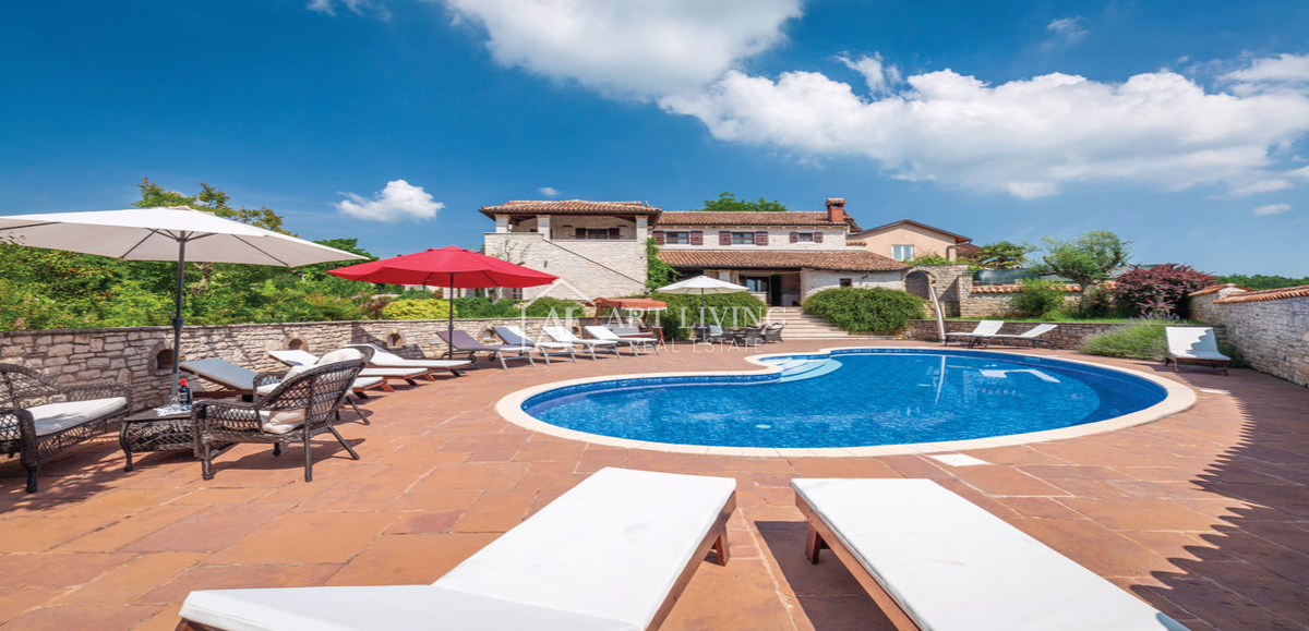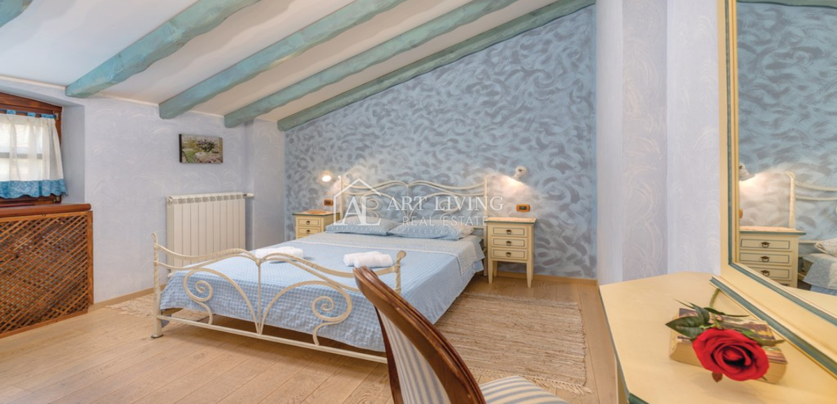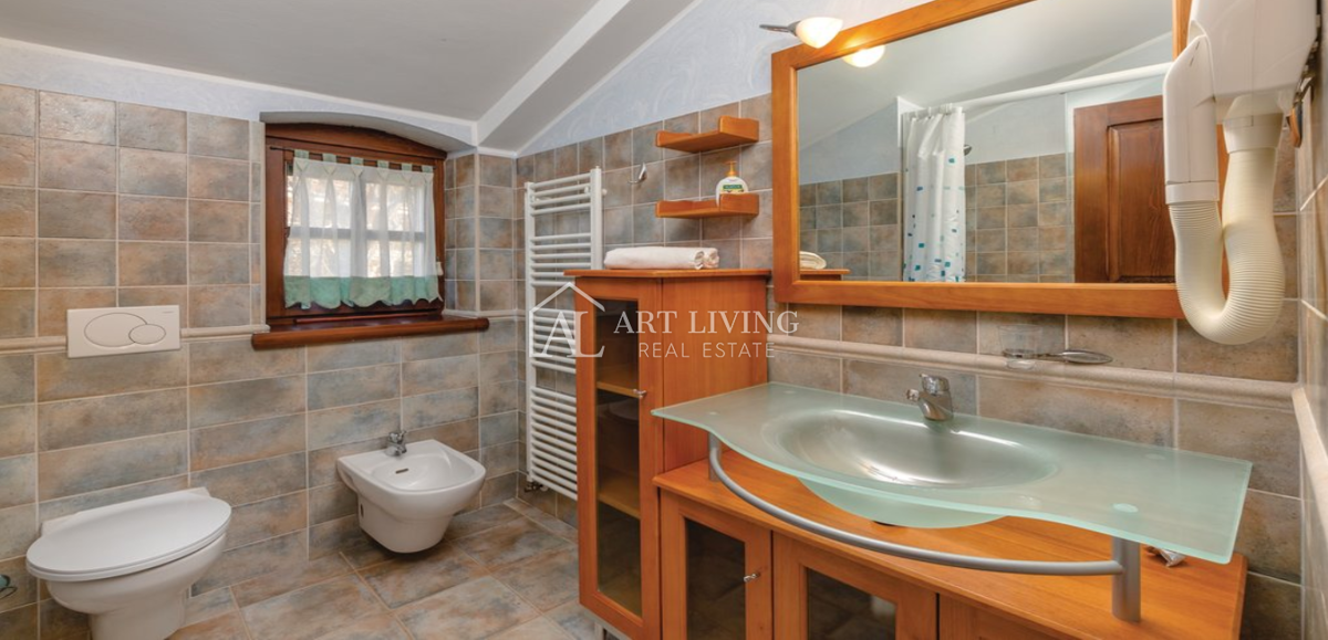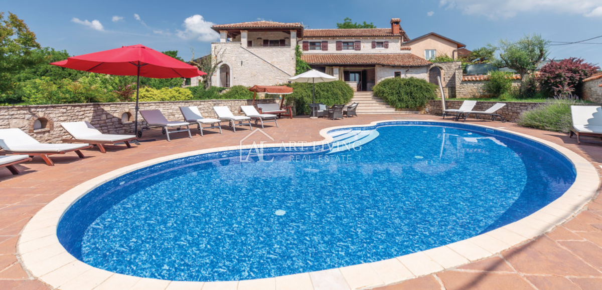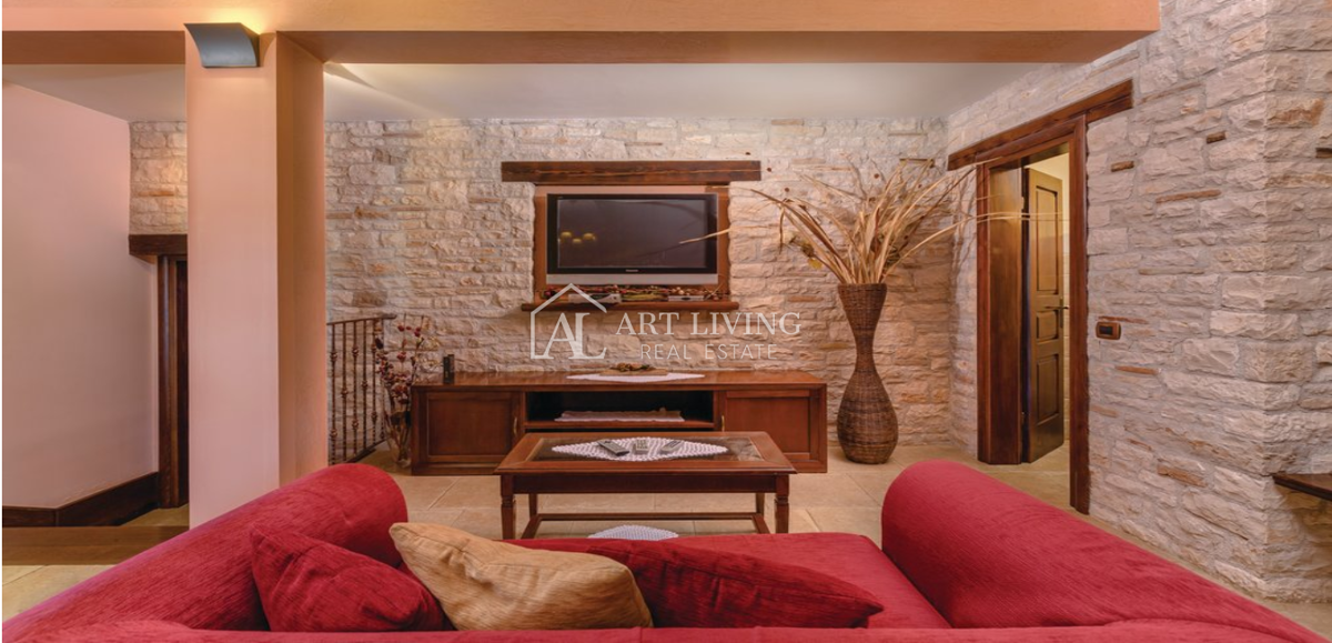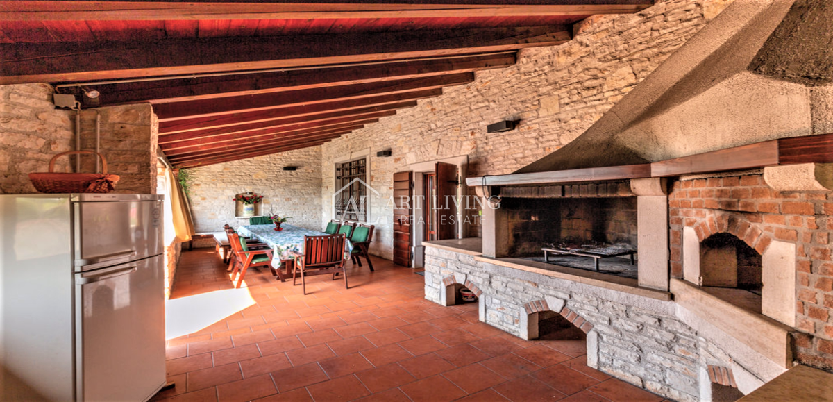 Istria, Porec, Visnjan A beautiful stone house with wooden details and a large pool is for sale. The house is located in a quiet location surrounded by nature and greenery. It is 15 km away from the ugly Porec and the sea. 40 km from the border crossing