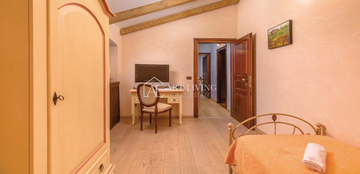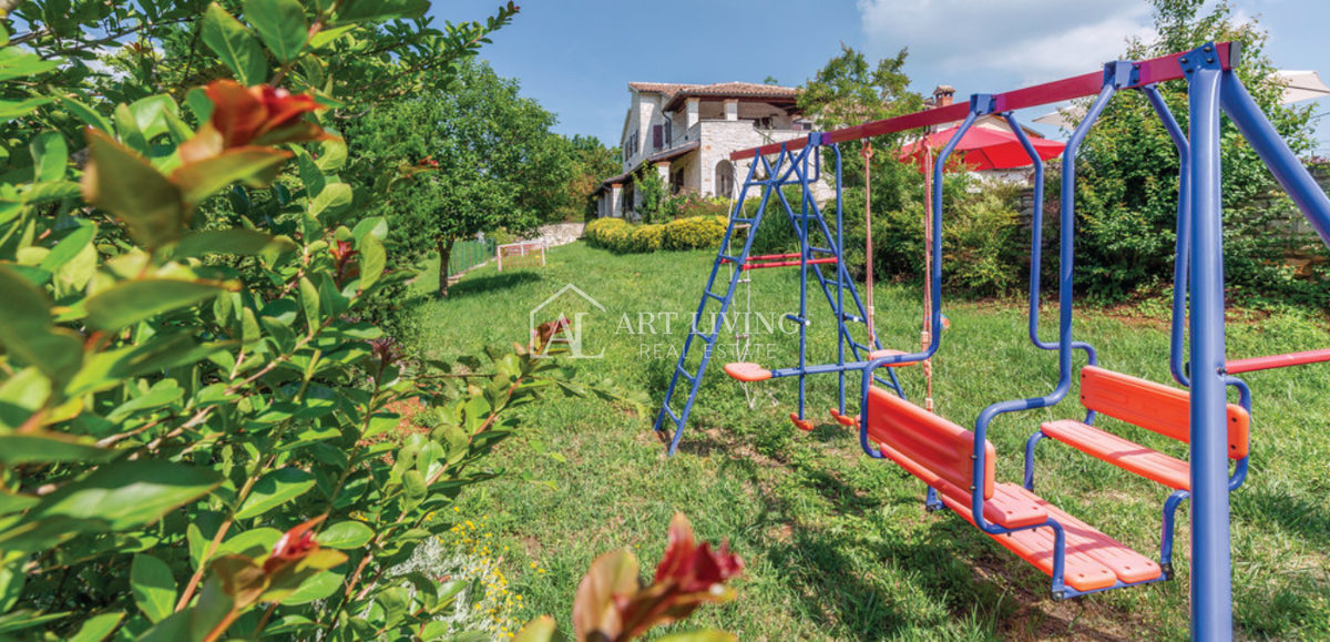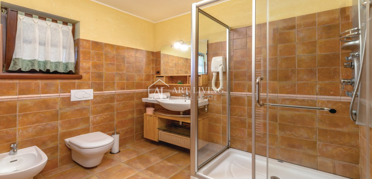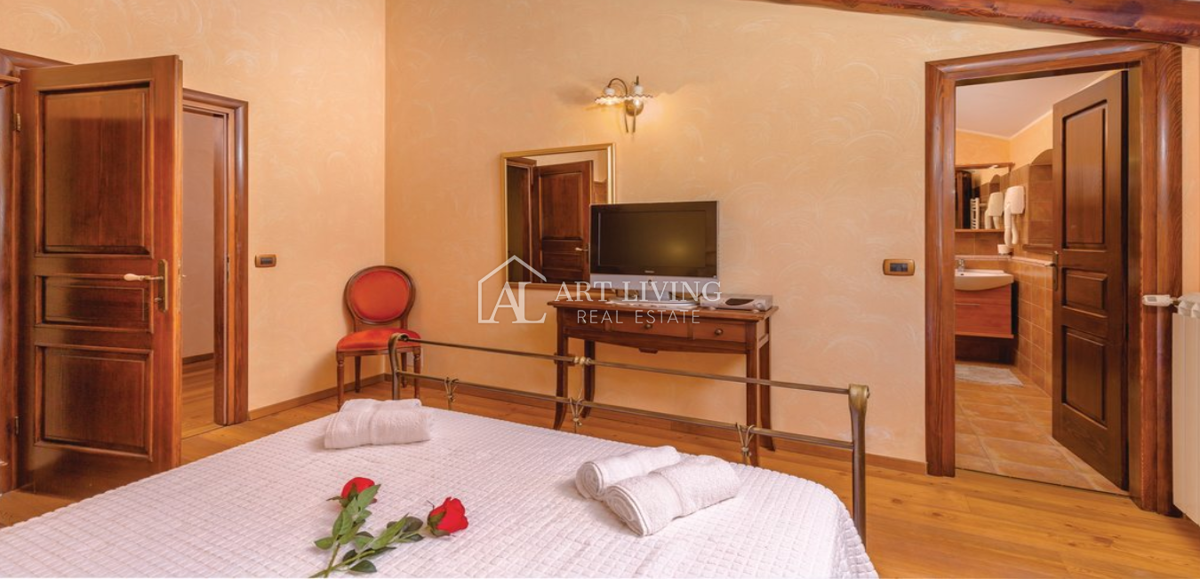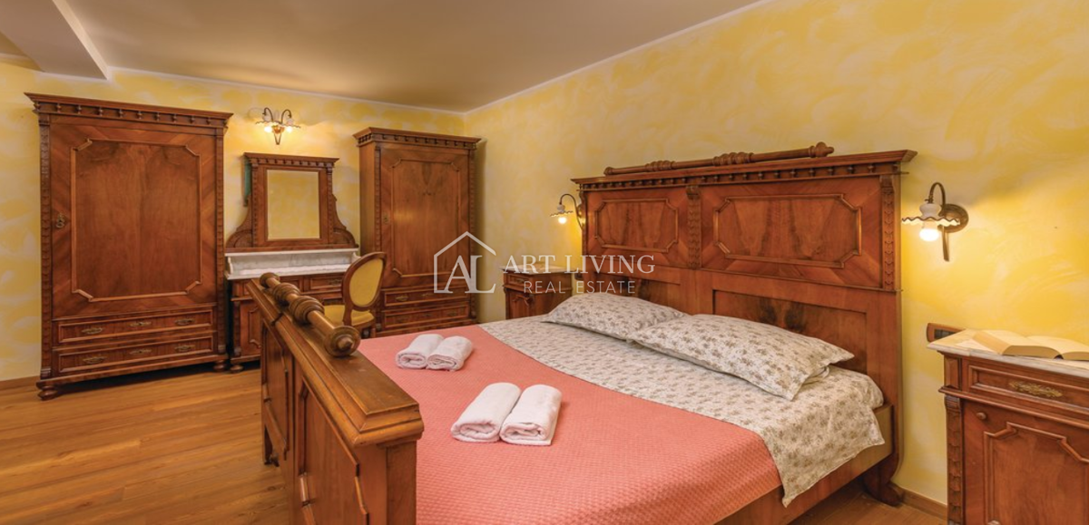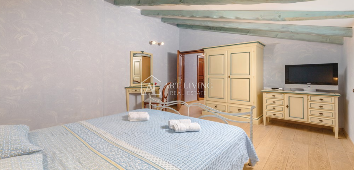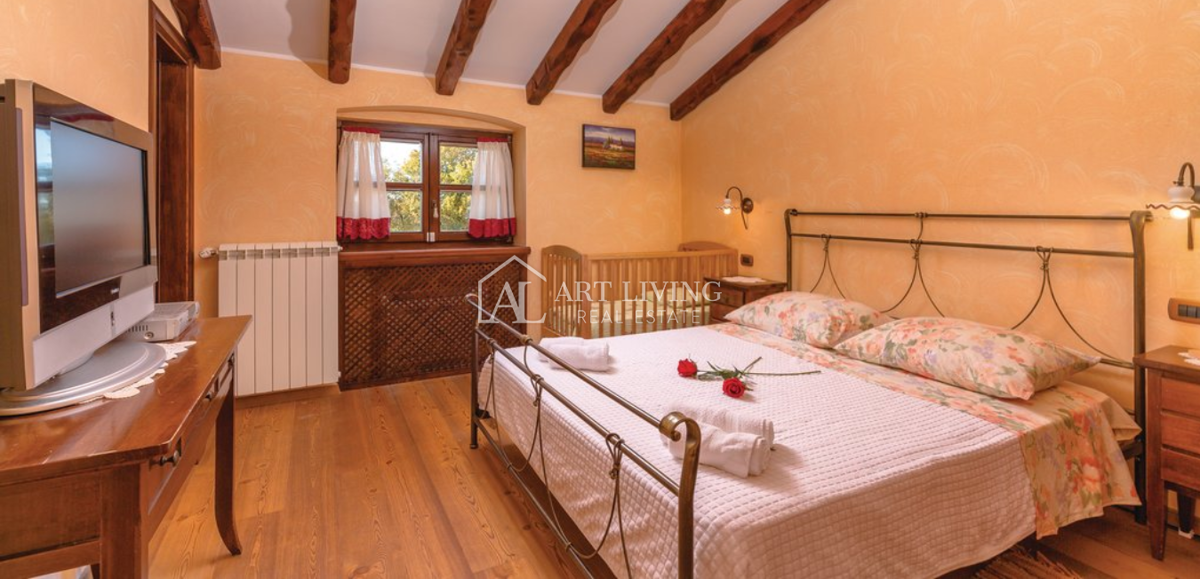 Istria, Porec, Visnjan A beautiful stone house with wooden details and a large pool is for sale. The house is located in a quiet location surrounded by nature and greenery. It is 15 km away from the ugly Porec and the sea. 40 km from the border crossing