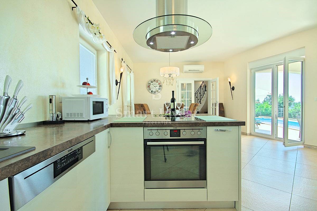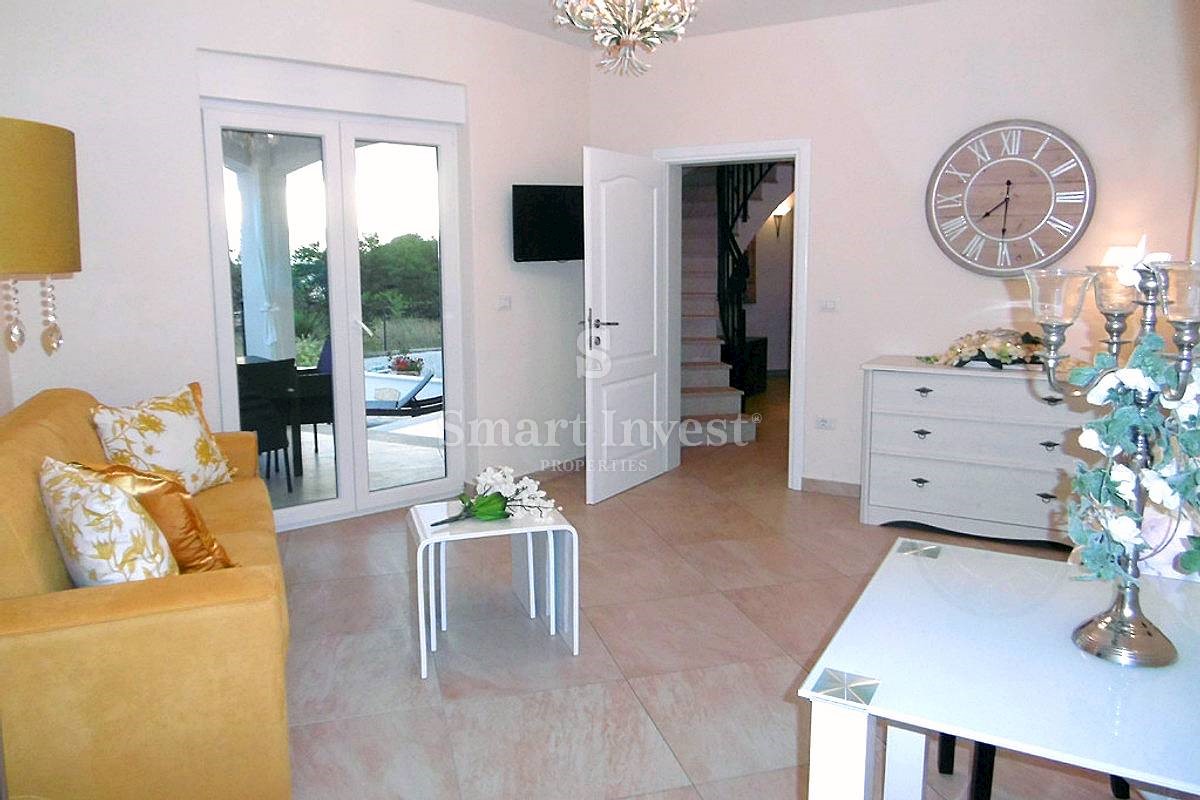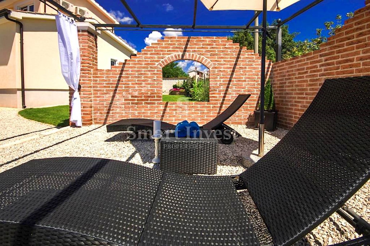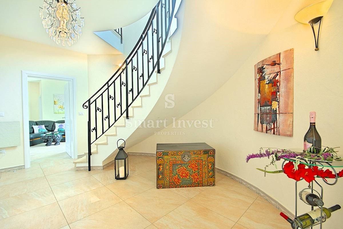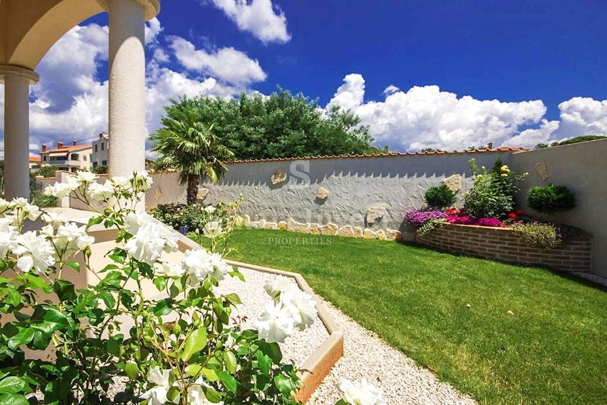 POREČ vicinity, Luxury 4-bedrooms villa with a swimming pool, spacious landscaped territory and beautiful sea view, on a quiet location 8 km away from the sea and 11 km away from the center of Poreč or Novigrad. The villa of 245 sqm is situated on a land