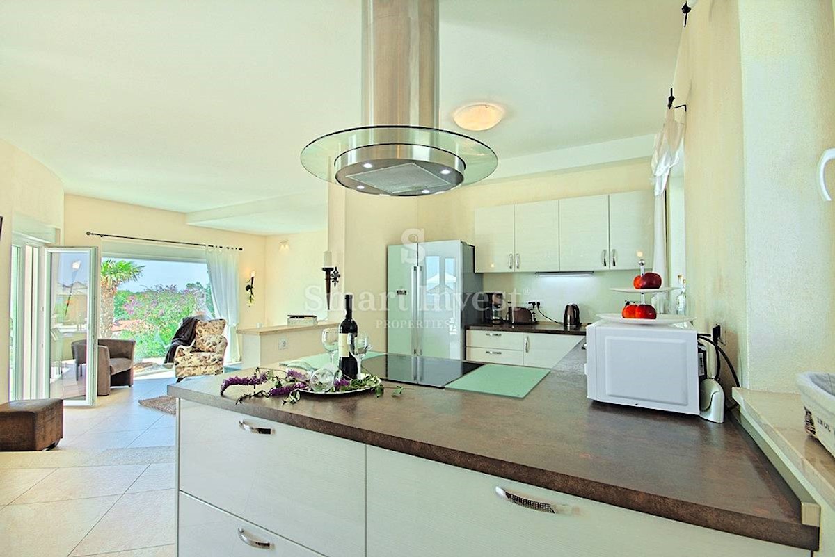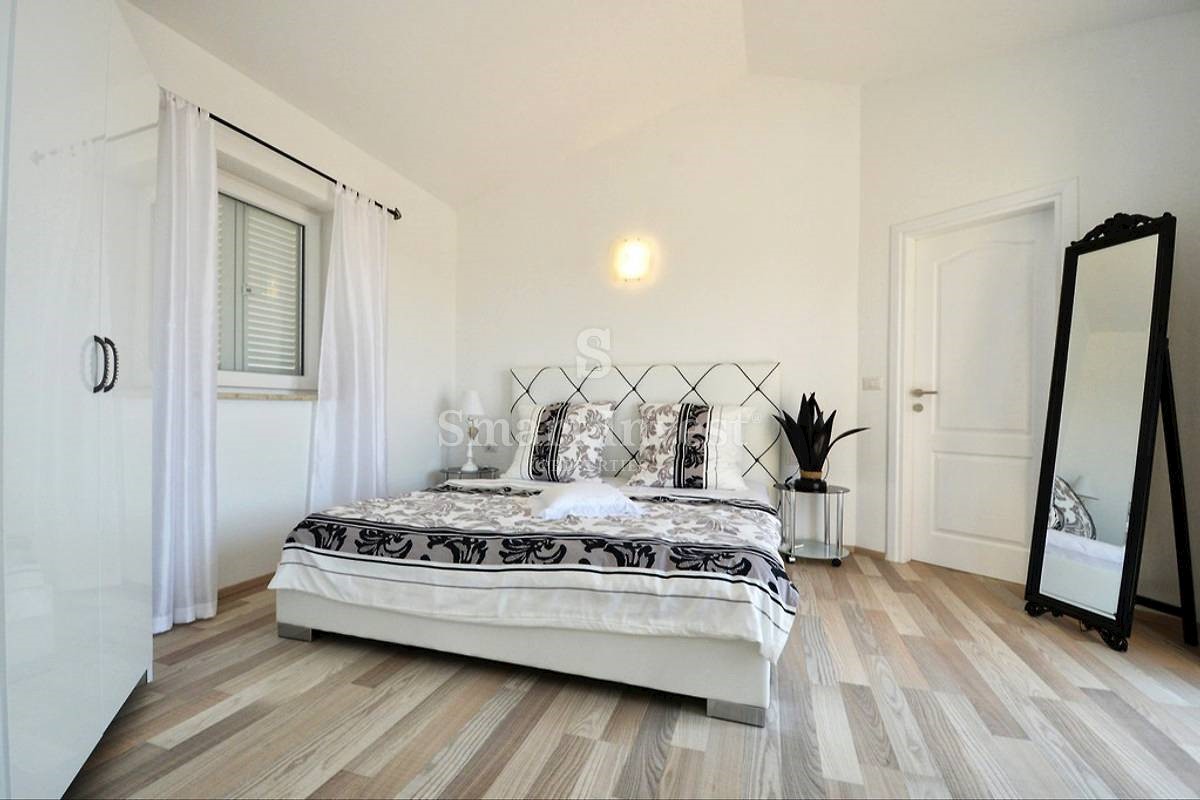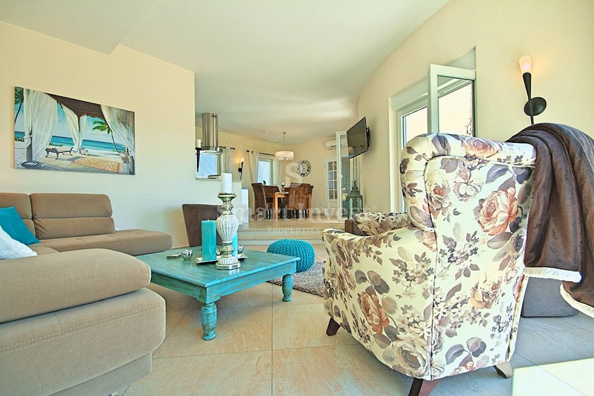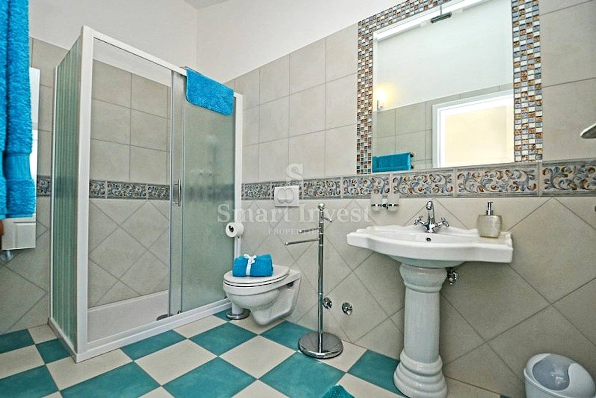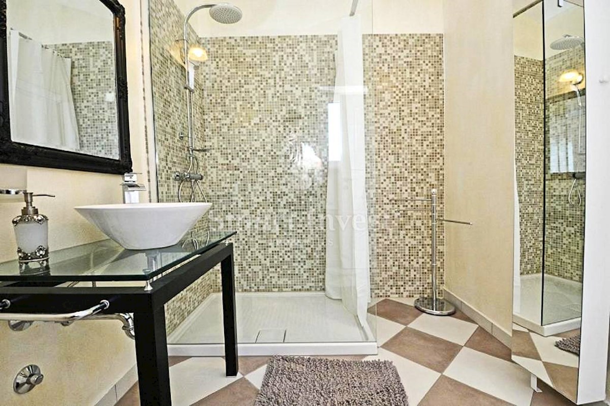 POREČ vicinity, Luxury 4-bedrooms villa with a swimming pool, spacious landscaped territory and beautiful sea view, on a quiet location 8 km away from the sea and 11 km away from the center of Poreč or Novigrad. The villa of 245 sqm is situated on a land