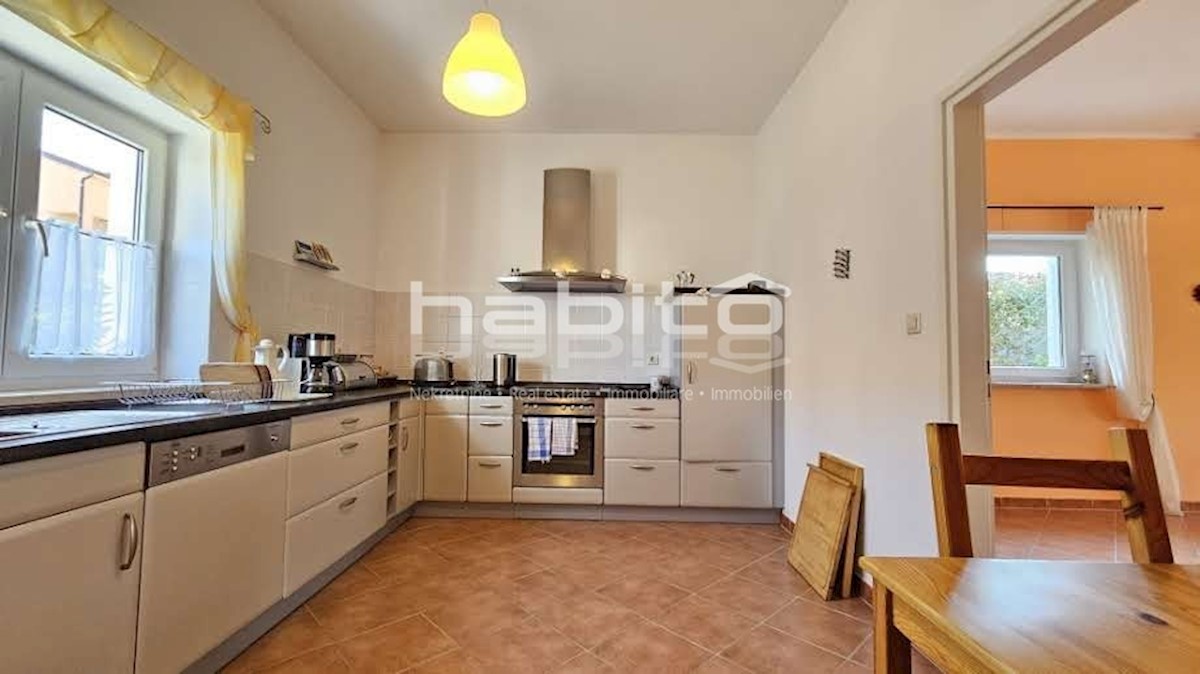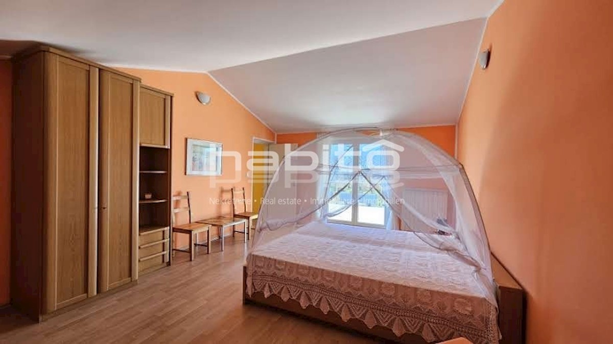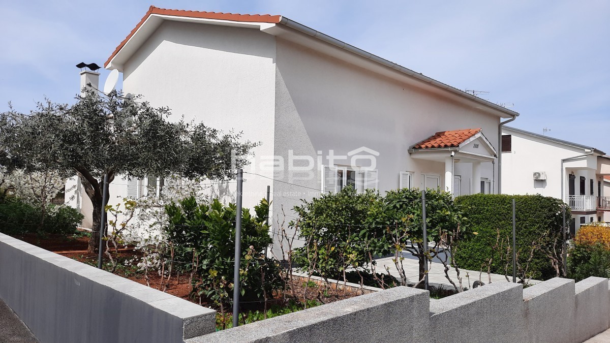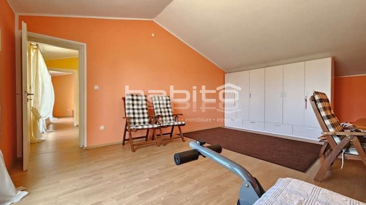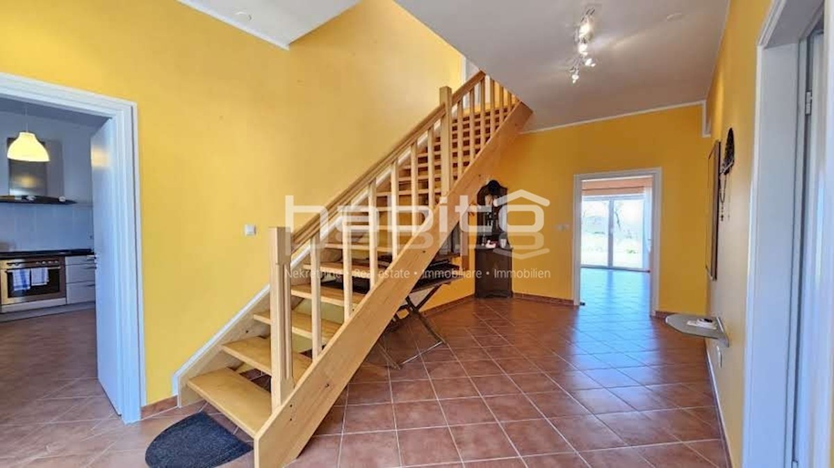 A house for sale in a great location only 5 km from the sea and the center of Porec. The house is located on the edge of the settlement and urbanized zone, providing privacy and peace. It consists of a basement, ground floor and first floor of a total of