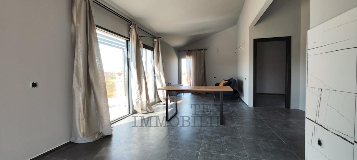 The modern ground floor house is only 20 kilometers from the center of Porec and 5.8 km from Visnjan. It is an ideal place for a peaceful living or as an investment for rent. Total area of 66 m2 + 10m2 covered terrace, consists of living room, kitchen and