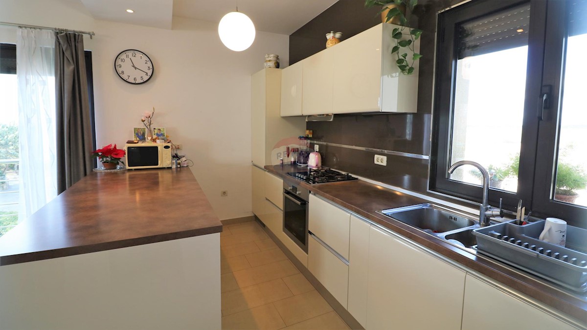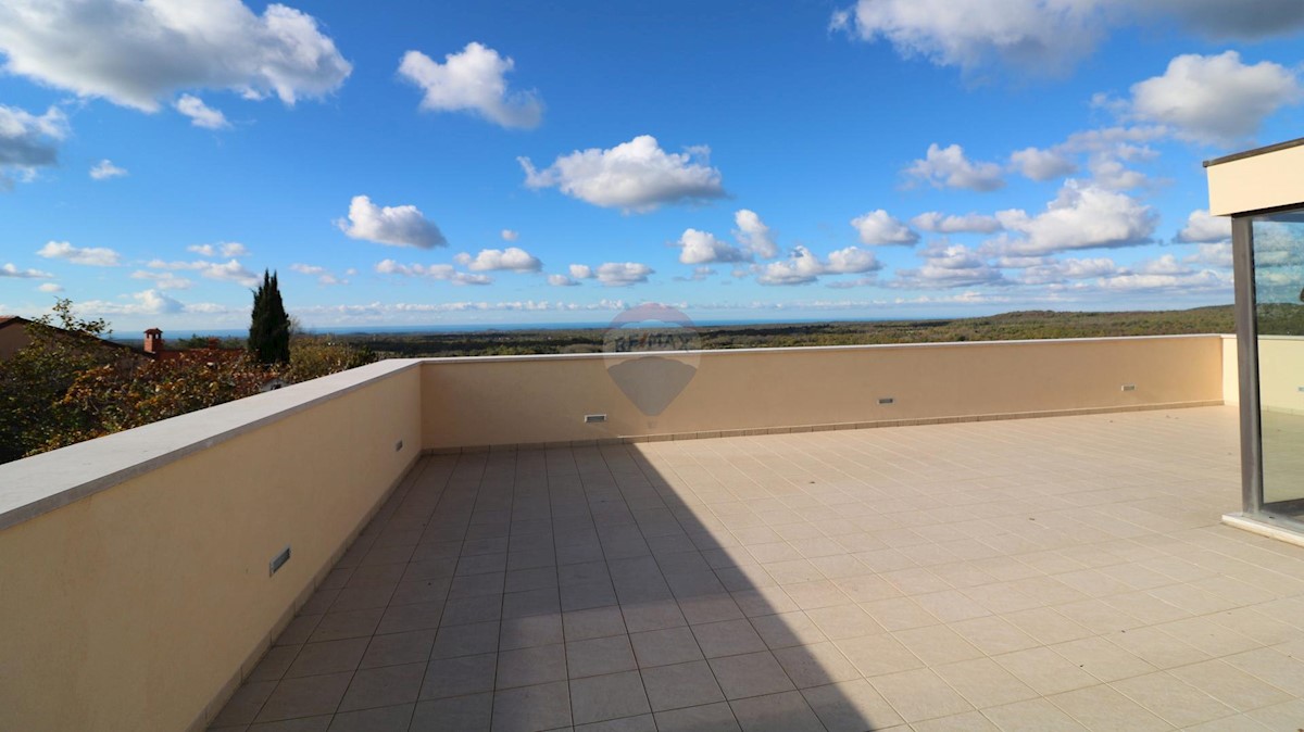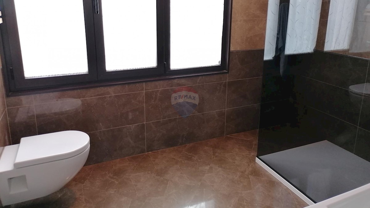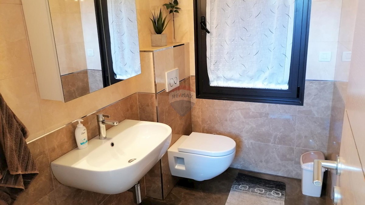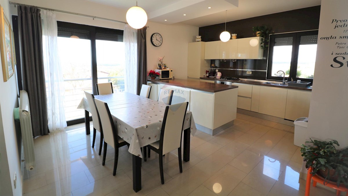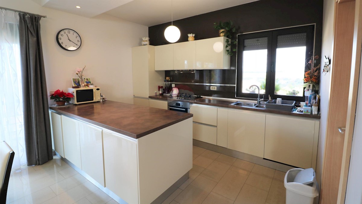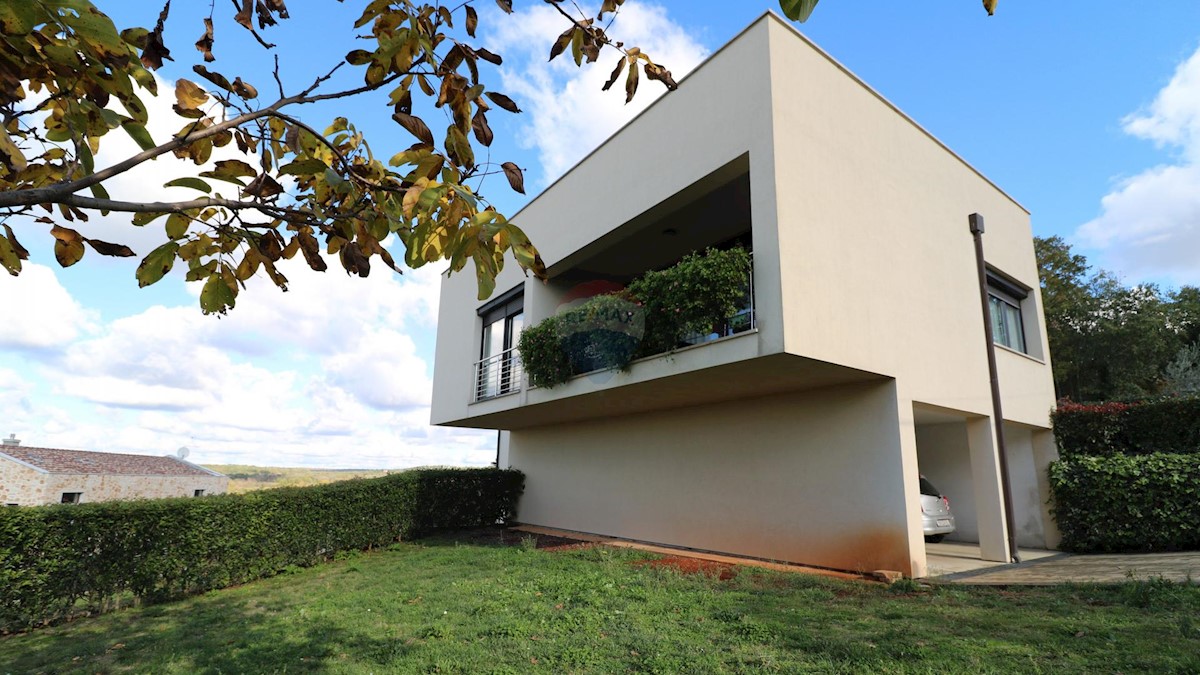 A modern house for sale, located 10 km from the sea. The house has two residential units and is organized on mezzanines that circle around the internal staircase from which all parts of the residential building are accessed. In the basement of the buildin