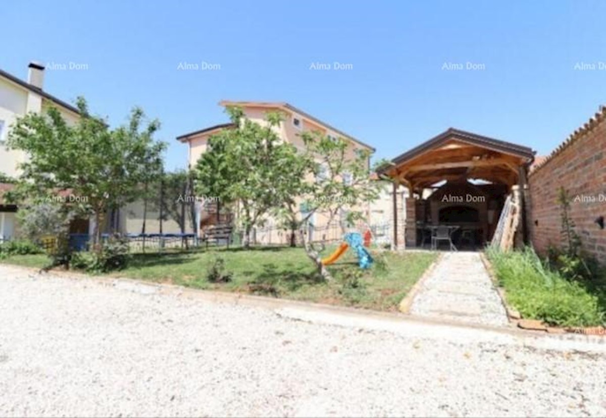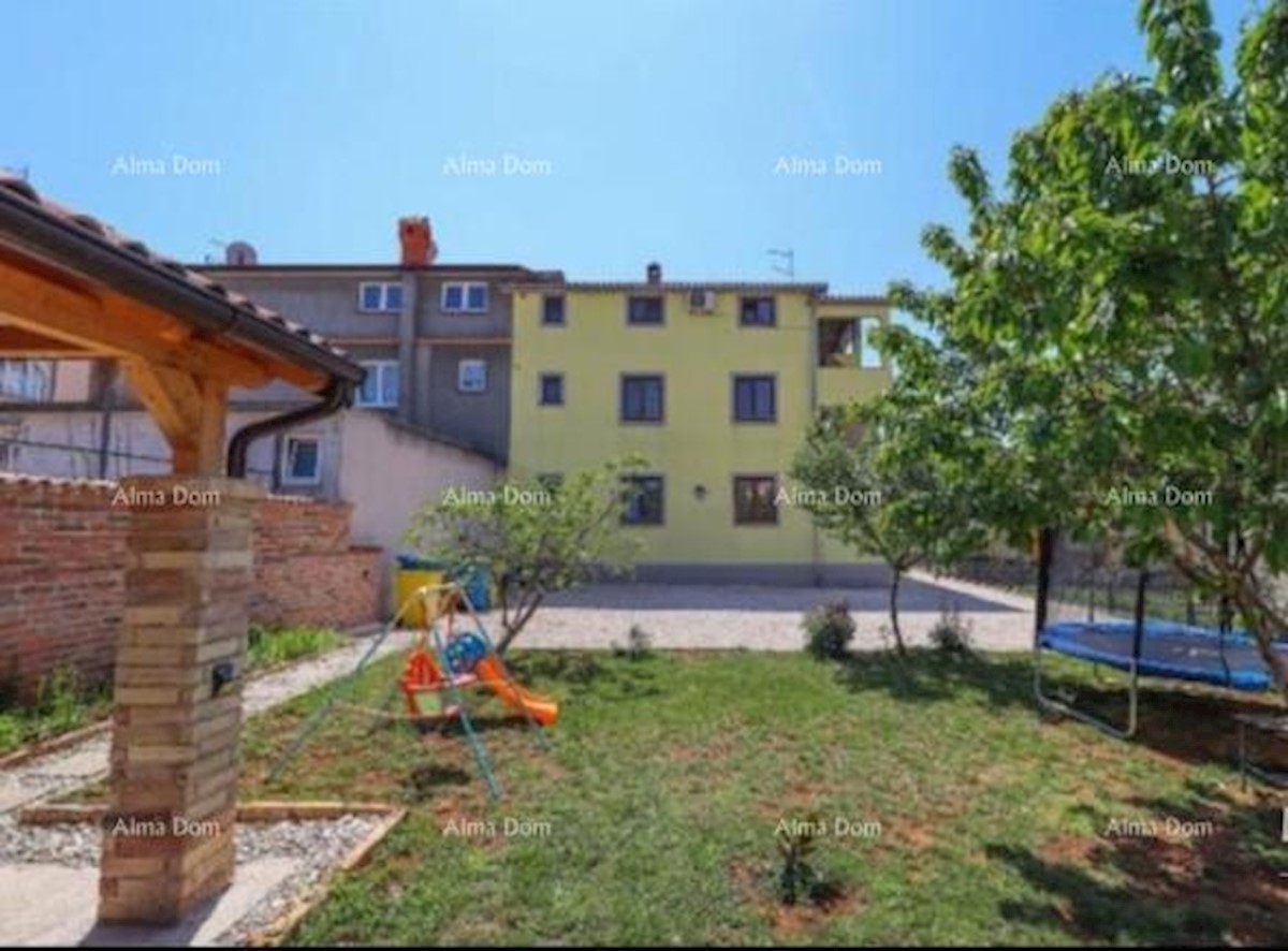 House for sale, 8 km from Poreč. The house consists of a ground floor, first floor and second floor. On the ground floor there is a large apartment of 154m2 consisting of 2 bedrooms, kitchen with dining room, living room, toilet, bathroom and terrace of 3