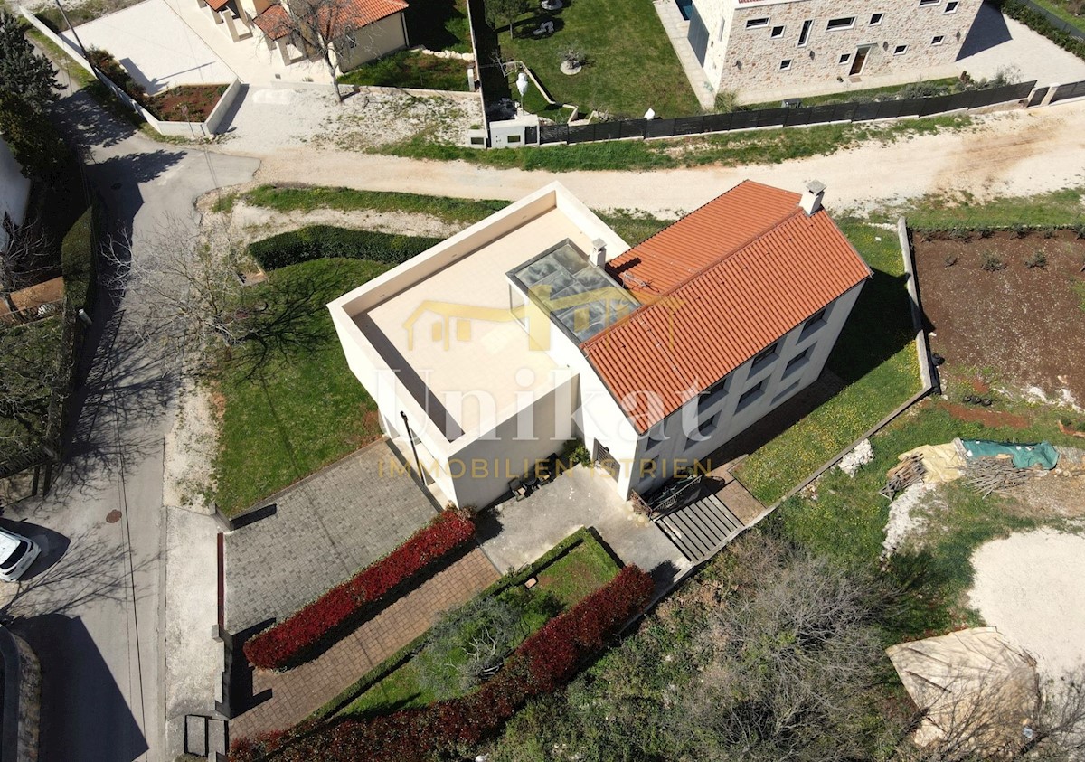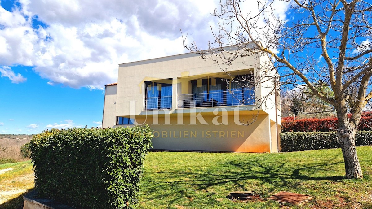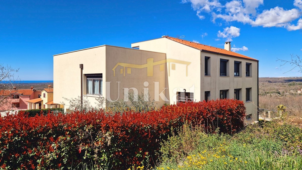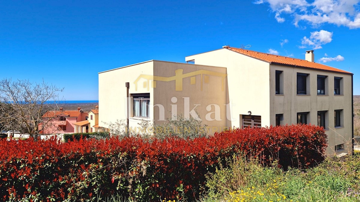 A beautiful free-standing house with two residential units in a small town 12 km from Poreč and the sea. The house has a beautiful view of the sea and the Alps. In the basement of the house there is a tavern with a kitchen, a fireplace, a bathroom and a g