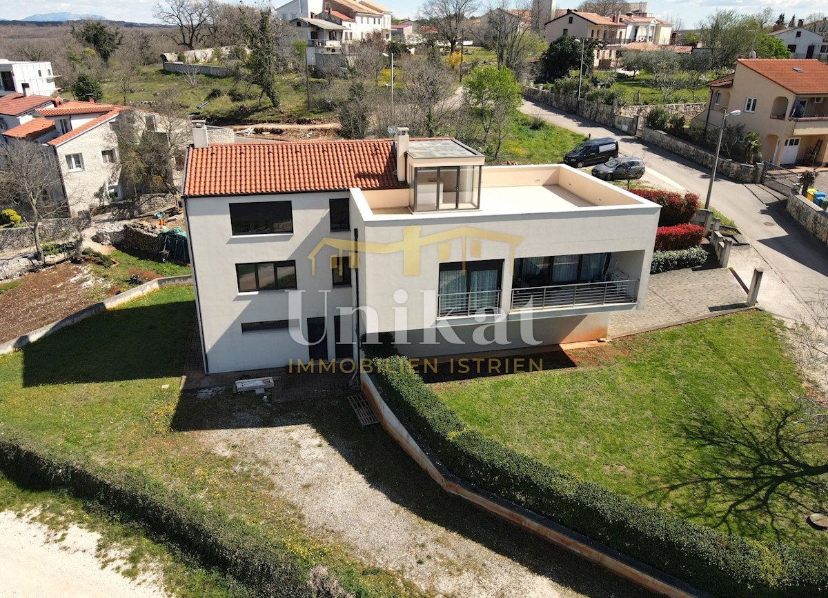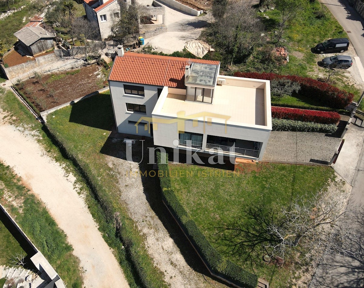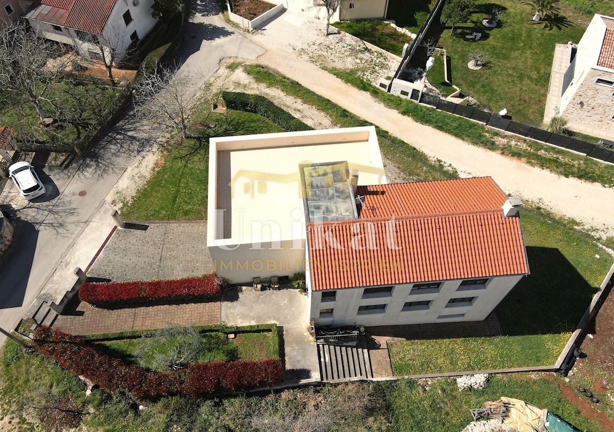 A beautiful free-standing house with two residential units in a small town 12 km from Poreč and the sea. The house has a beautiful view of the sea and the Alps. In the basement of the house there is a tavern with a kitchen, a fireplace, a bathroom and a g