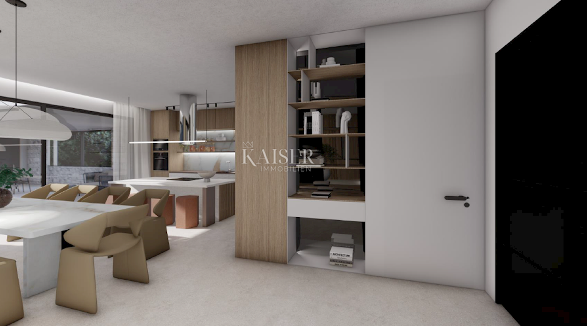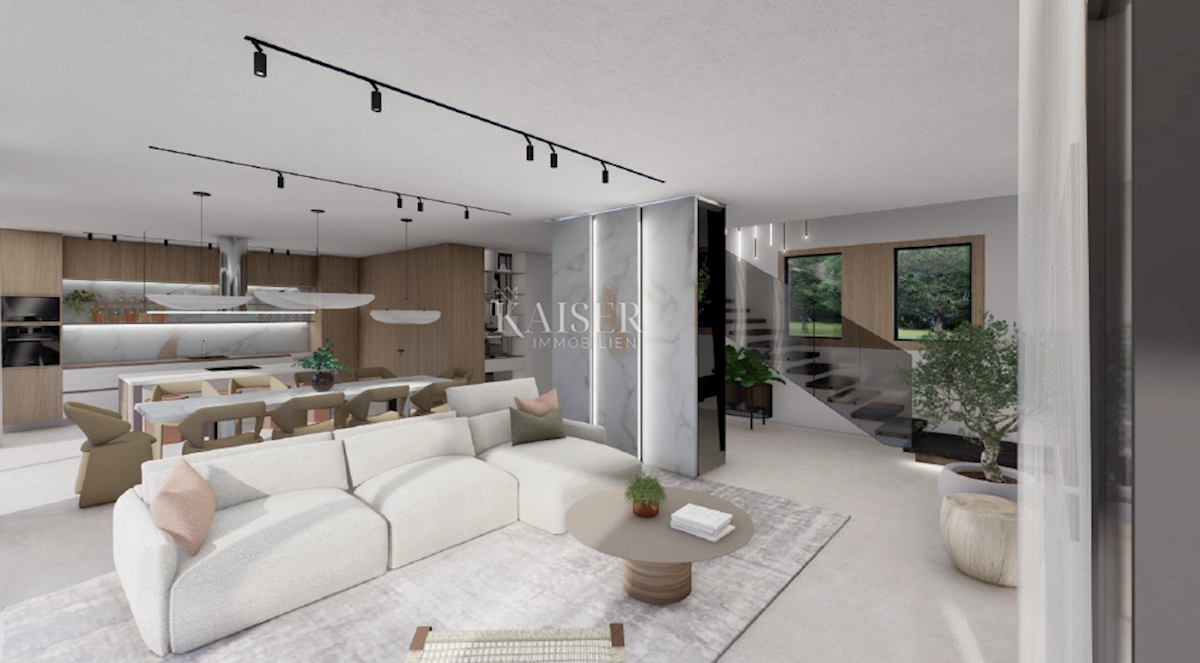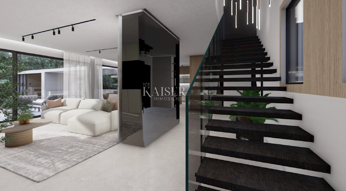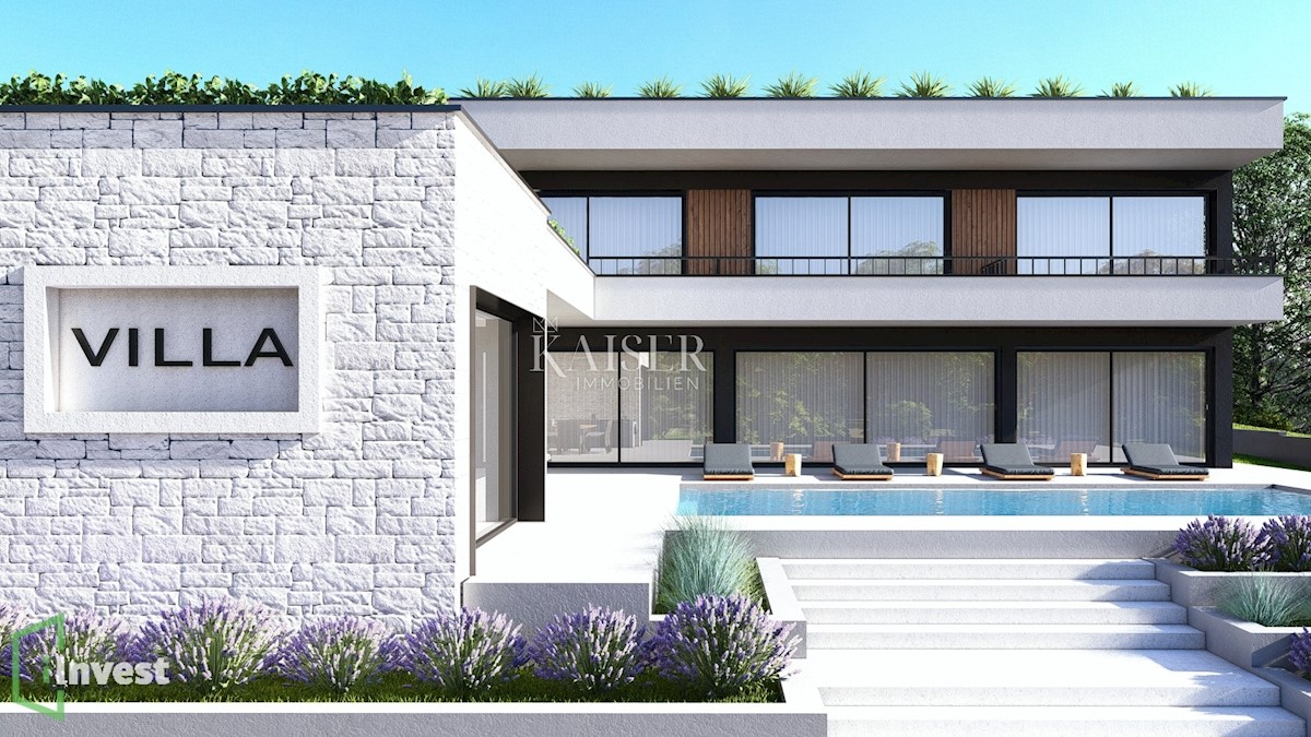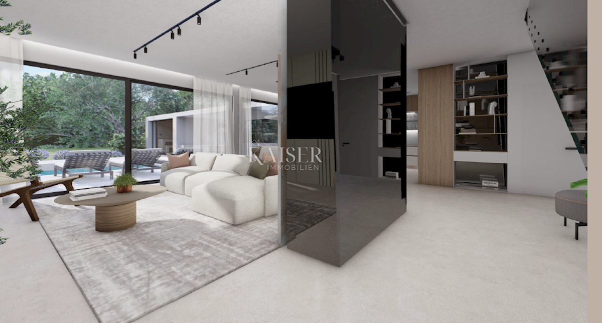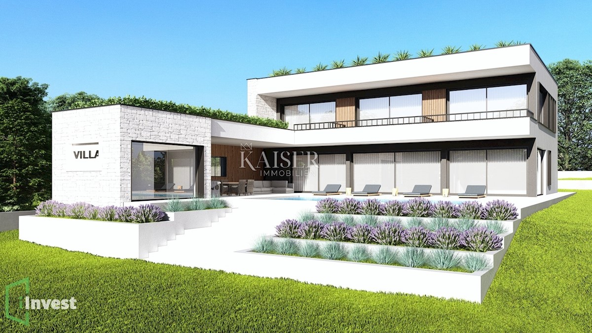 Kaiser Immobilien presents a new exclusive villa with a sea view. The villa is located on the northwestern coast of Istria, only a few kilometers from the town of Poreč. It is located in a small traditional Istrian settlement with basic amenities such as