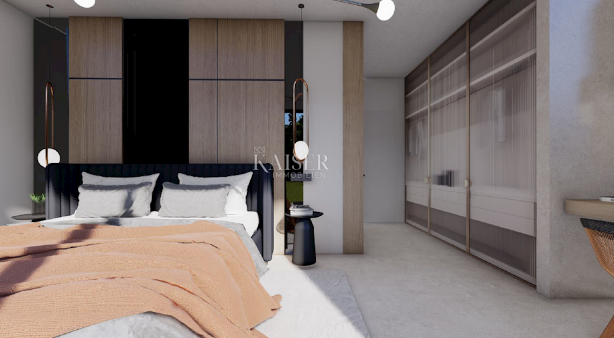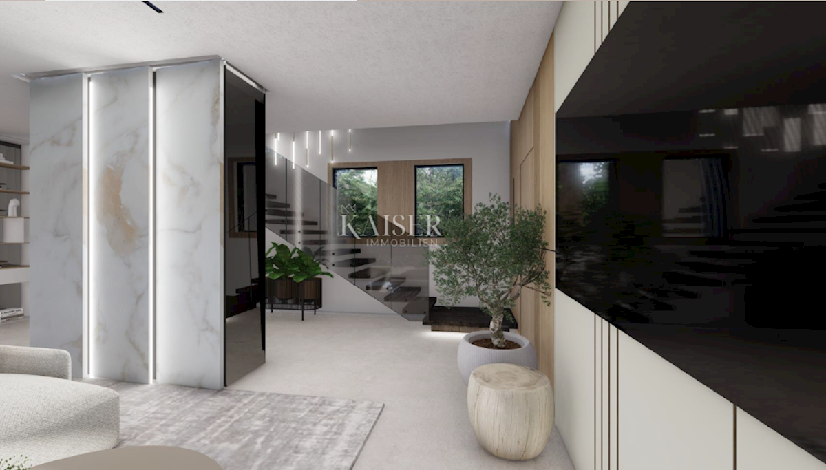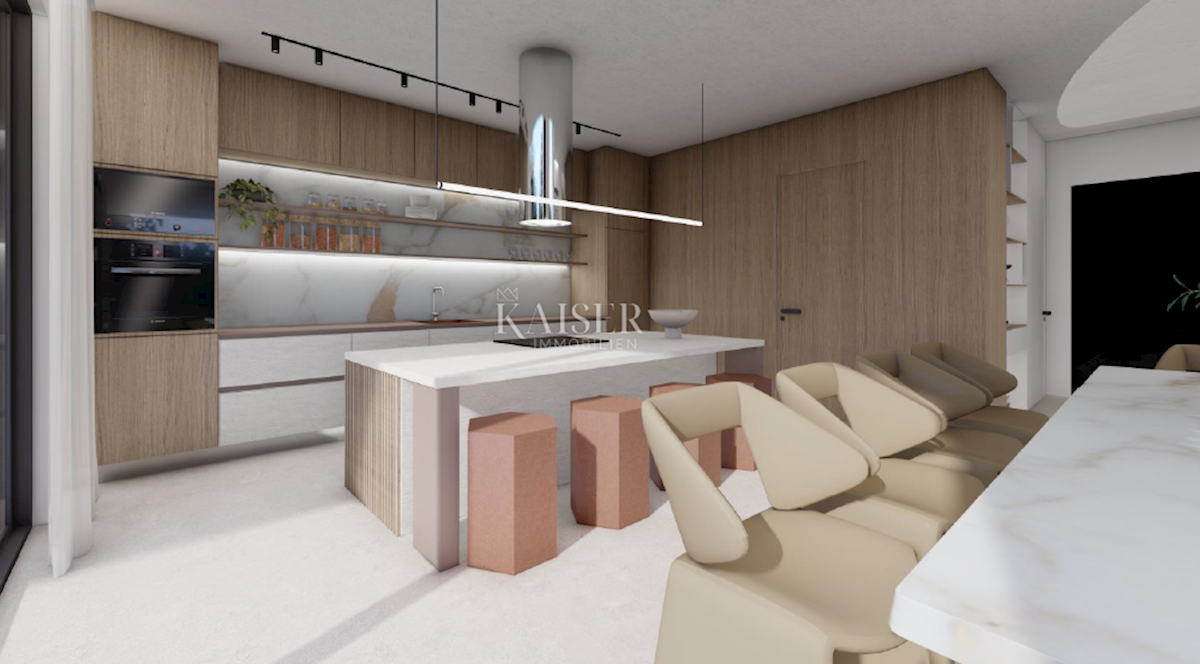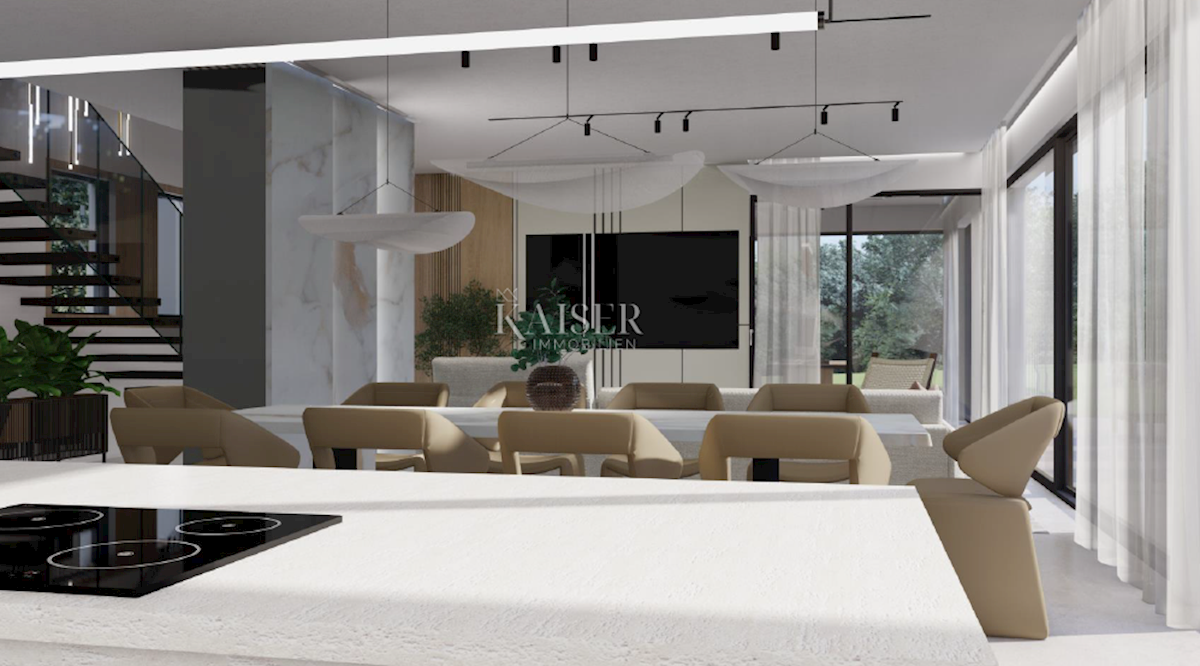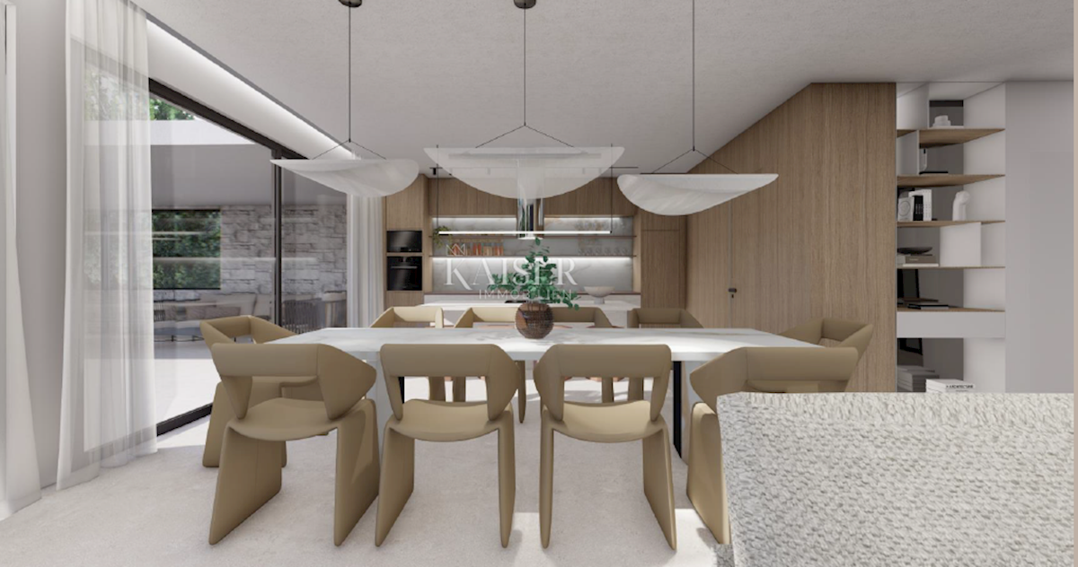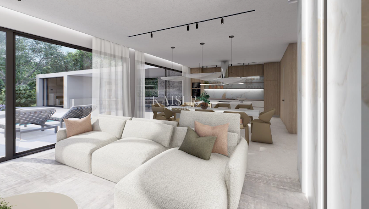 Kaiser Immobilien presents a new exclusive villa with a sea view. The villa is located on the northwestern coast of Istria, only a few kilometers from the town of Poreč. It is located in a small traditional Istrian settlement with basic amenities such as