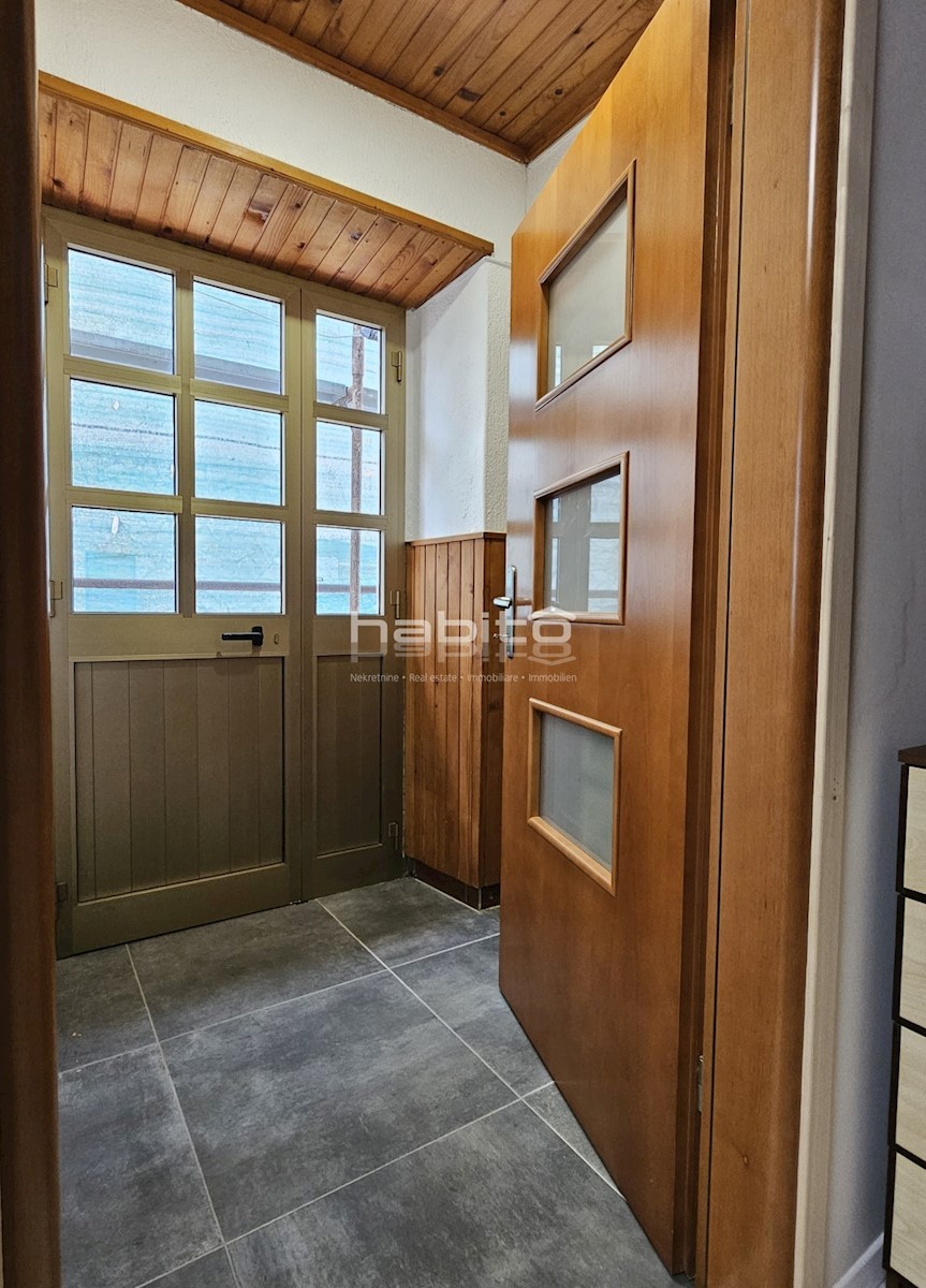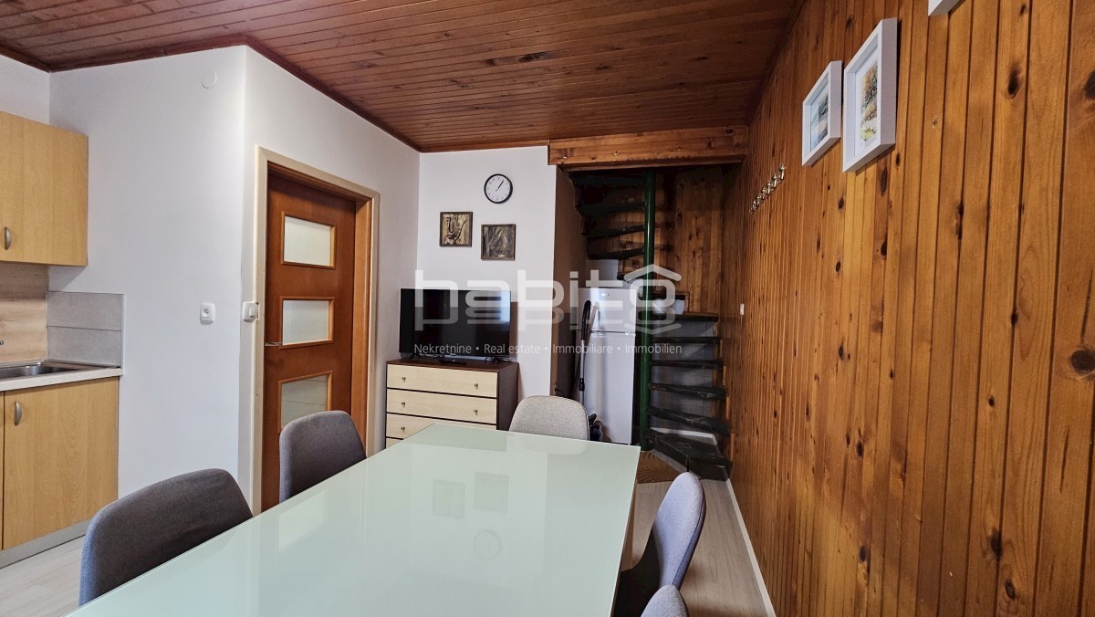 A stone house for sale in the centre of the village, only 2 km from the sea. The house consists of three floors with a total of 82 m2. The ground floor offers an entrance hall, a bathroom and a kitchen with a dining area. On the first floor there is anoth