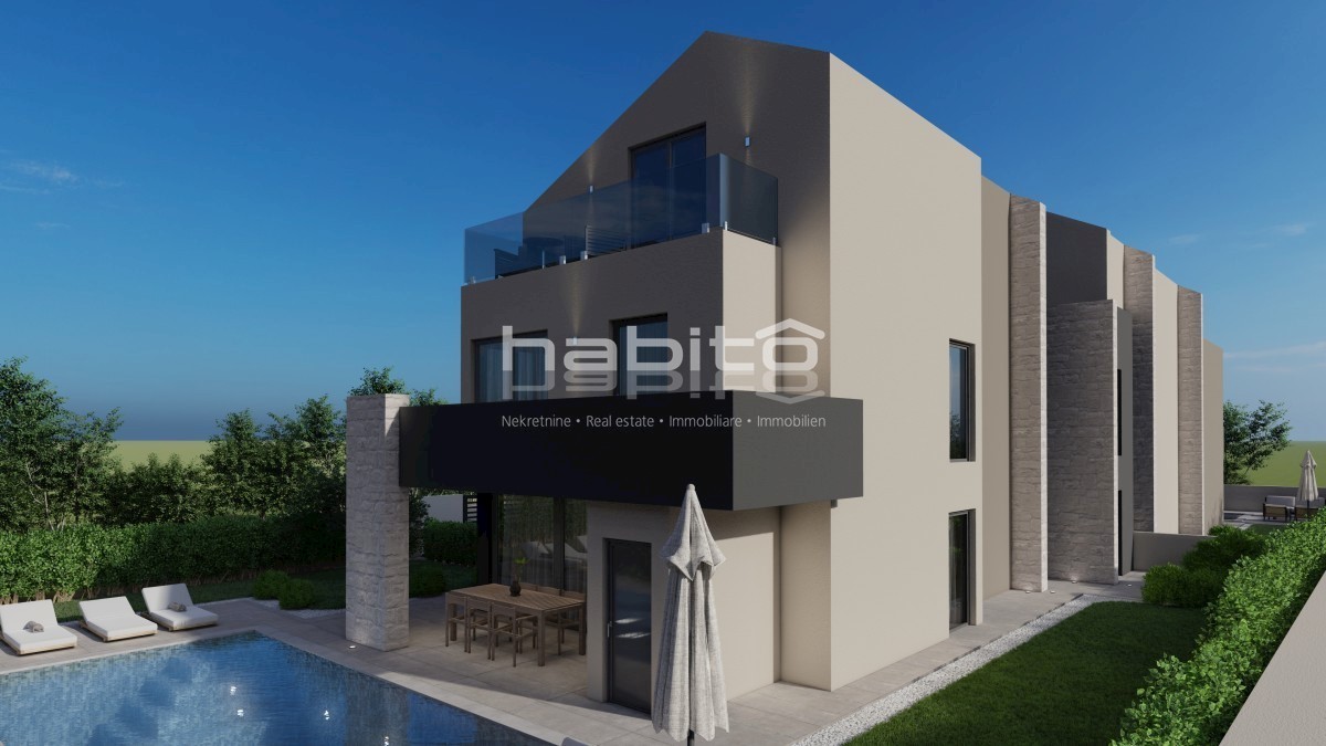 This high-quality villa is for sale in a quiet location, only 1 km from the center of Porec and 500 m from the sea. The house consists of a ground floor and two floors and contains a living room, kitchen, dining room, laundry/storage room on the ground fl