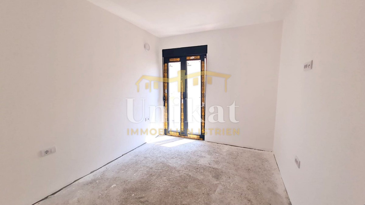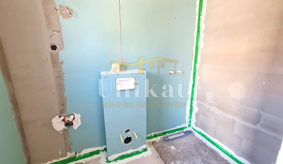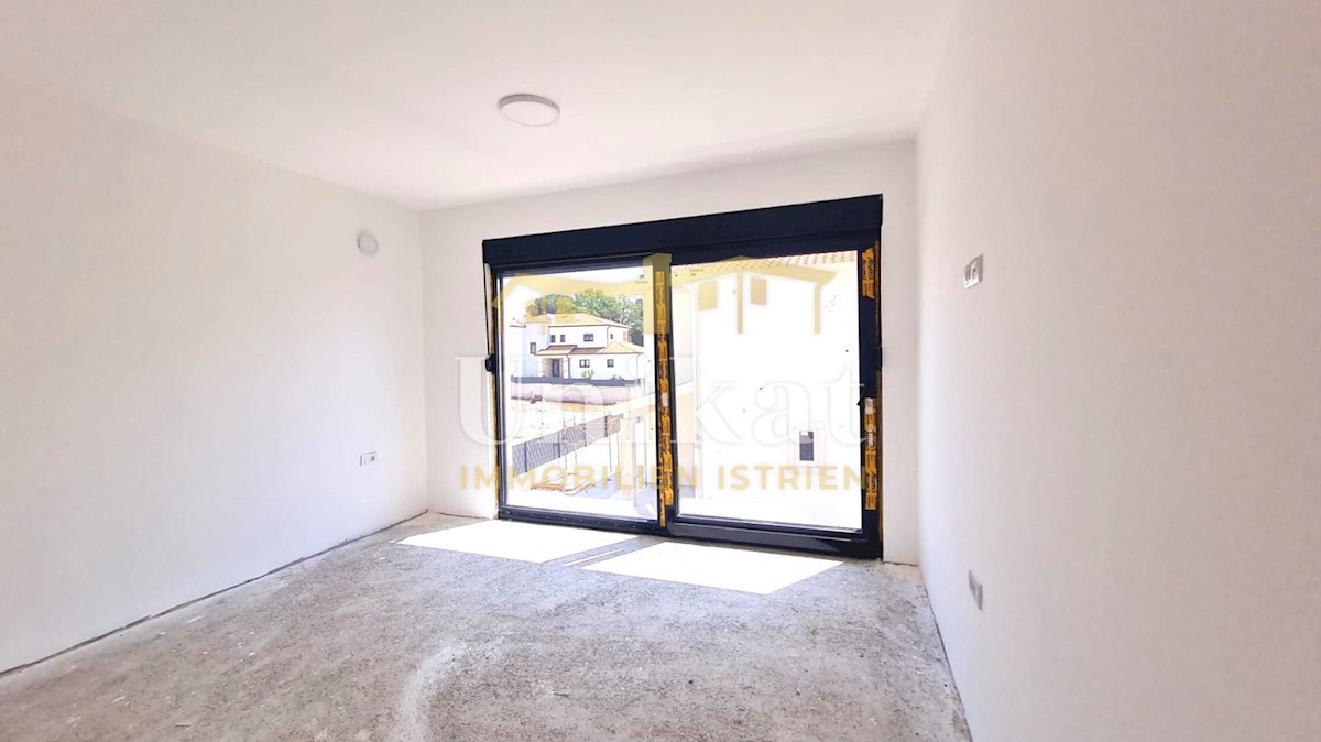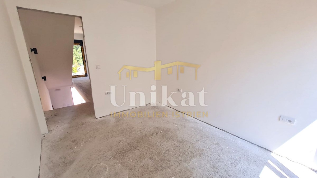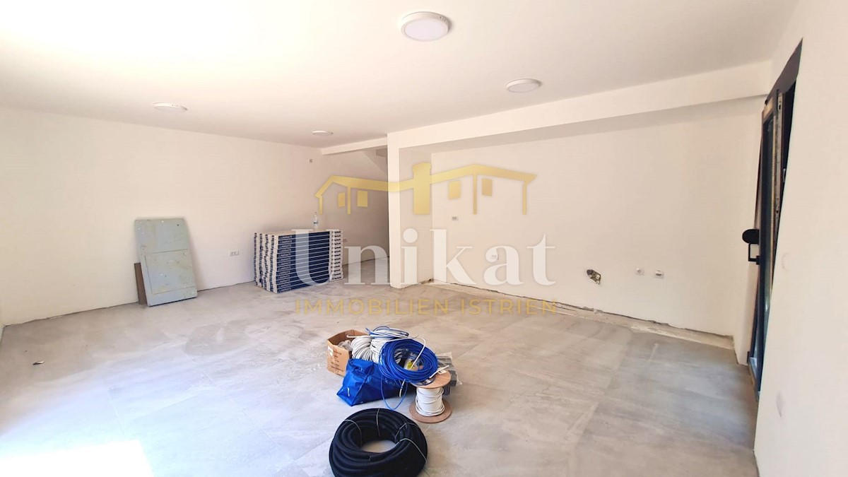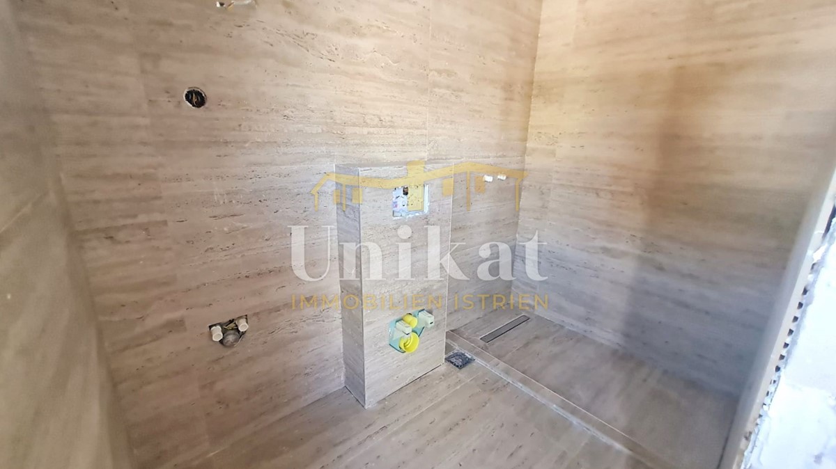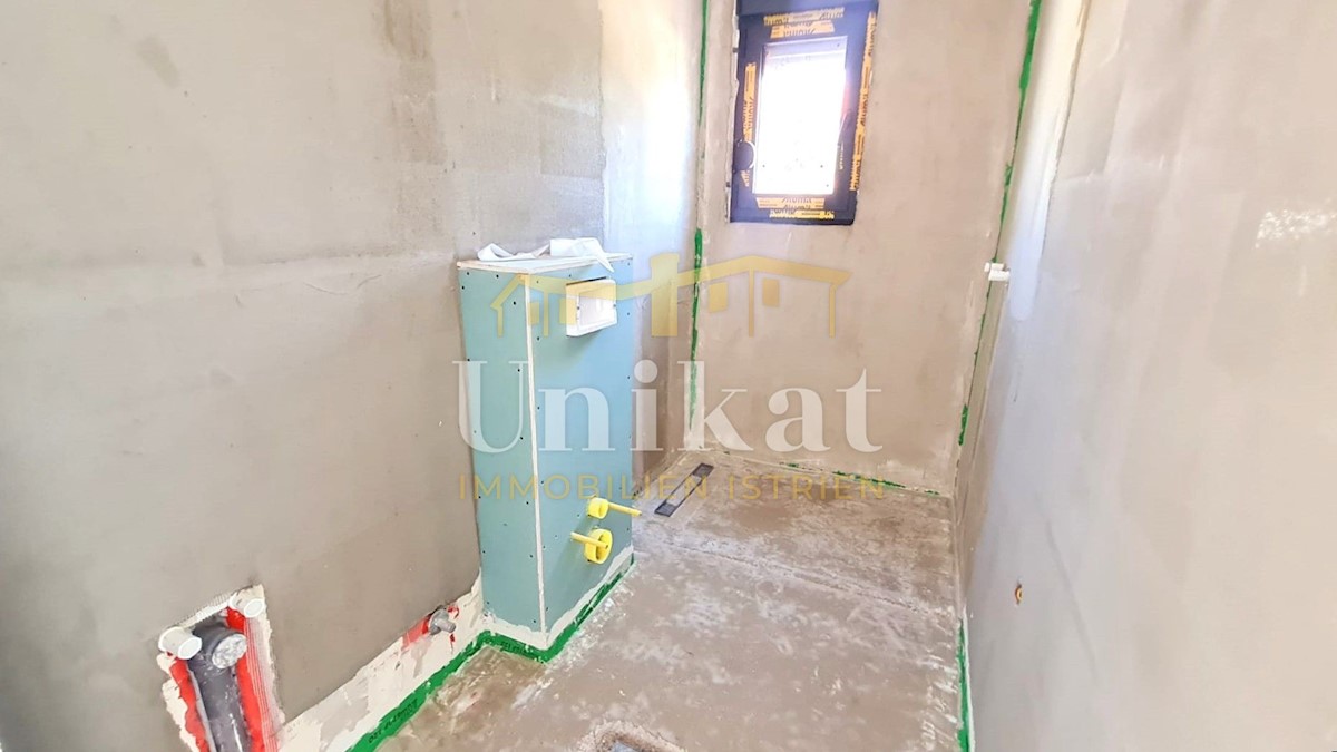 Modern semi-detached house on three floors, 2 km from the center of Poreč and 2.5 km from the sea. The net area of the house is 187 m2. On the ground floor there is an entrance area, a spacious living room with kitchen and dining room, bedroom, bathroom a