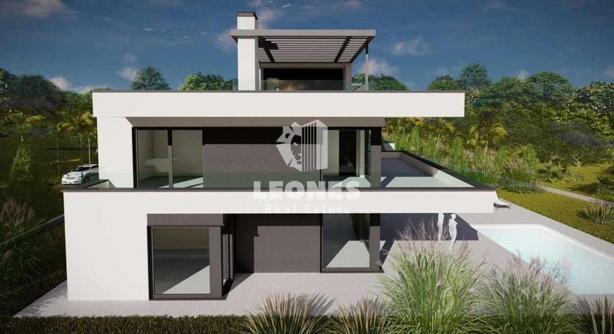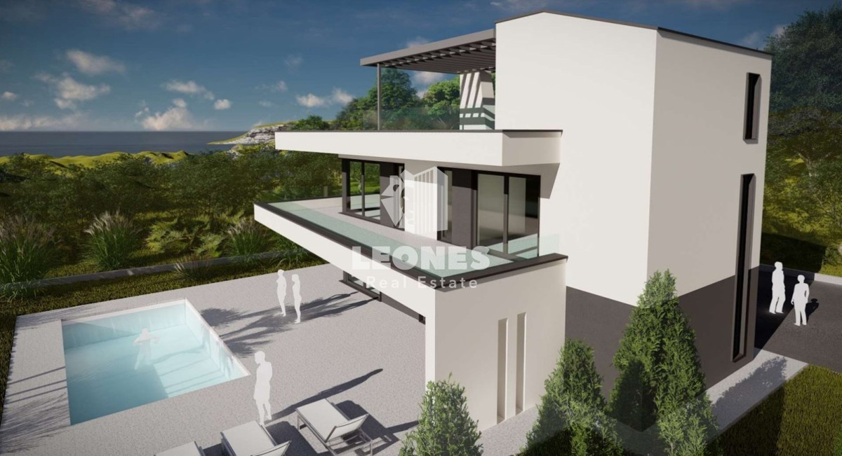 Modern villa with pool and sea view near Poreč A modern villa with a pool and a sea view is for sale in the vicinity of Poreč. The villa is located in a small tourist town not far from Poreč and has all amenities. The net usable area of the villa is 30