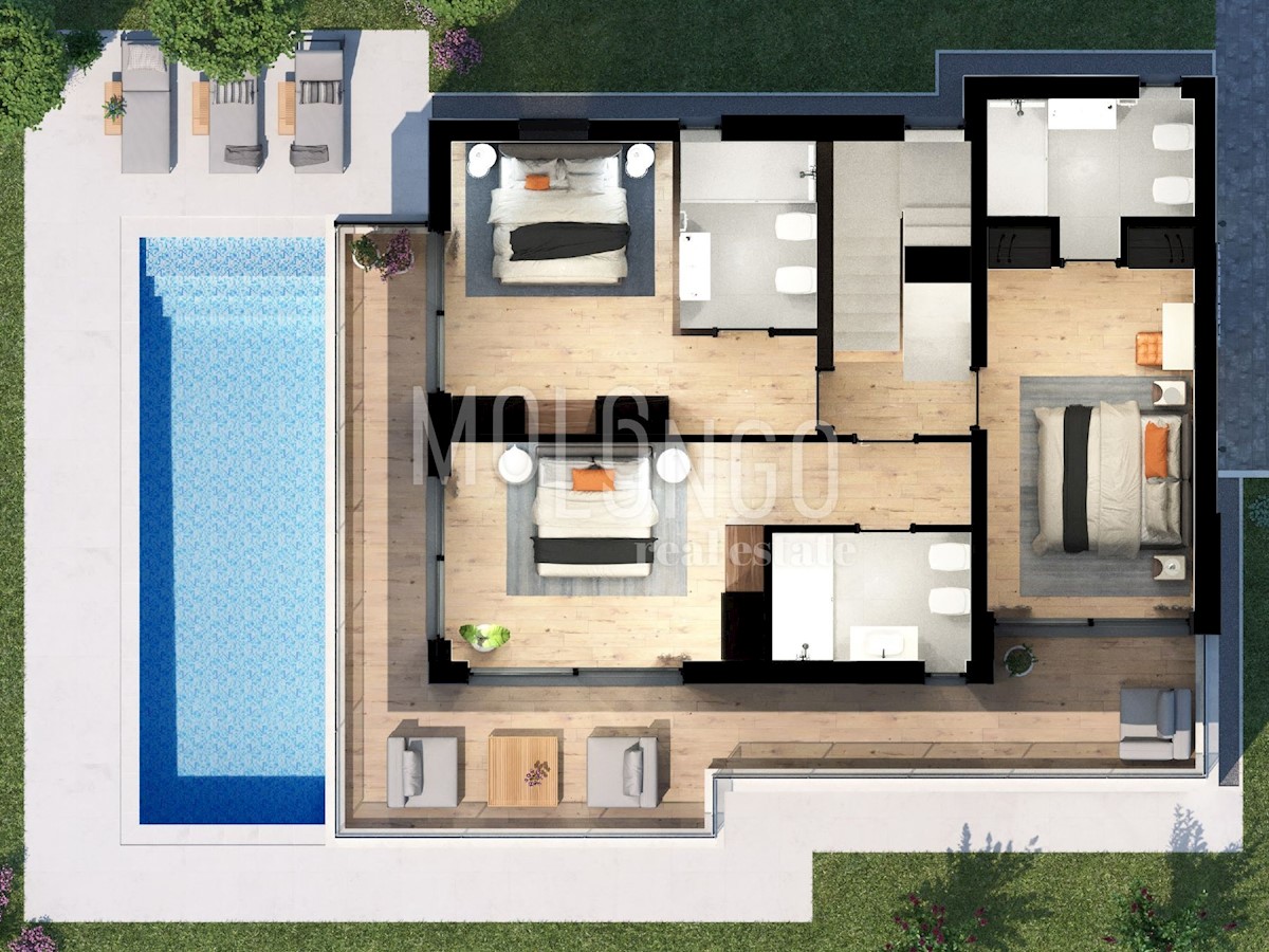 ISTRIA, POREČ - Modern villa only 4 km from the sea with a sea view At the peak of beauty, in a small paradise not far from the idyllic town of Poreč, discover a unique villa that captures hearts with its timeless luxury and subtle design. Perfectly ble