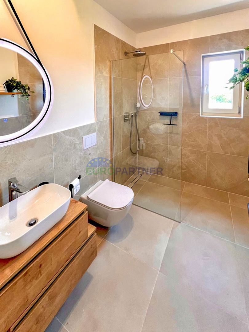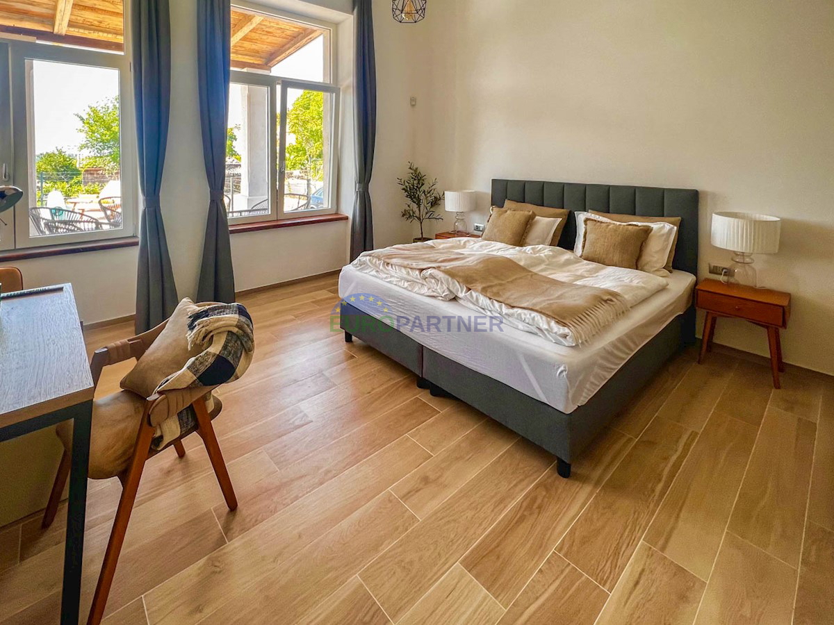 A beautiful stone villa for sale, 10 km from the center of Poreč. This 100-year-old school was renovated in 2023, and during the renovation, the original stone elements that represent the authenticity of this villa were kept and preserved. The villa is lo