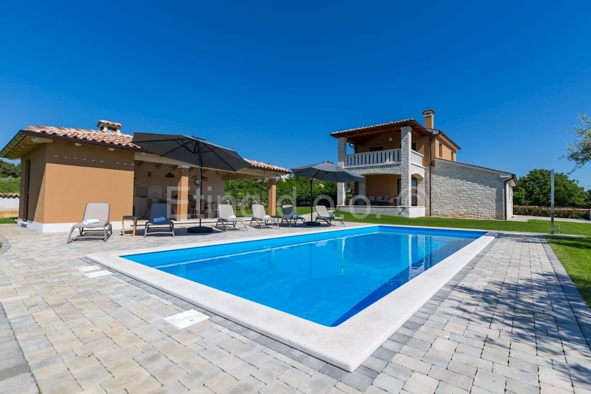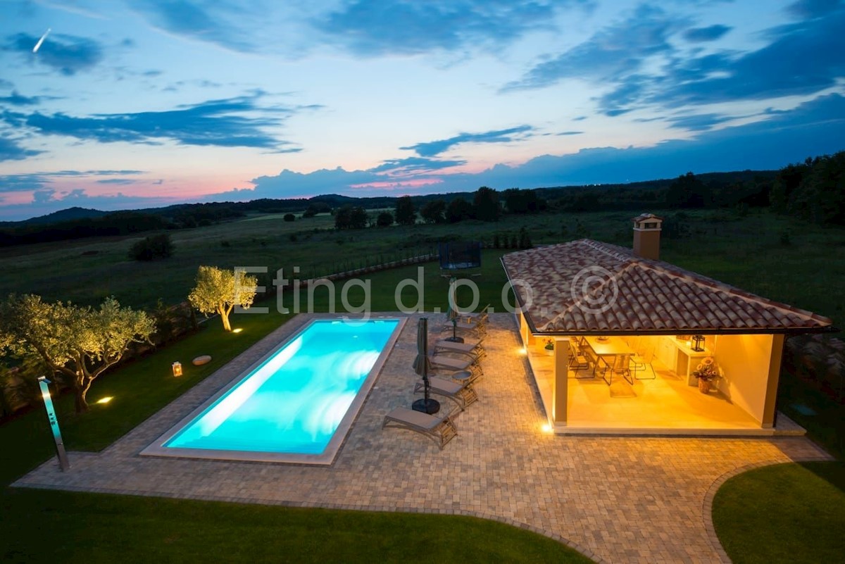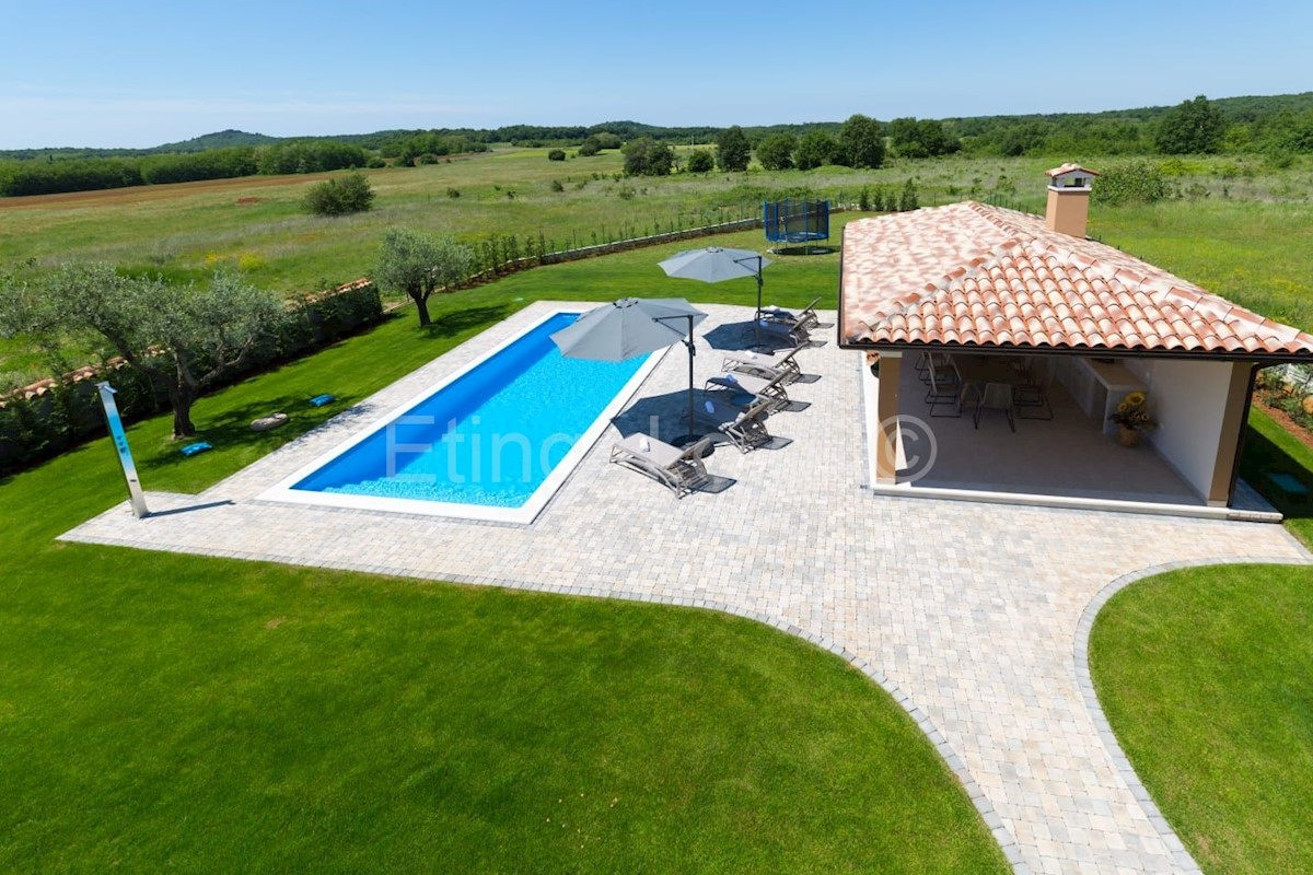 A beautiful villa for sale in the vicinity of Poreč. The villa, with a total area of 186 m², is located on a spacious plot of approximately 1600 m², surrounded by greenery. It offers an unobstructed view of the natural landscape and ensures you the privac