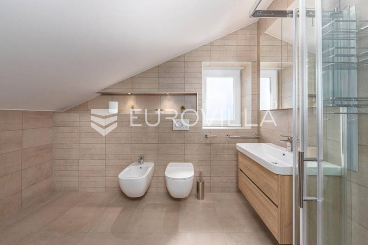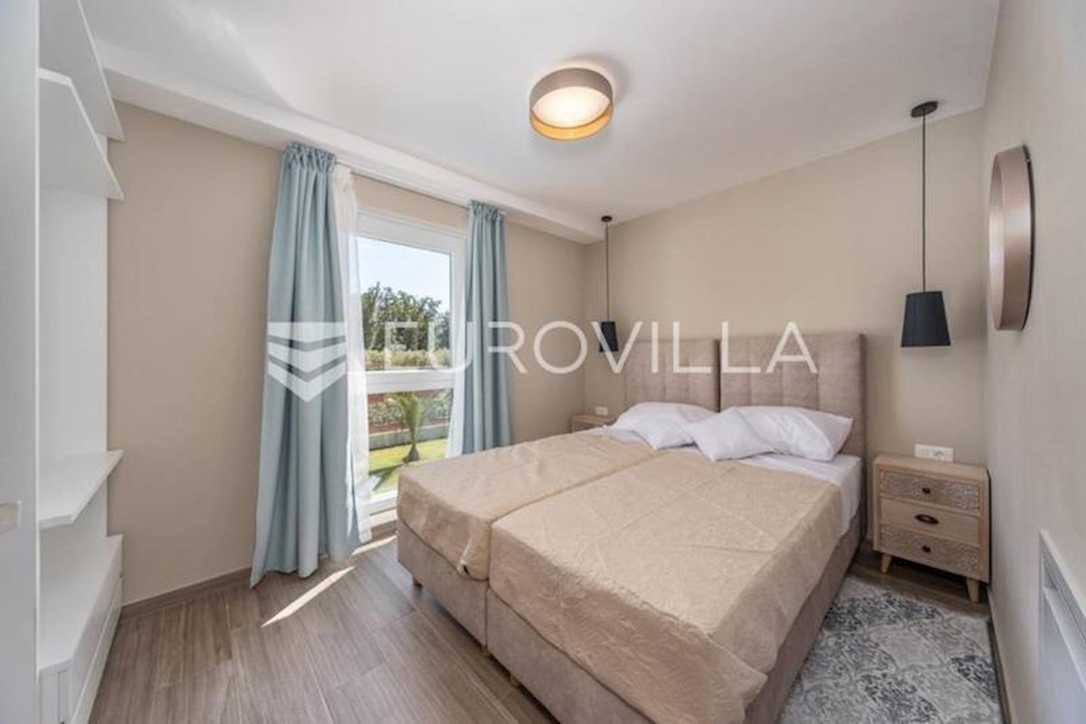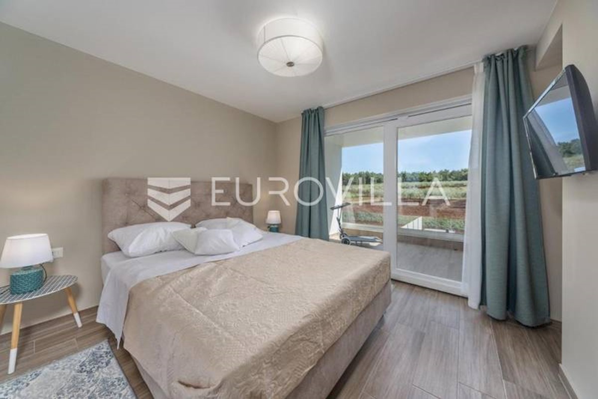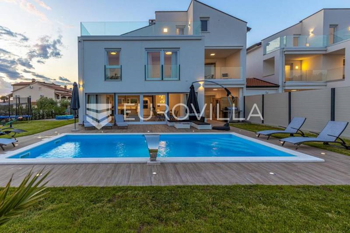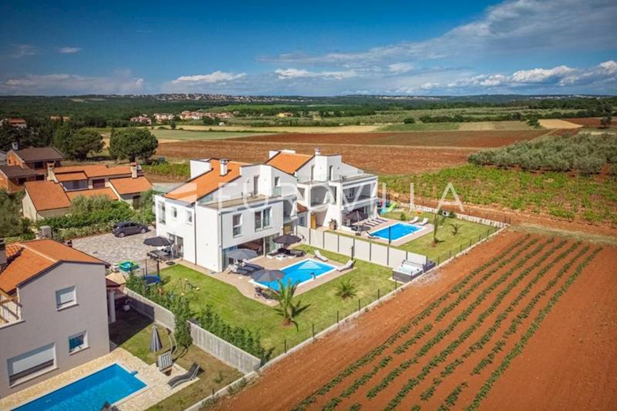 This luxury villa near Poreč, just five kilometers from the well-maintained beaches in beautiful Poreč, is spread over three floors with a total area of 244 m2. The ground floor of this villa consists of a large open living room with a modern custom-made