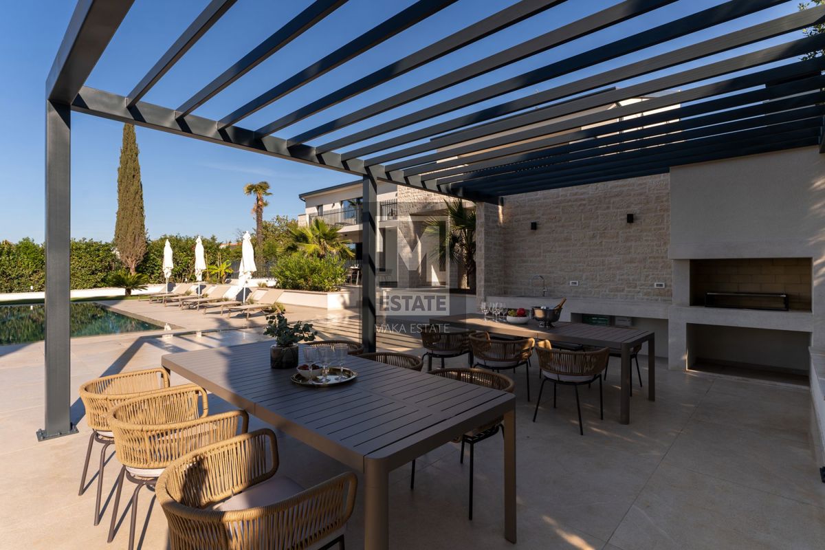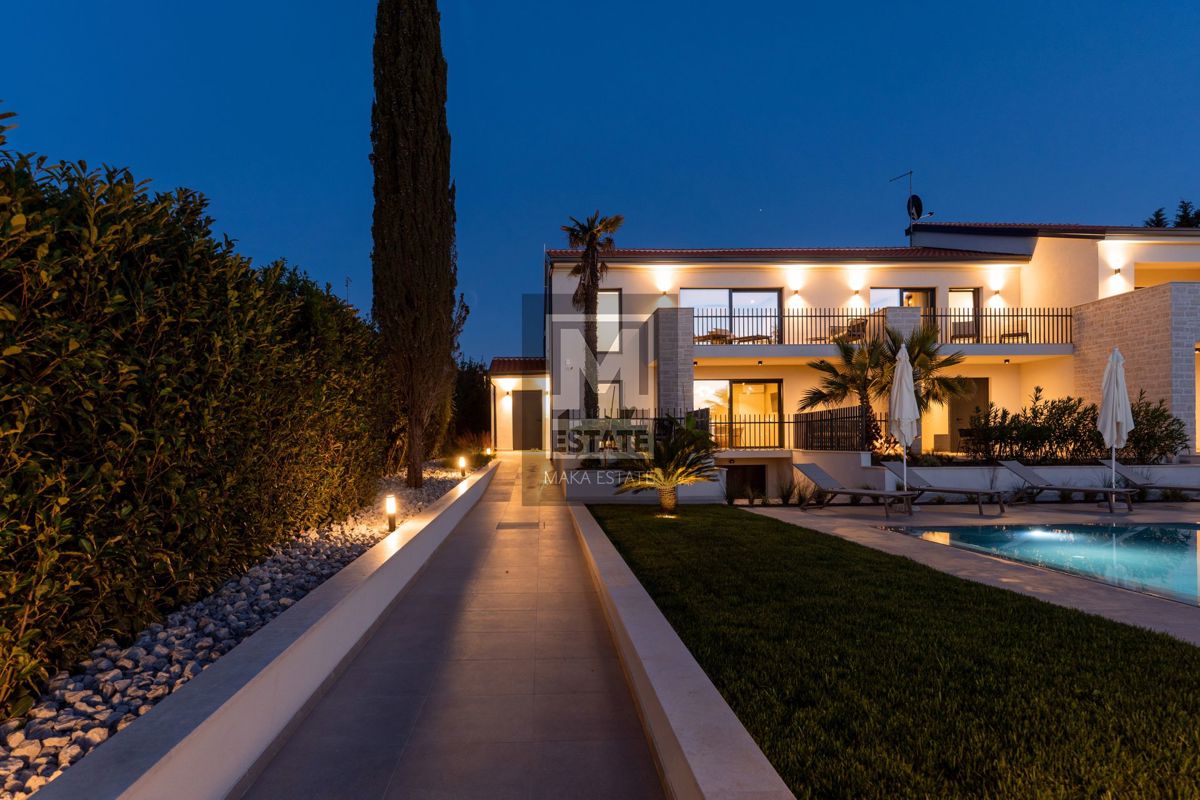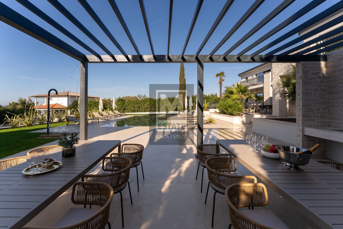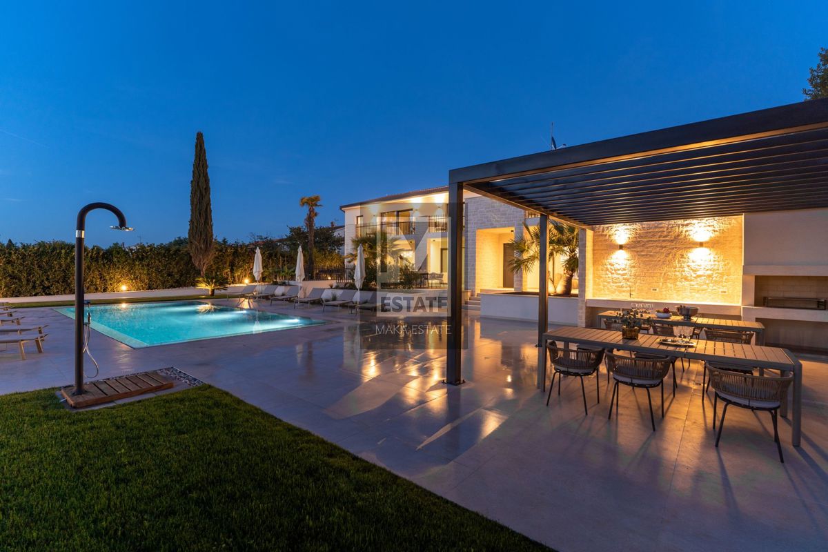 Poreč, okolica , Luksuzna vila sa bazenom Neka vas očara raskoš ove iznimne vile, ukupne površine 683m2, smještene na prostranoj okućnici od 1753m2, svega kilometar udaljene od valova mora. Ova nekretnina nije samo dom, već i oaza elegancije i udobnosti