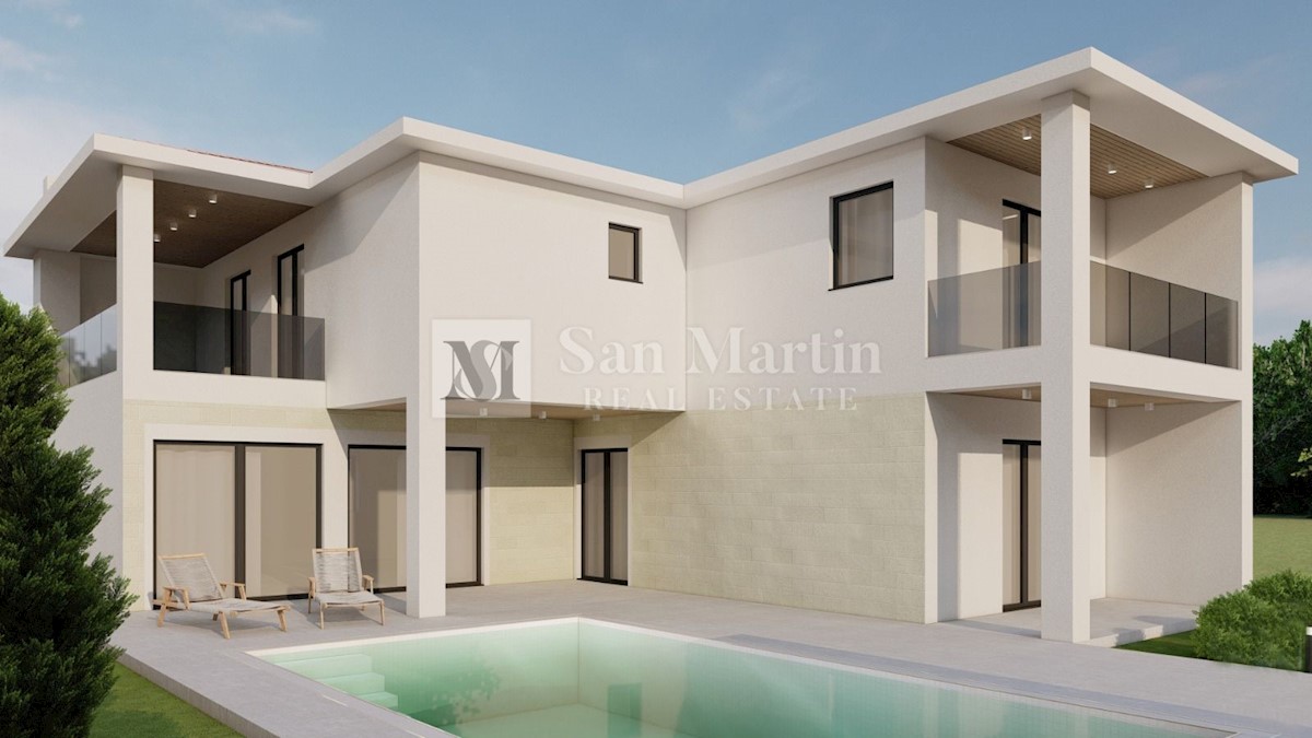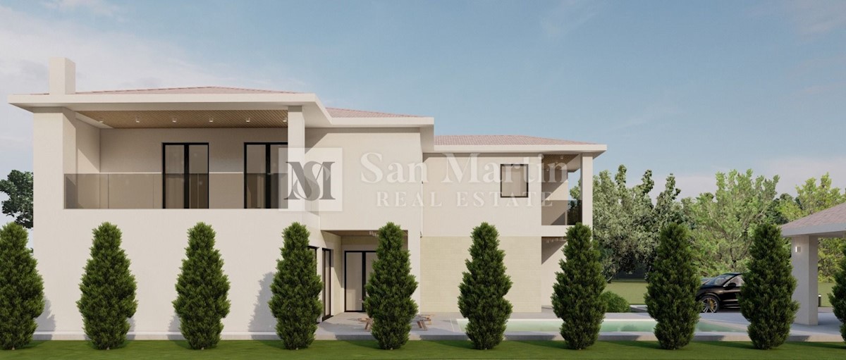 Poreč, okolica - samostojeća kuća s bazenom u izgradnji U mirnom mjestu daleko od gužve i buke a ipak u blizini svih potrebnih sadržaja na parceli od 762 m2 smjestila se samostojeća kuća ukupne površine cca 176 m2. Kuća se prostire na dvije etaže. U priz