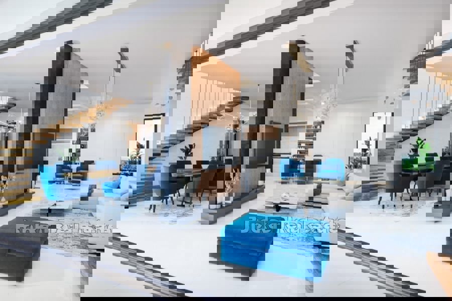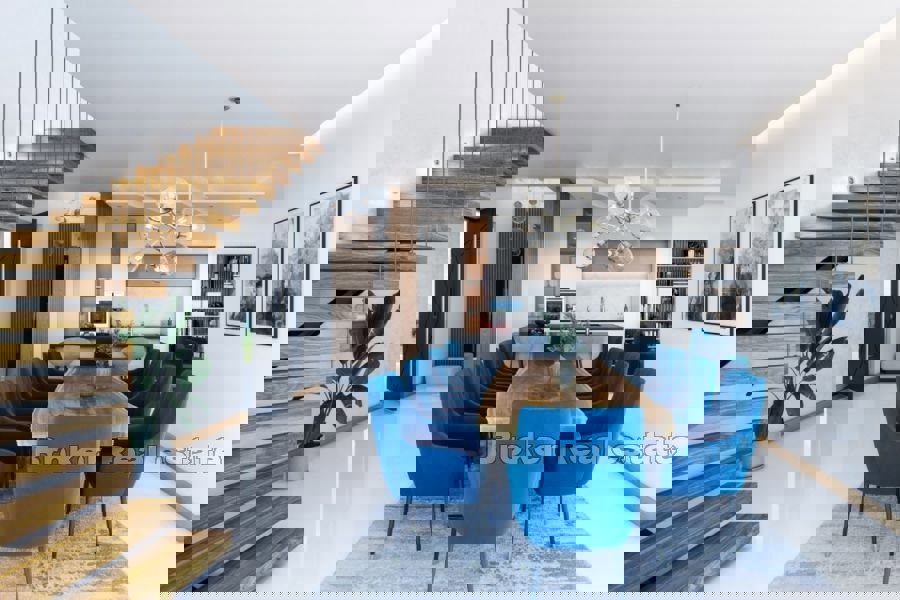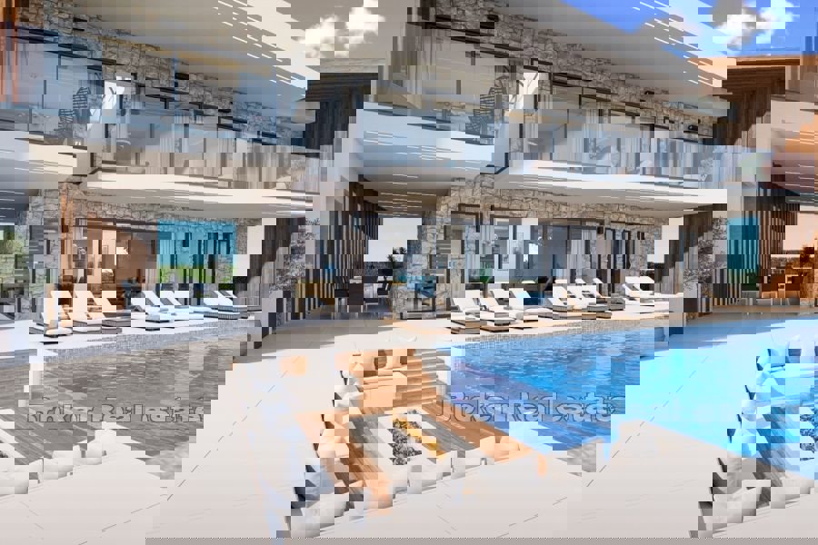 Prekrasna moderna vila u izgradnji na izuzetno lijepoj i atraktivnoj lokaciji. Karakterizira je moderan dizajn, autentični kameni dijelovi i drveni elementi, što je čini savršenom kombinacijom stila i funkcionalnosti. Ukupna stambena površina iznosi 306