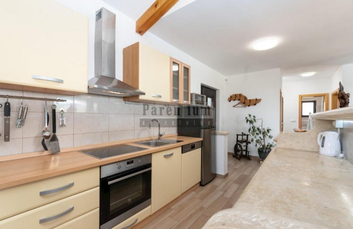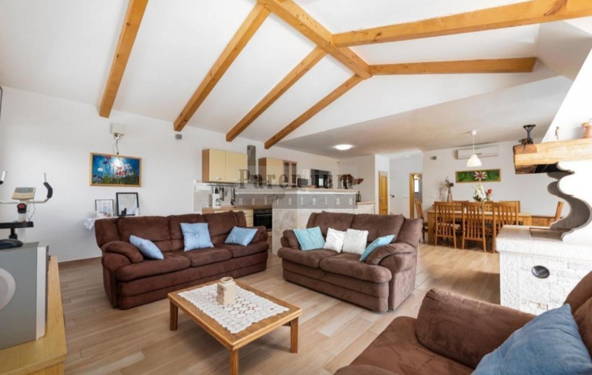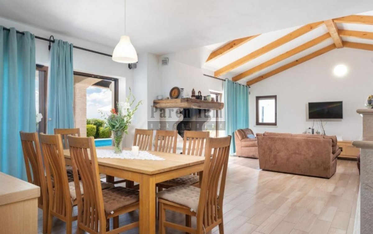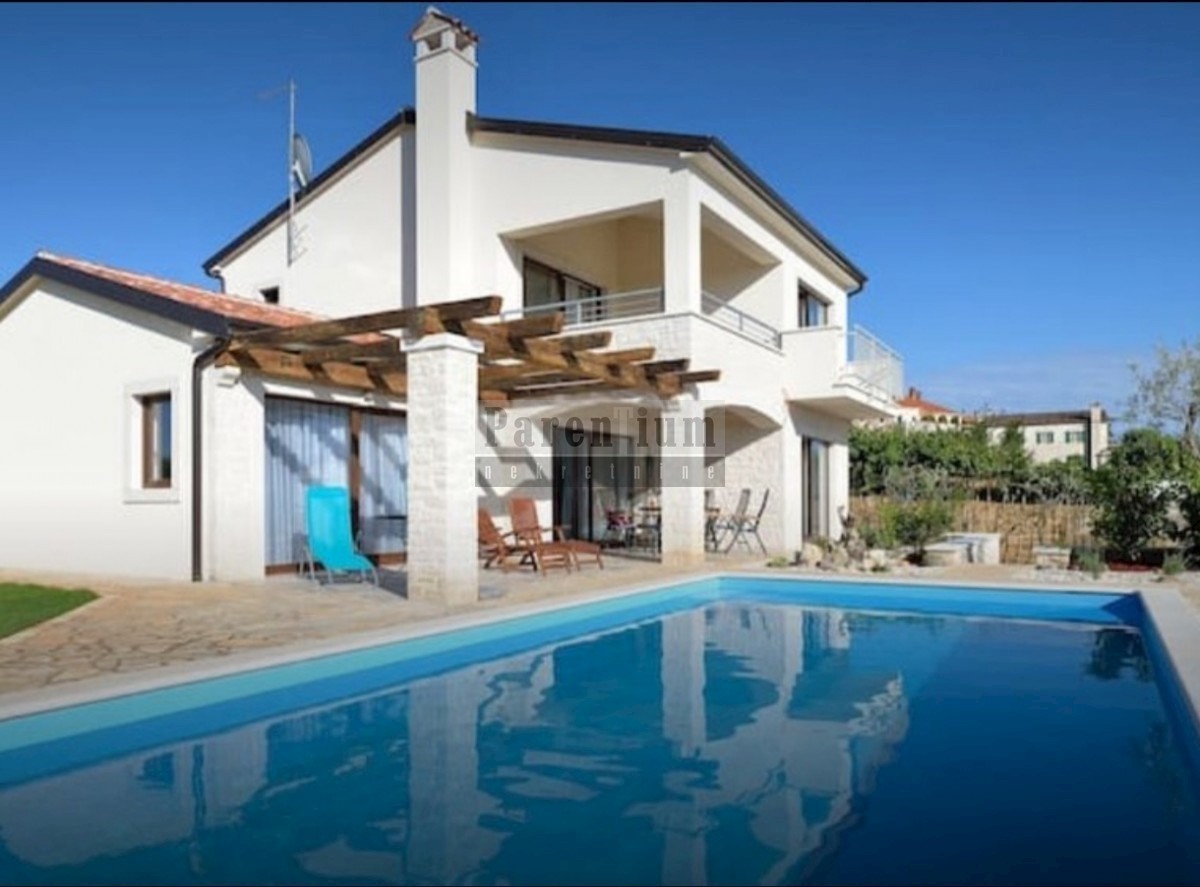 Poreč, okolica, nekoliko minuta vožnje od plaže i mora prodaje se ova lijepa vila s bazenom površine 166m2, raspoređenih na dvije etaže. U prizemlju kuće imamo dnevni boravak s blagovaonom i kuhinjom, jednu spavaću sobu s vlastitom kupaonicom i wcom za g