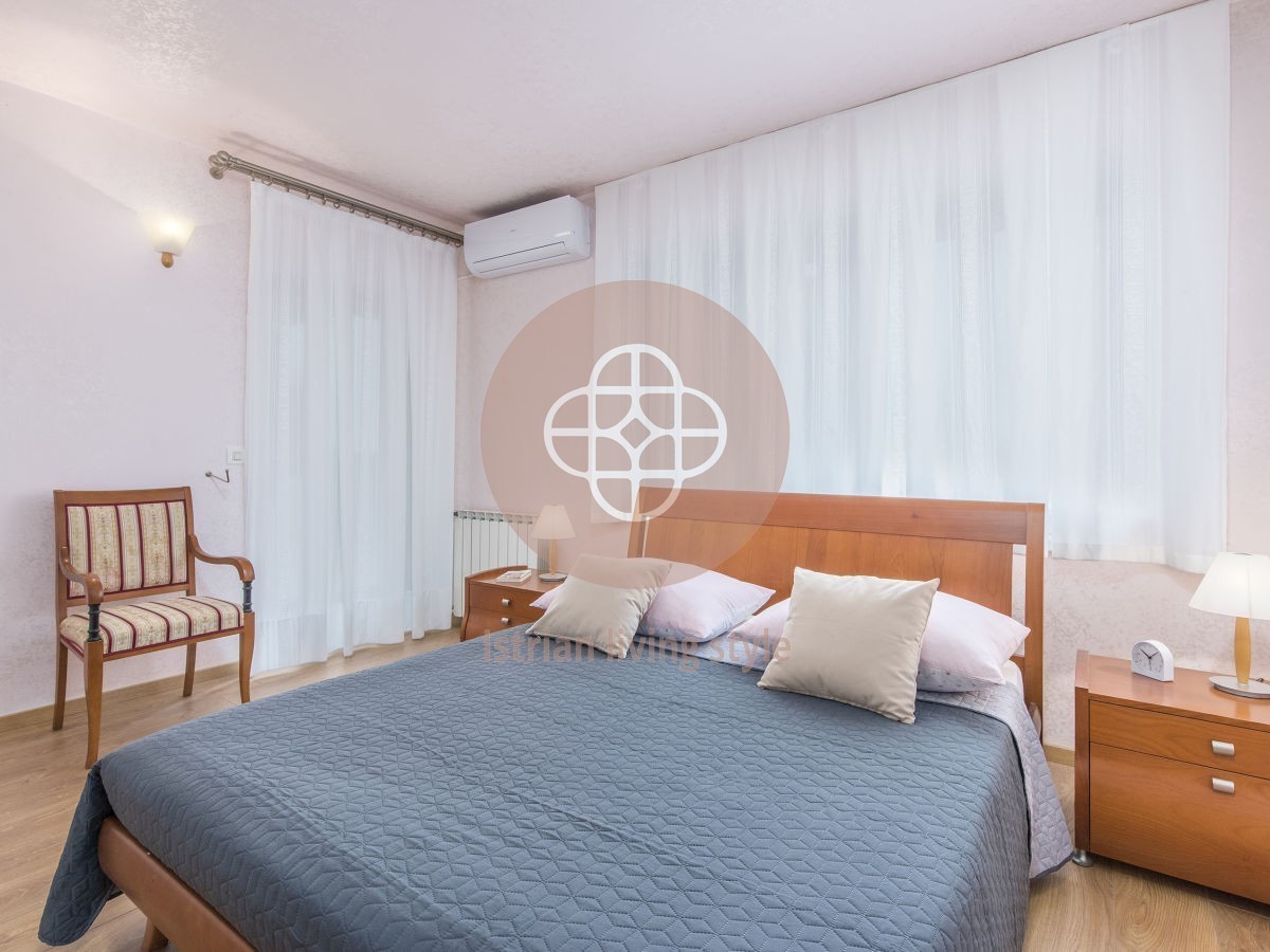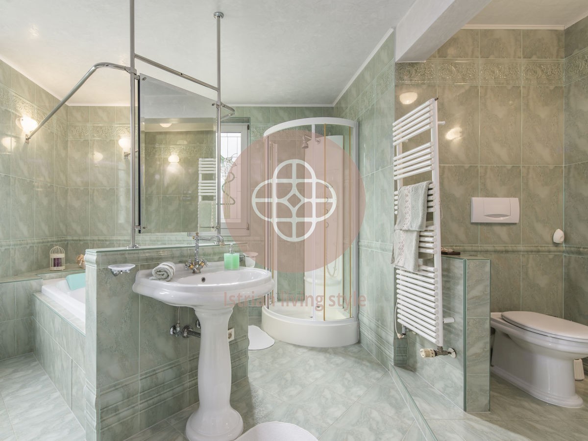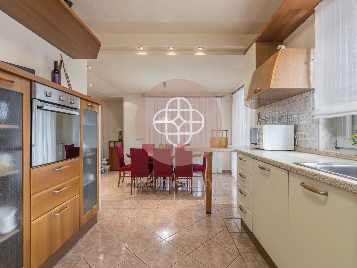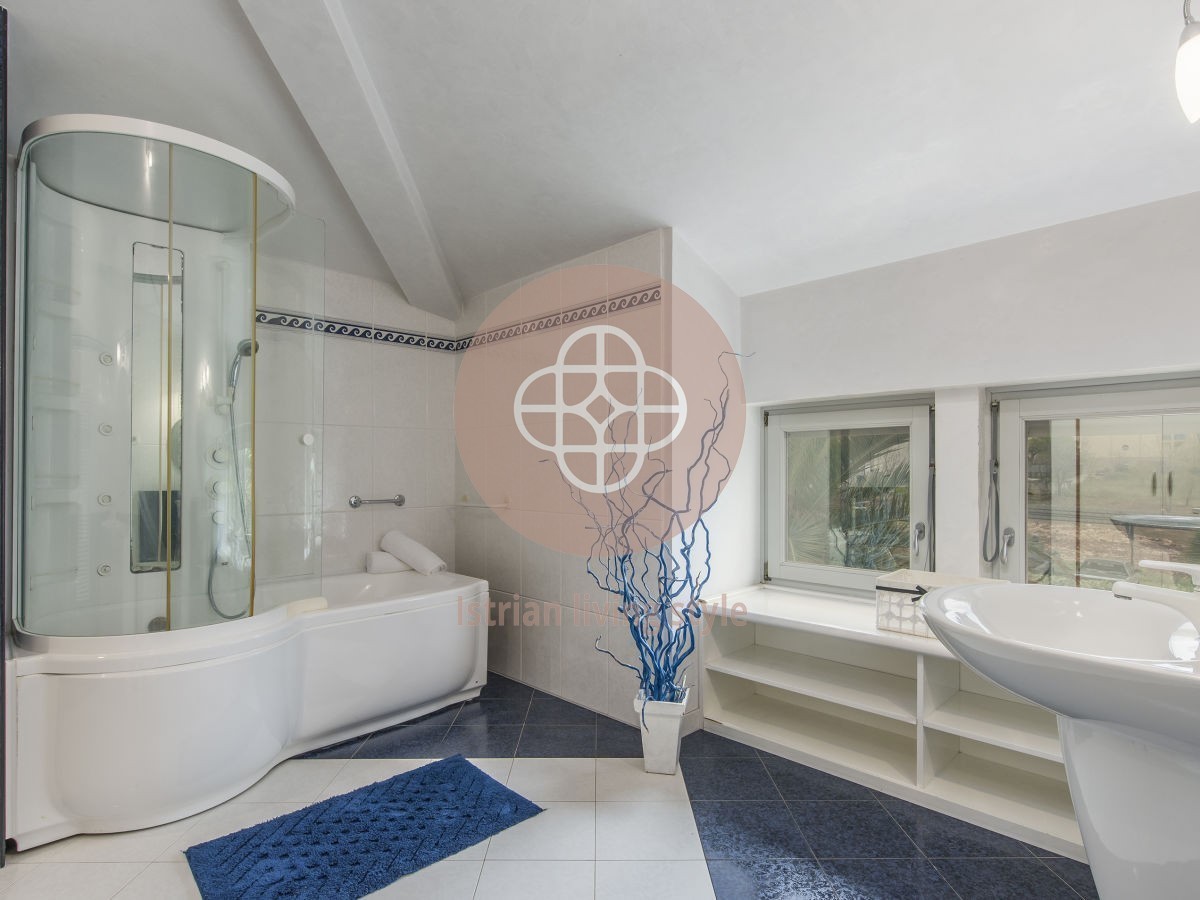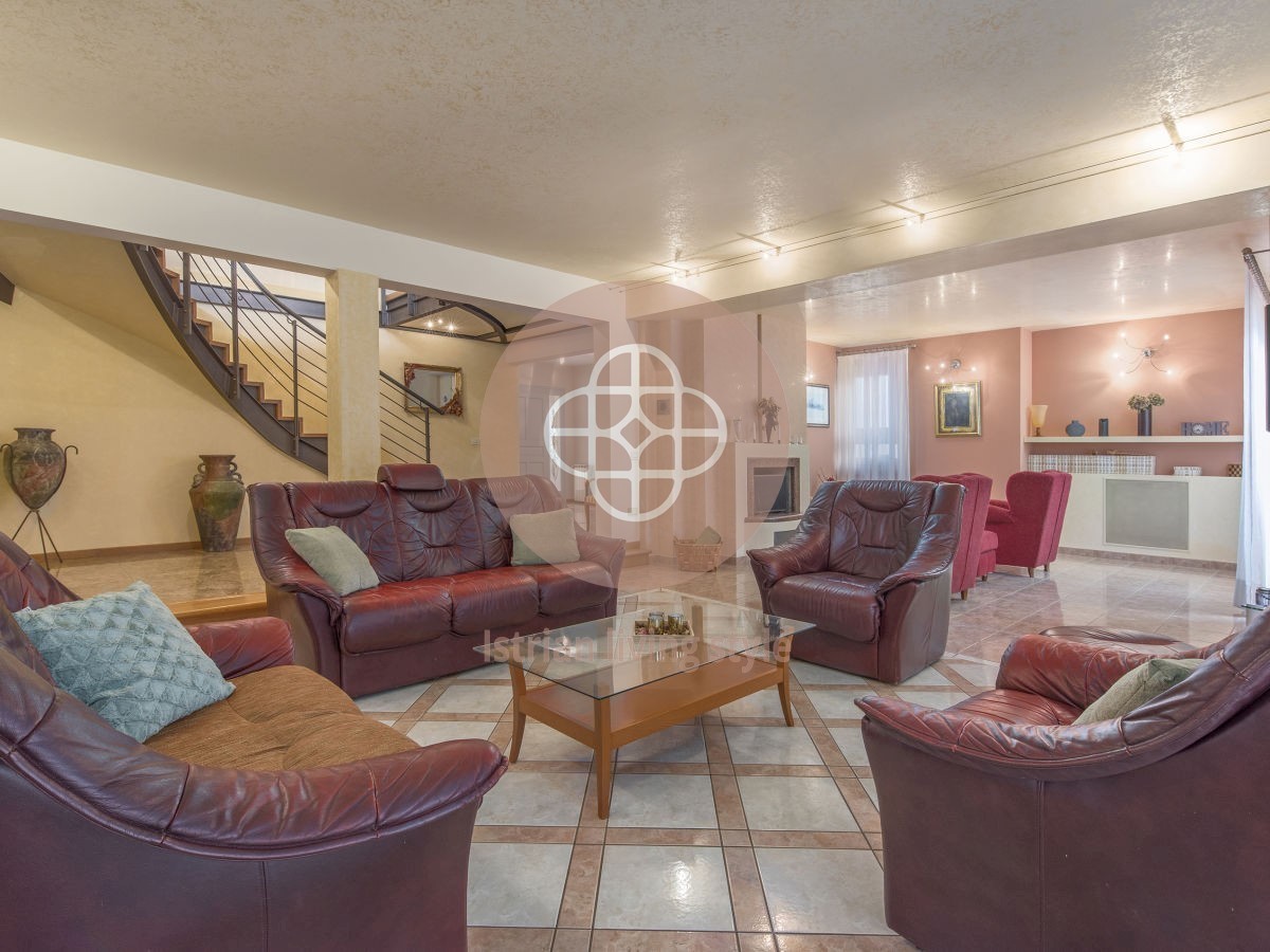 Na prodaju predivna vila površine 450 m2 smještena na 1.200 m2 uređene okućnice s bazenom površine 77 m2. Podrum vile koji je povezan unutarnjim stepenicama, sastoji se od uređene konobe s kaminom, vinoteke, kuhinje, toaleta te dvije dodatne prostorije.