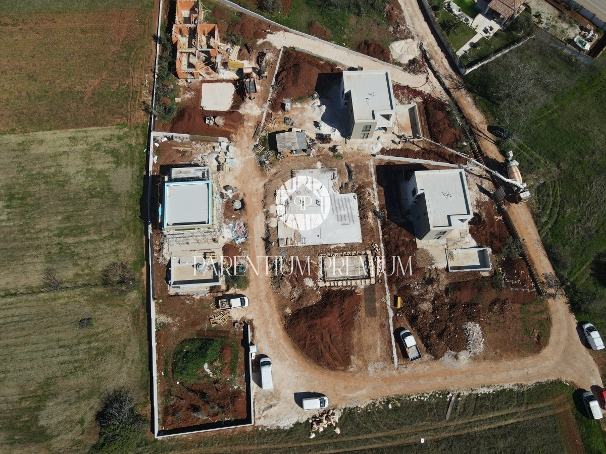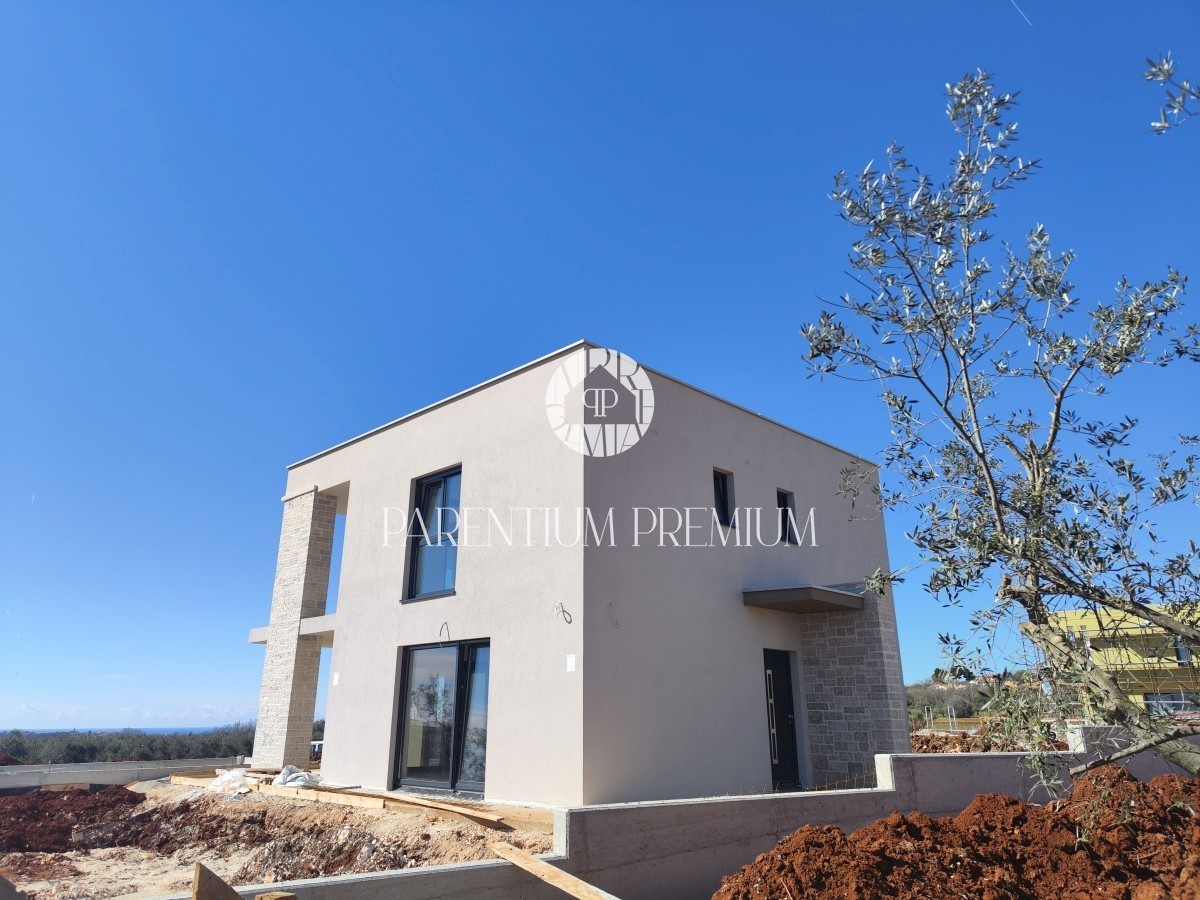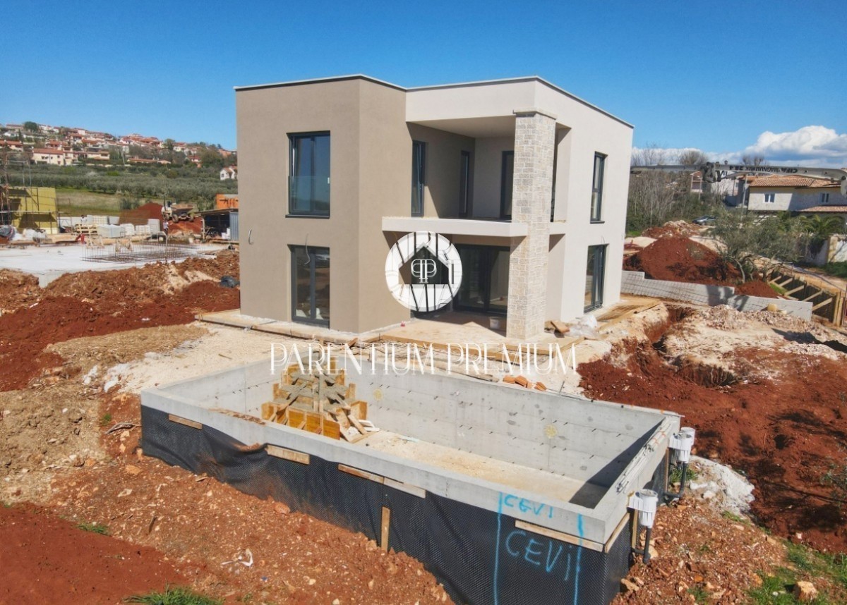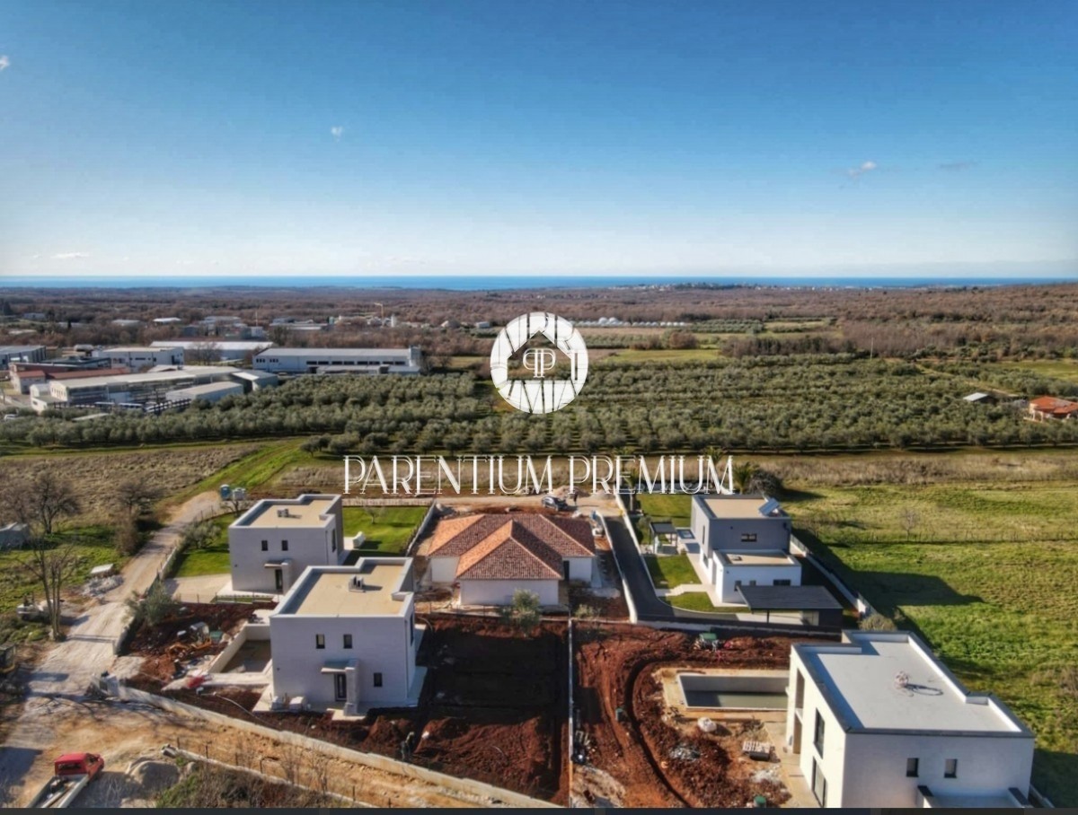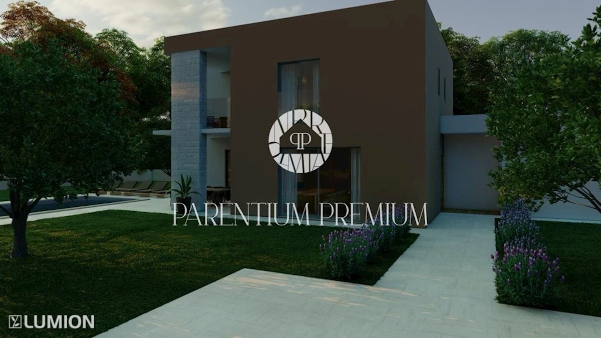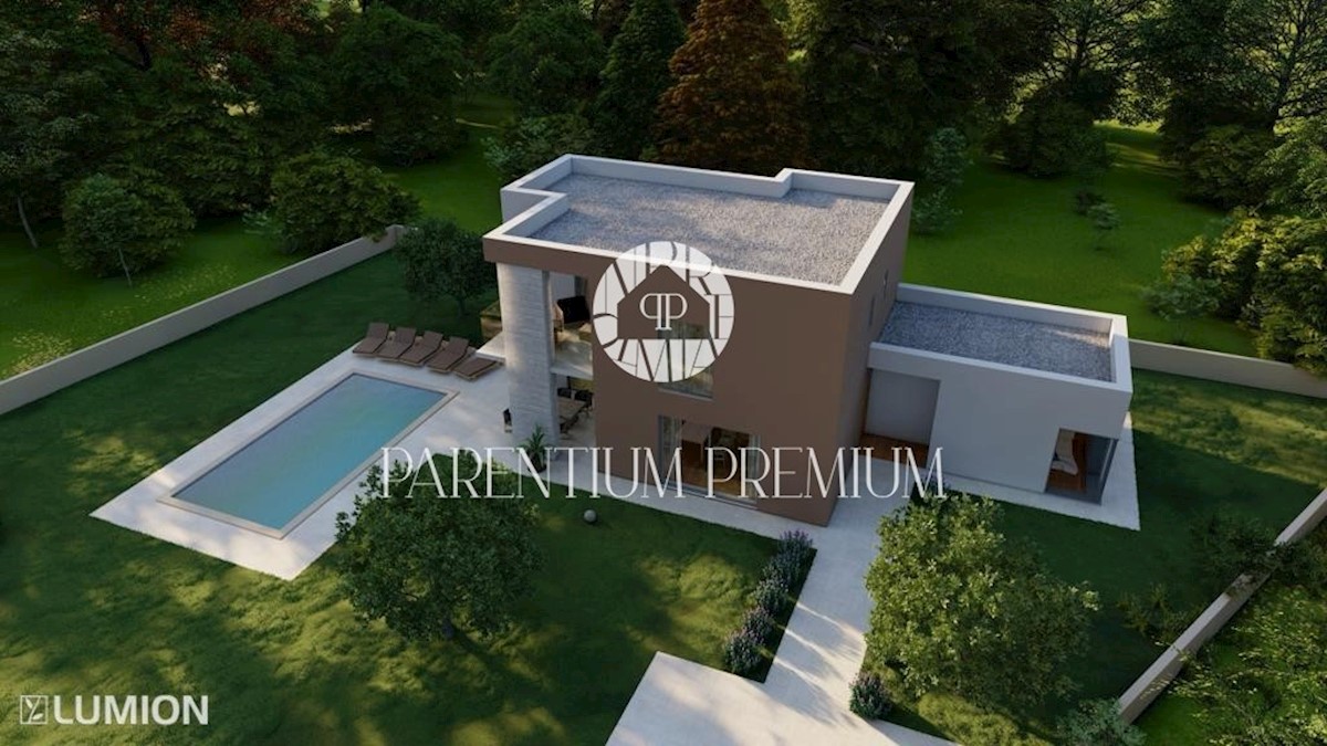 Istra Poreč U malom mjestu nedaleko od Poreča ispunjenom sa svim sadržajima potrebnim u svakodnevnom životu (market, restoran, kafić, škola, vrtić) na zemljištu od 780m2 smjestila se ova impresivna vila od 145m2 neto površine. Kuća je podijeljena na 2 e