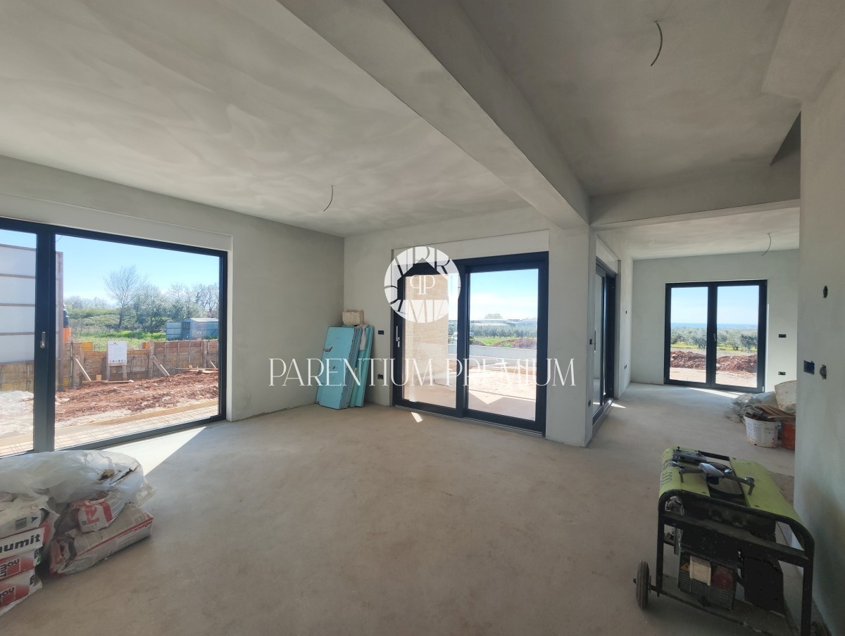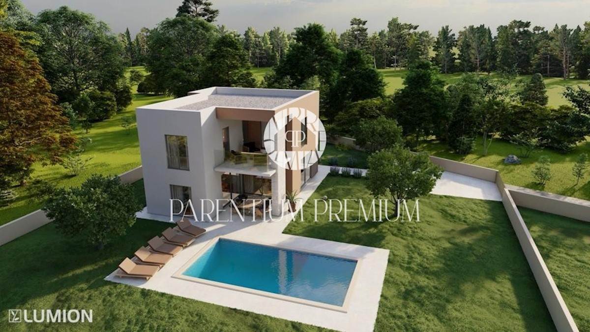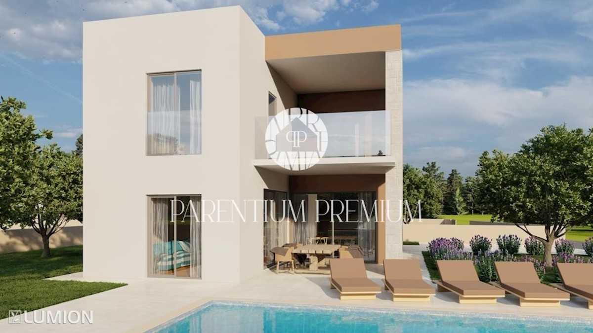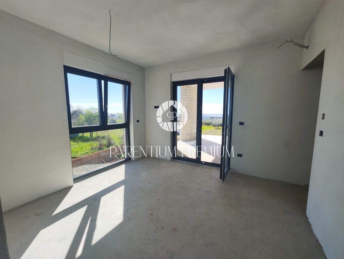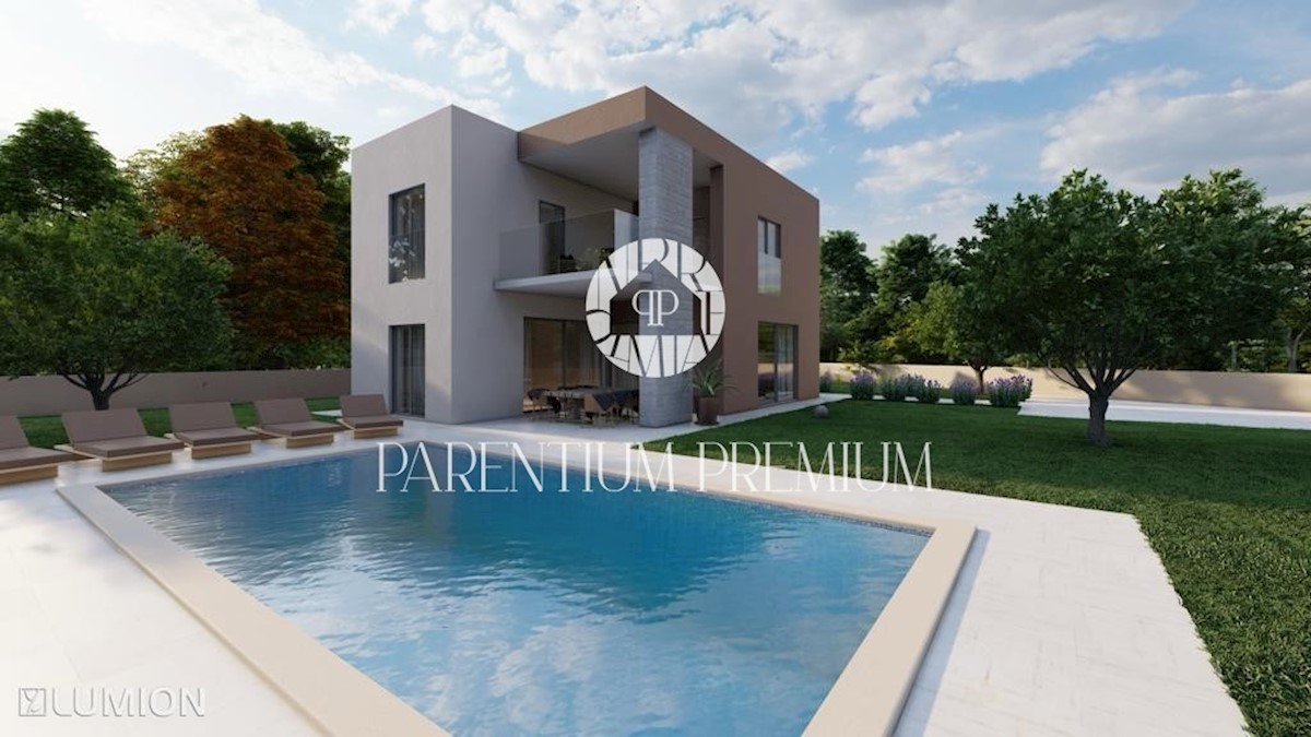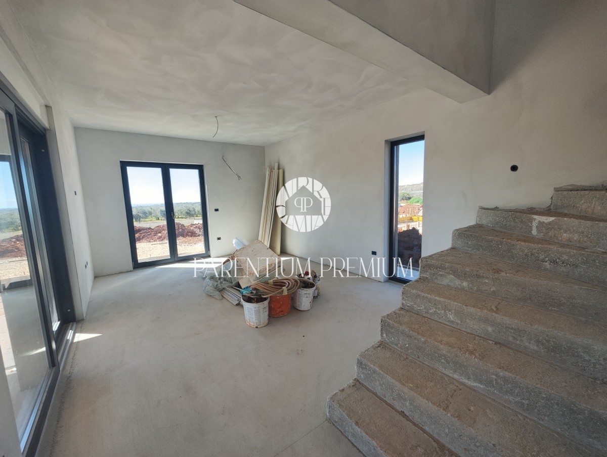 Istra Poreč U malom mjestu nedaleko od Poreča ispunjenom sa svim sadržajima potrebnim u svakodnevnom životu (market, restoran, kafić, škola, vrtić) na zemljištu od 780m2 smjestila se ova impresivna vila od 145m2 neto površine. Kuća je podijeljena na 2 e