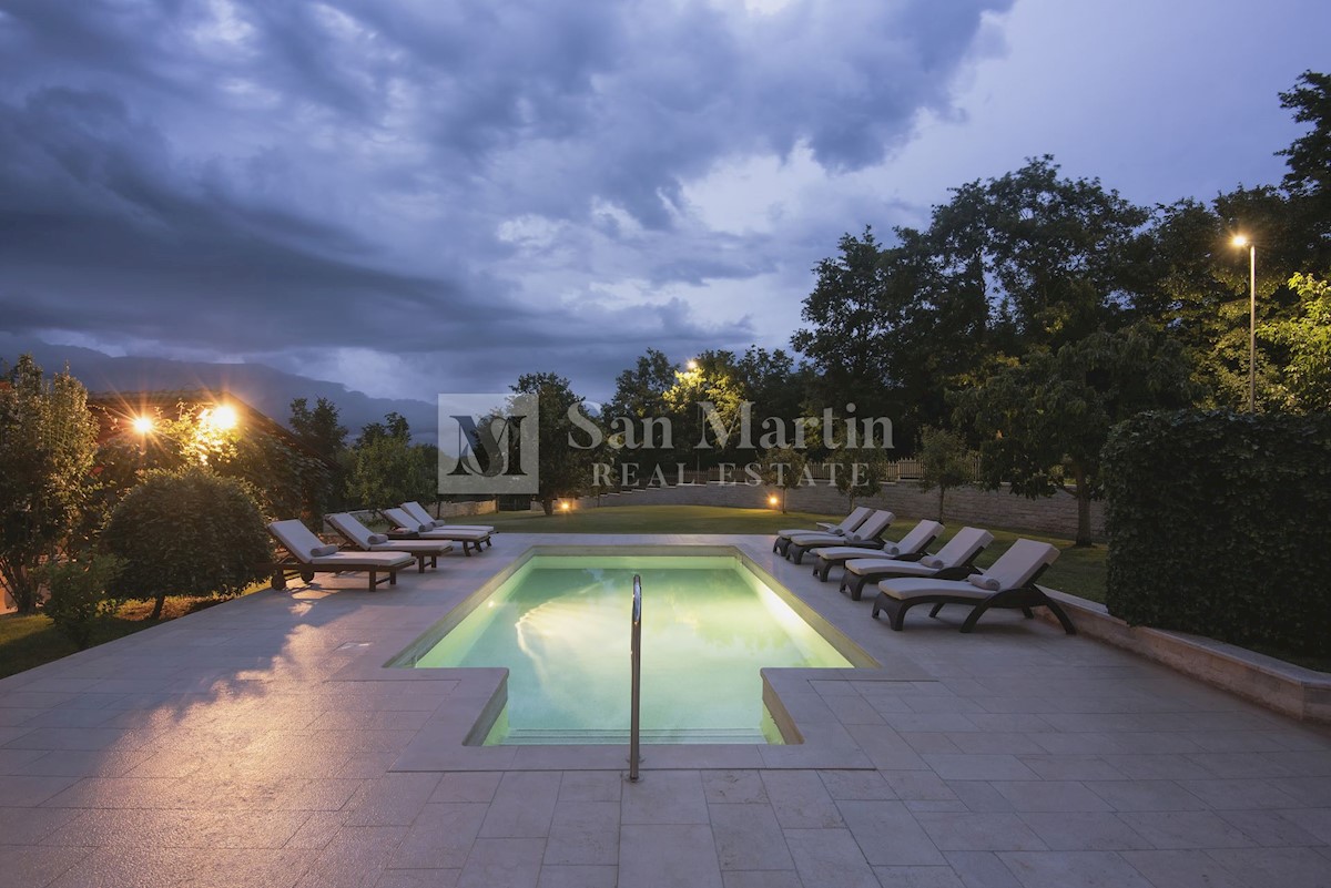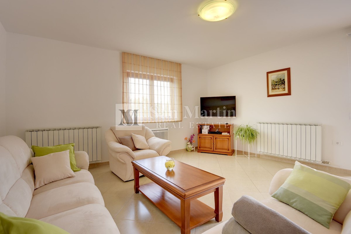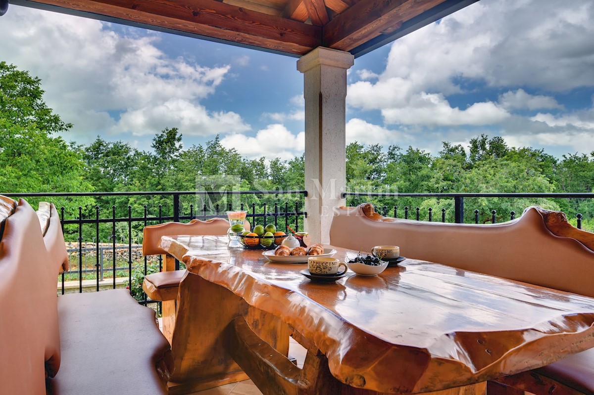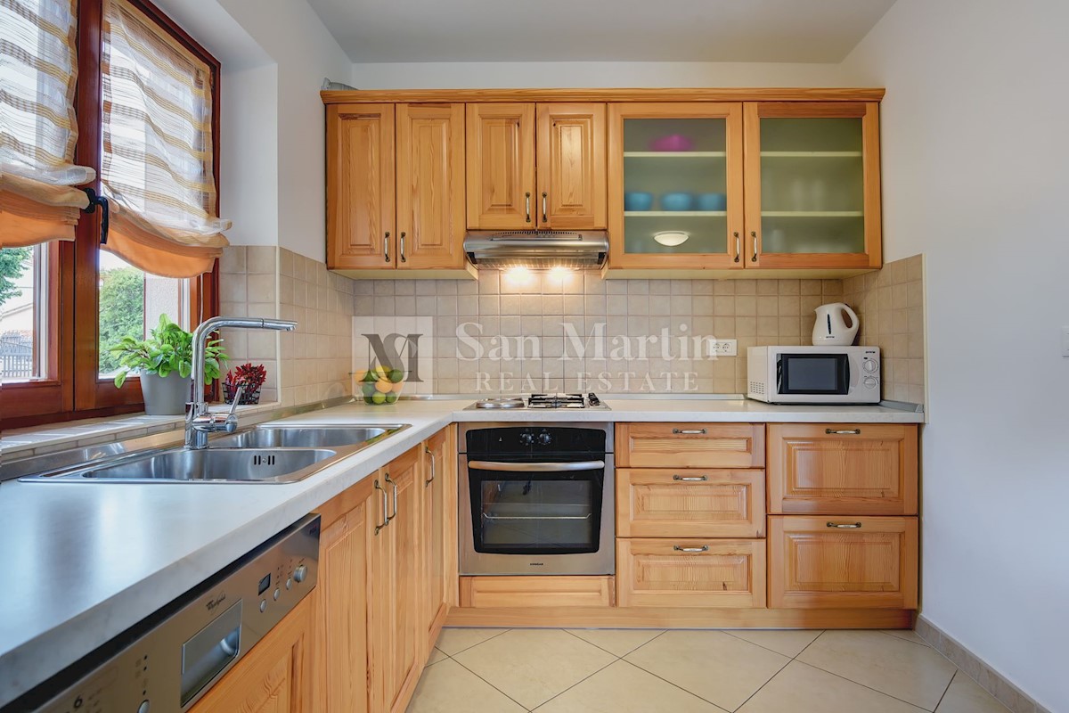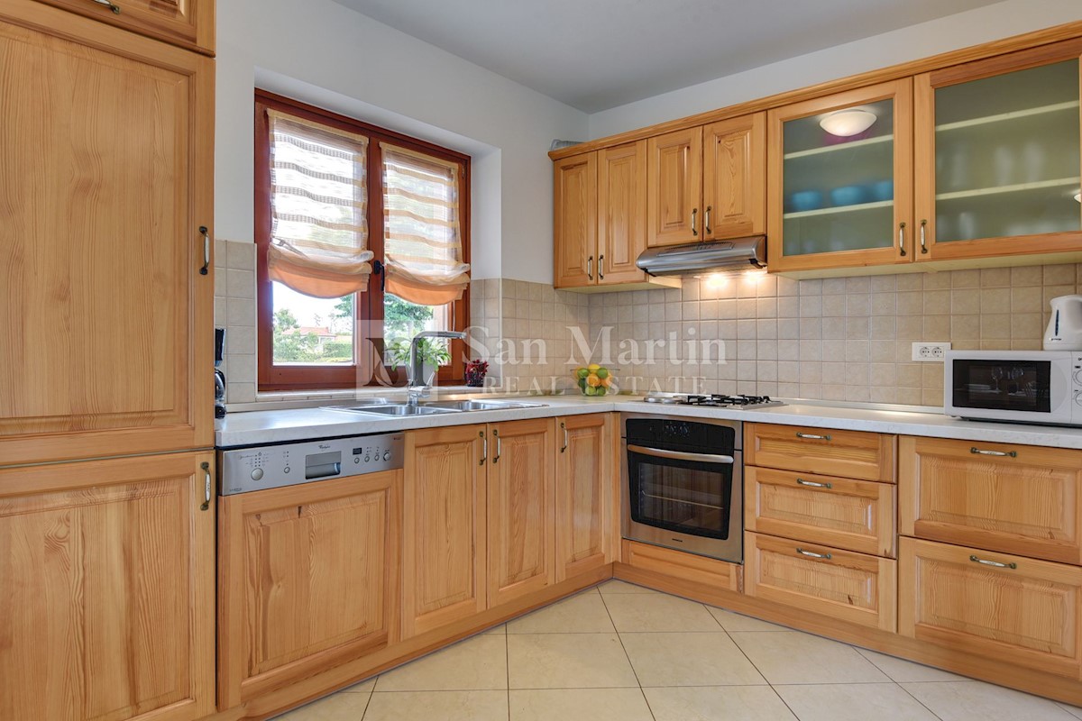 Istra, Poreč-okolica, kuća s bazenom na velikoj okućnici U lijepom mirnom mjestu okruženom zelenilom na okućnici od 1521 m2 smjestila se kuća ukupne površine 390 m2. Kuća se prostire na dvije etaže, ima podrum sa konobom, prostrani vrt u kojem se smjest