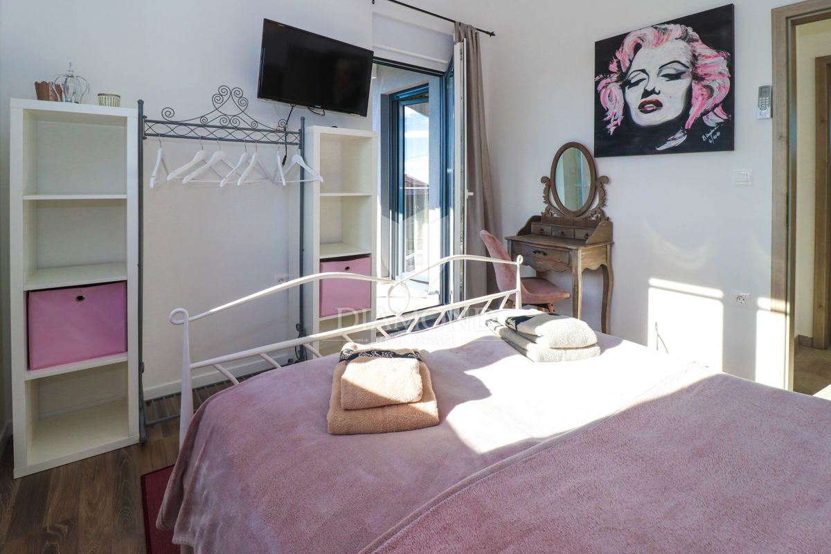 Poreč, okolica, prekrasna moderna kuća sa bazenom! U mirnom mjestu nedaleko grada Poreča i njegovih plaža prodaje se ova prekrasna moderna kuća sa bazenom. Kuća se prostire na dvije etaže te se sastoji od prostranog dnevnog boravka, kuhinje i blagovaoni