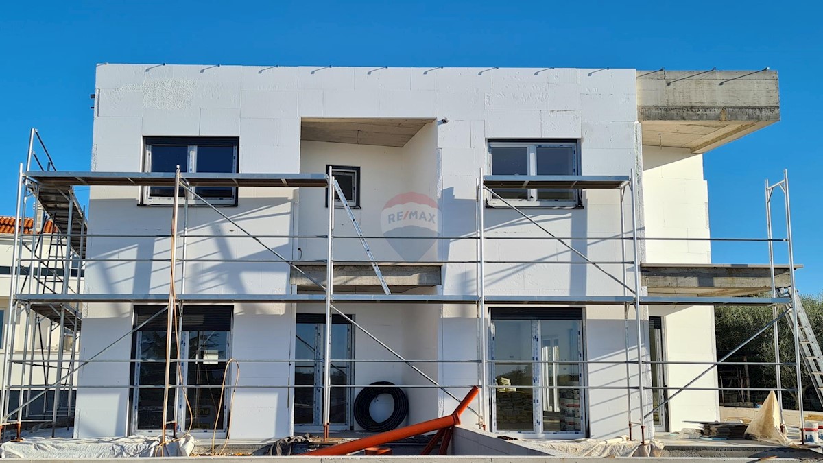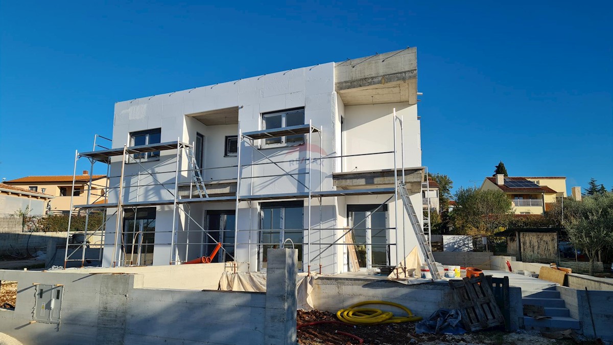 Predstavljamo modernu dvojnu kuću u izgradnji koja se nalazi na 2,5 km od mora i 4,5 km od centra grada Poreča. Smještena na rubnom djelu mjesta s lijepim i otvorenim pogledima prema prirodi i moru predstavlja zanimljivu investicijsku priliku. Ova se kuća