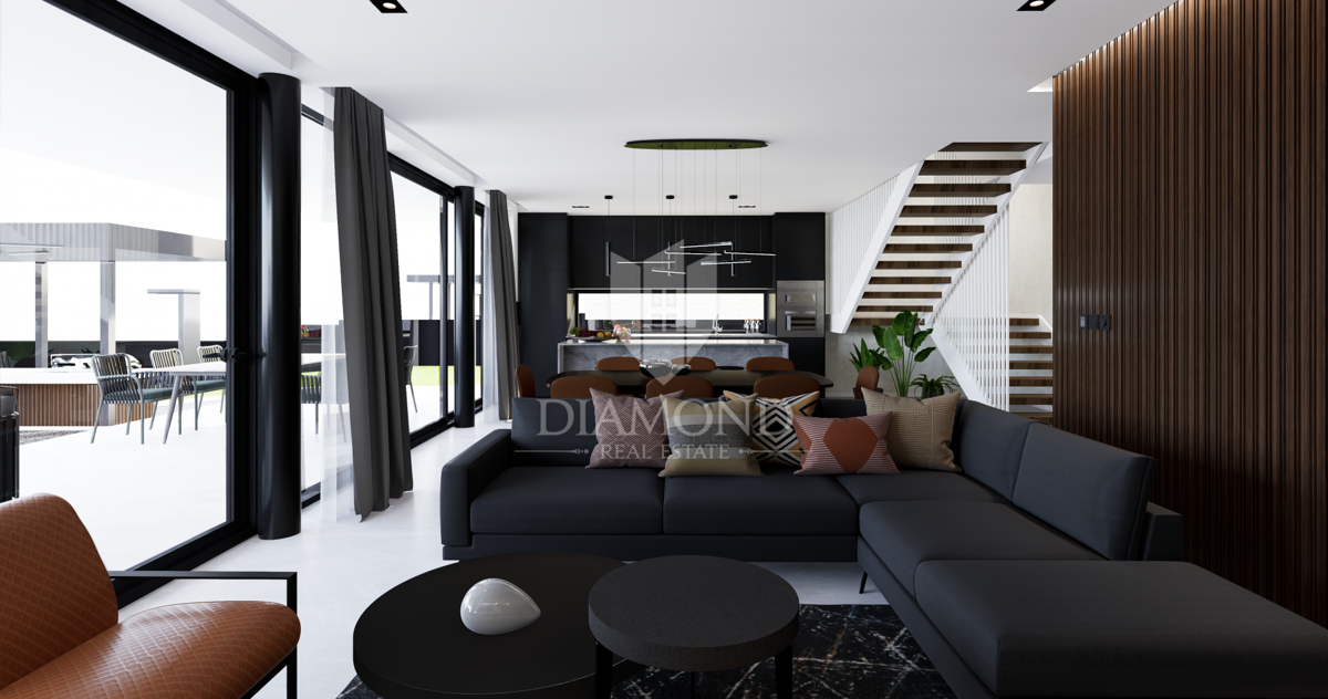 Poreč, opremljena moderna vila sa pogledom na more! Ova impresivna vila prostire se na prostranom zemljištu od 1015 m2, pružajući dovoljno prostora za raznovrsne vanjske aktivnosti i sadržaje. U modernom i elegantnom stilu, ova vila nudi visoki standard