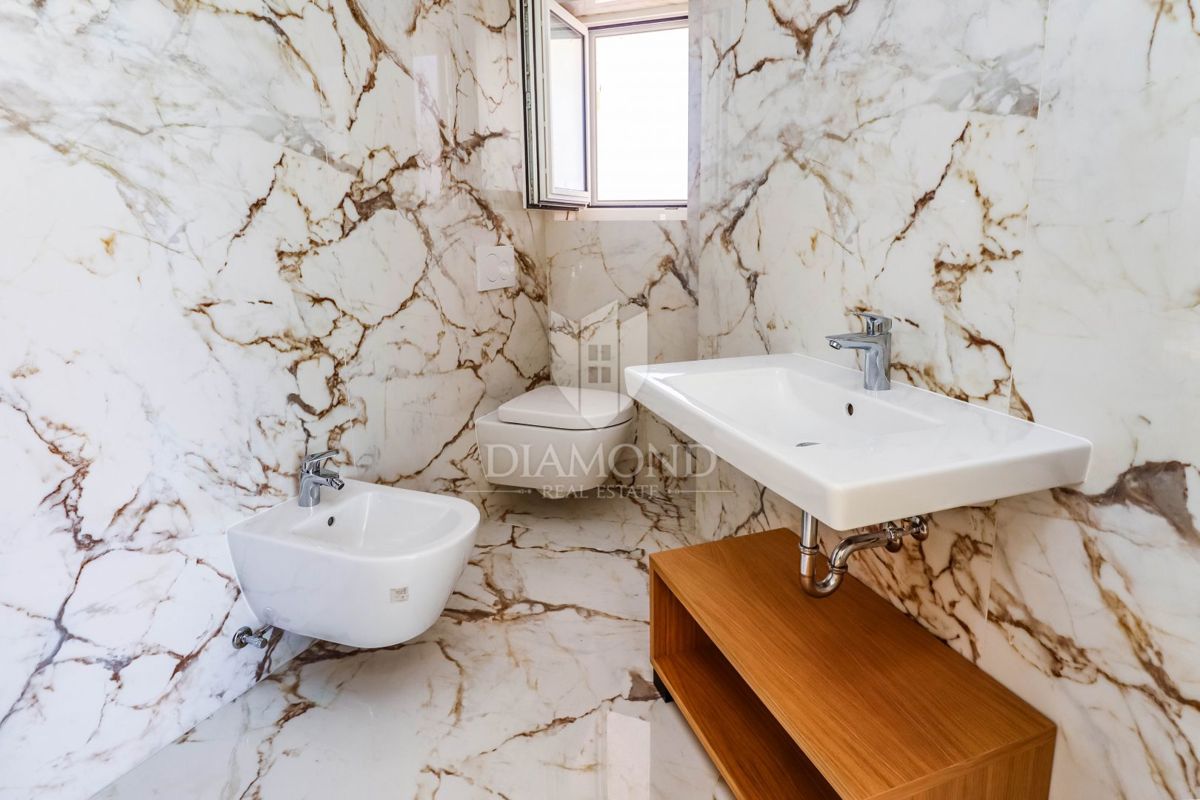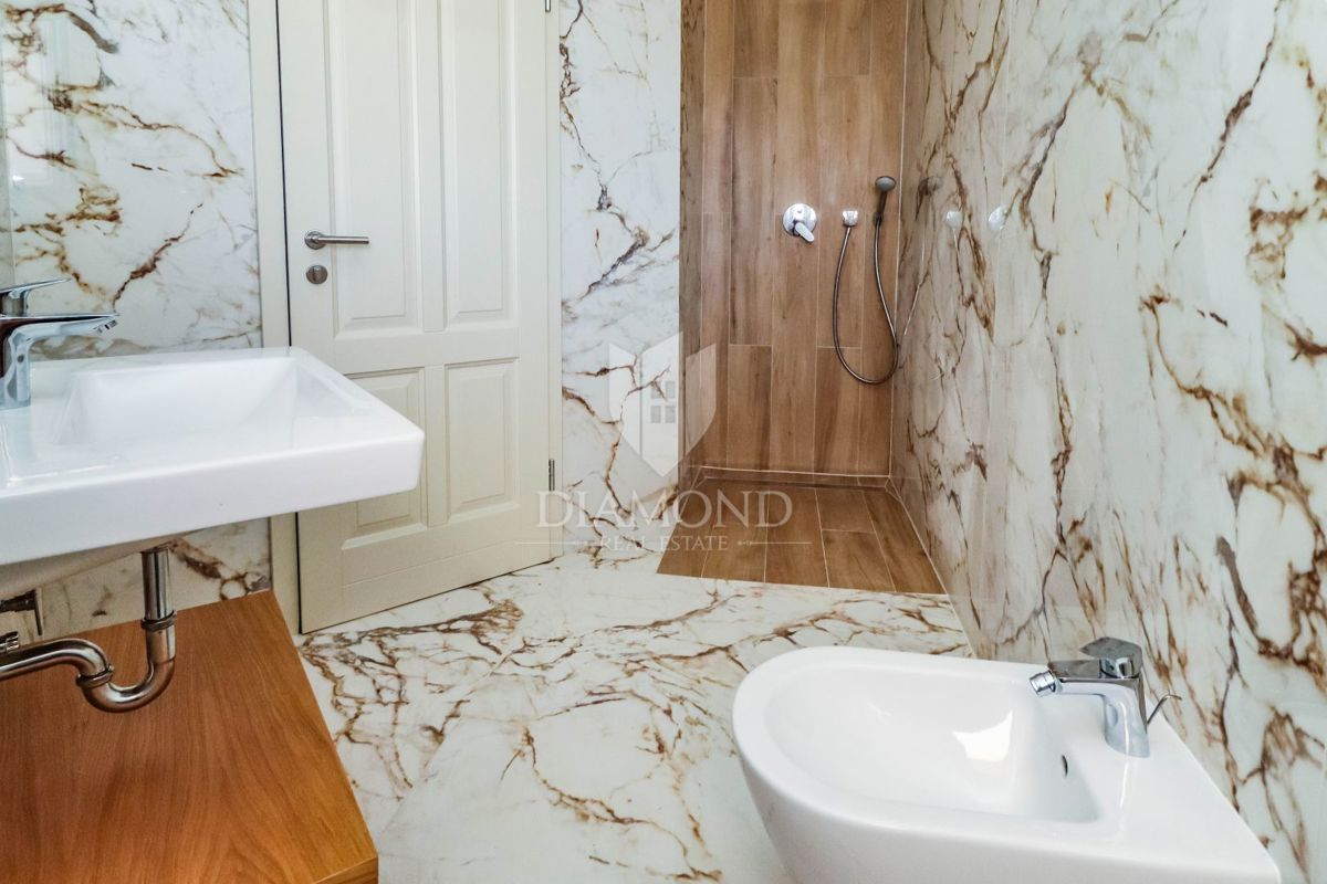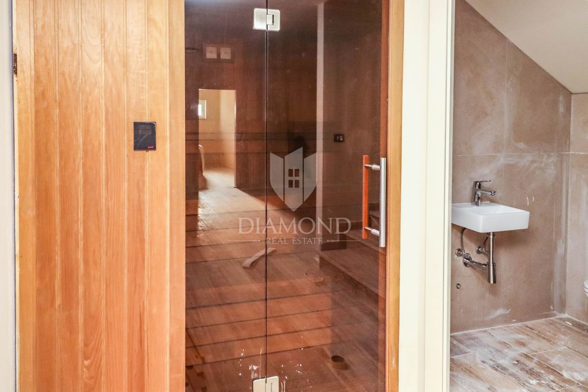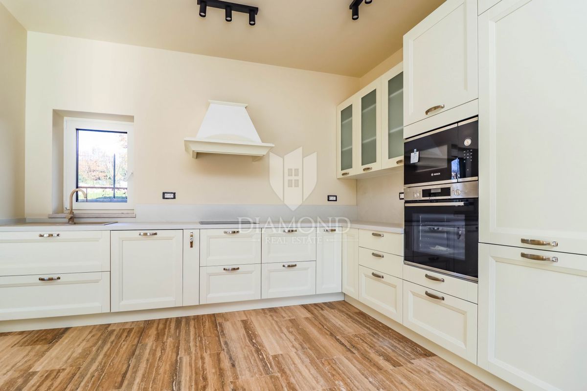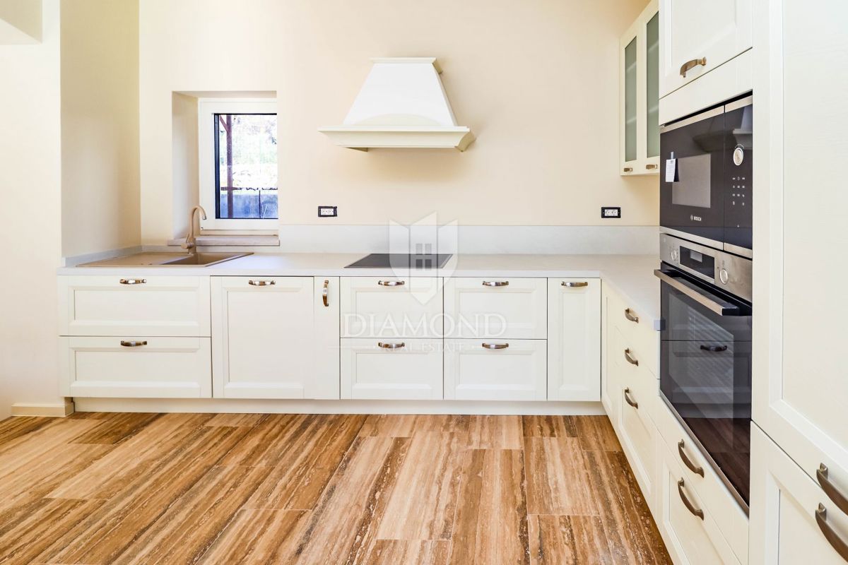 Poreč, okolica, Novogradnja s bazenom i pogledom na more! U okolici Poreča, na mirnoj lokaciji, smjestila se moderna vila koja nudi sve što je potrebno za uživanje. Njenih 243 m2 čine 3 kata. Na prvom katu nalazi se osunčana moderna kuhinja s blagovaoni