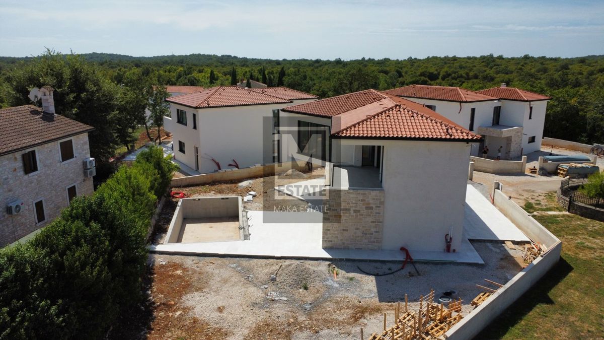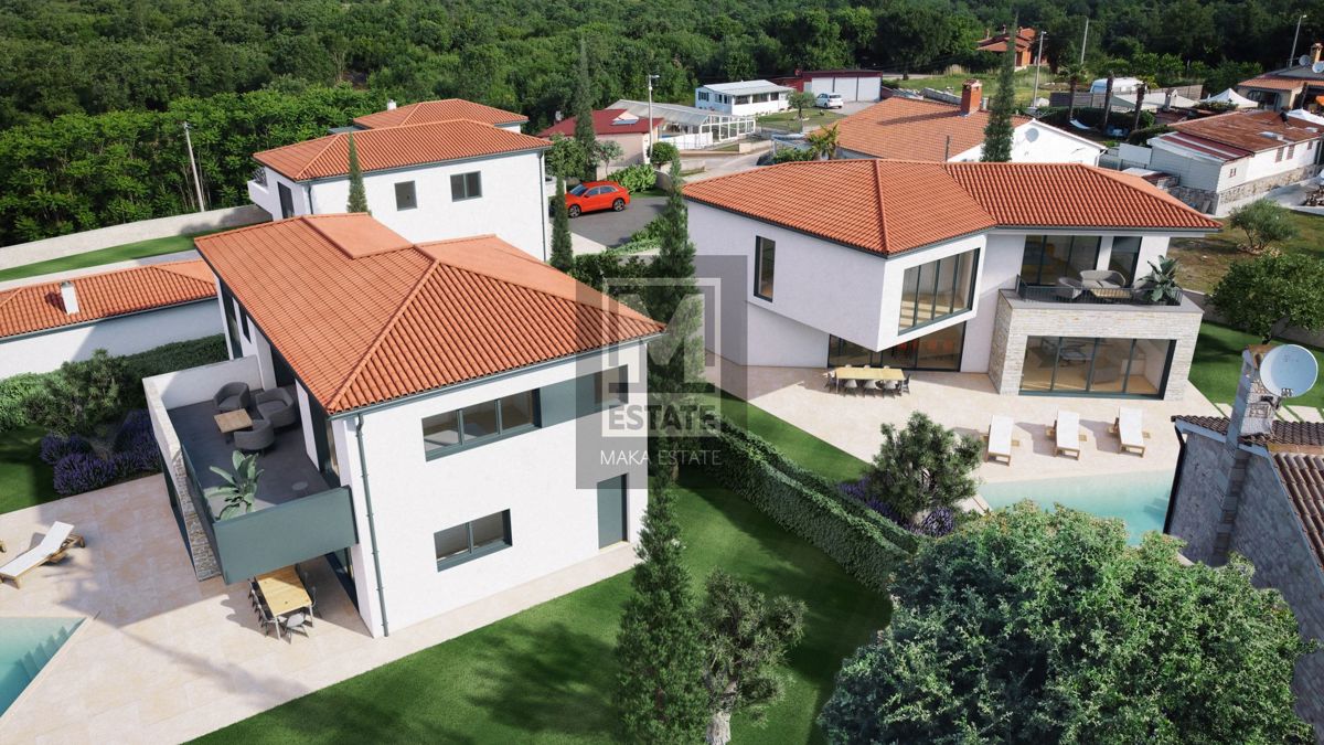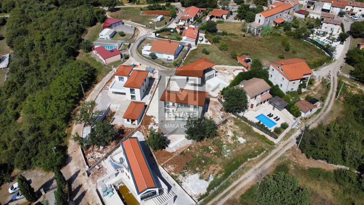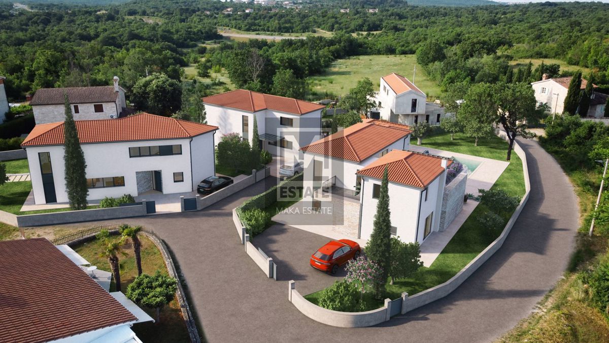 Poreč, okolica, Moderna kuća s bazenom U mirnom i slikovitom mjestu u okolici Poreča, smještene su tri iznimno kvalitetne moderne vile s prepoznatljivim istarskim akcentom, predstavljajući vrhunac luksuza i visoke kvalitete materijala. Jedna od očaravaj