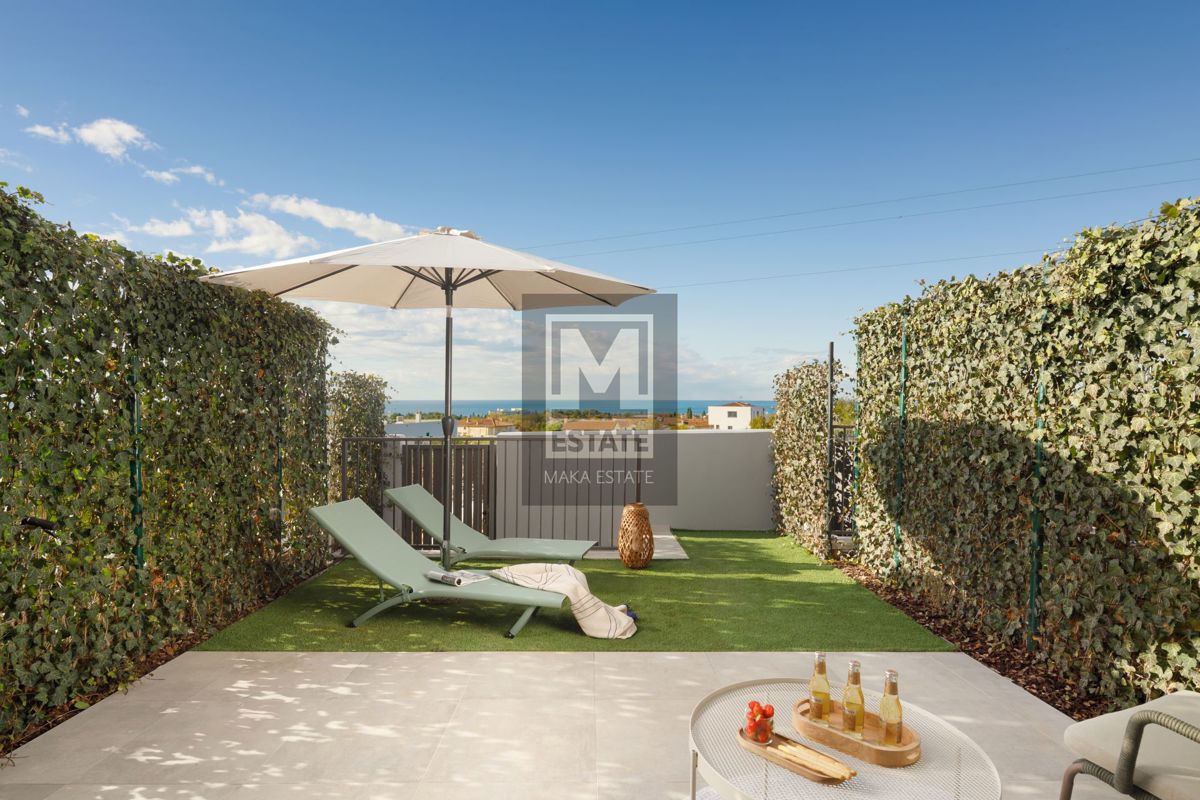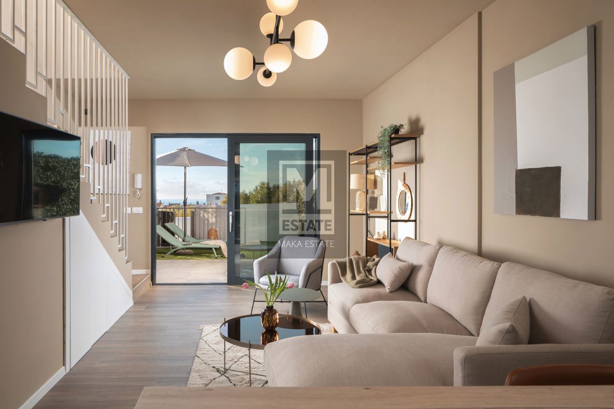Istra, Poreč, Kuća u nizu 900 m od mora Na prodaju je suvremena kuća u nizu, smještena samo 2 km udaljena od centra, dok su prekrasne plaže udaljene svega 900 metara. Kuća ima ukupnu površinu od 73,23 m2, uz dodatnih 43,31 m2 vrtne površine. Nekretnina
