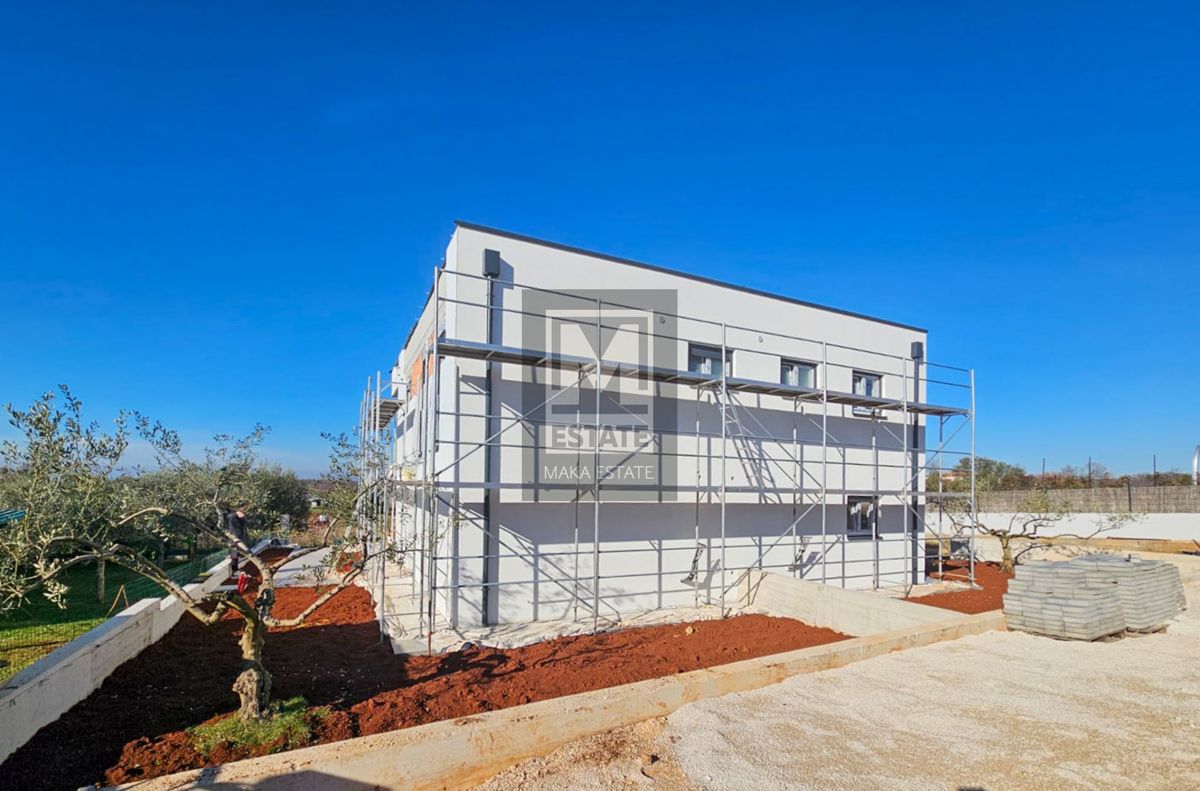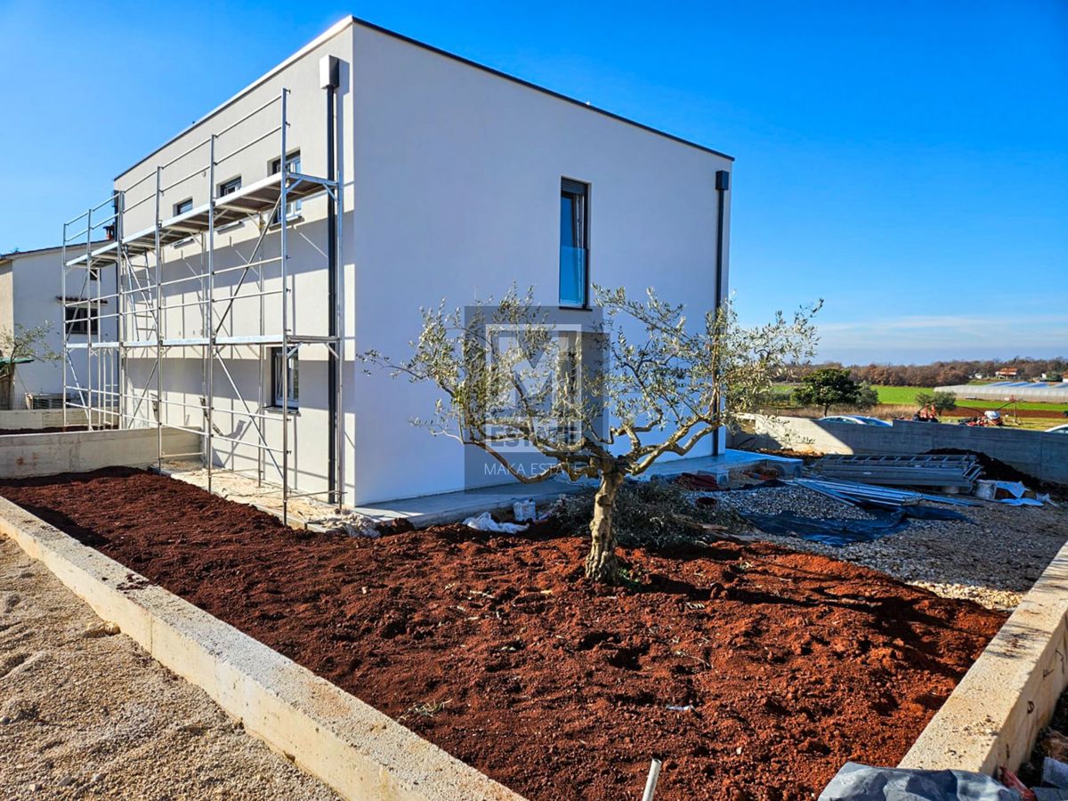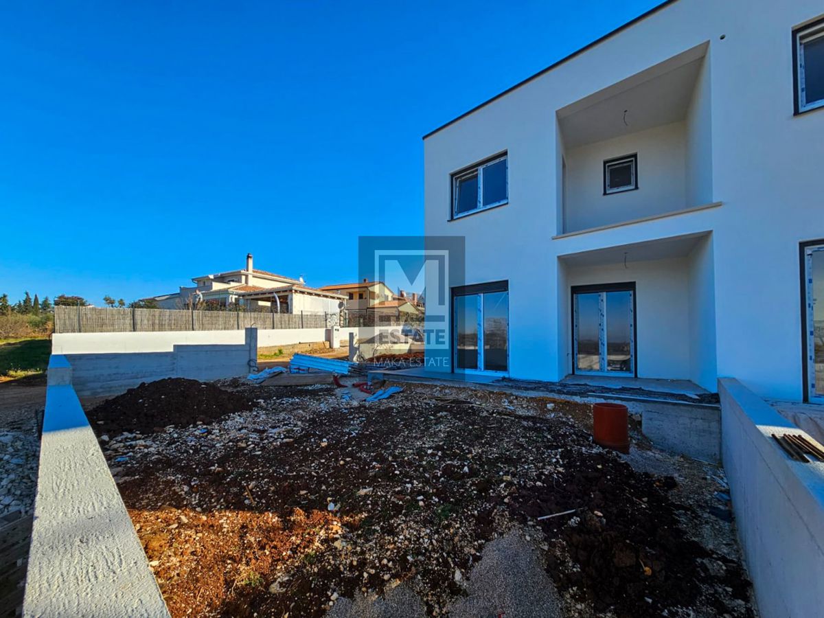 Poreč, okolica, odlična dvojnica sa pogledom na more! Suvremena dvojna kuća s pogledom na more - Poreč, okolica U idiličnom okruženju, samo 4 km udaljena od grada Poreča, smještena je ova izvanredna novoizgrađena dvojna kuća koja se ističe sofisticirani