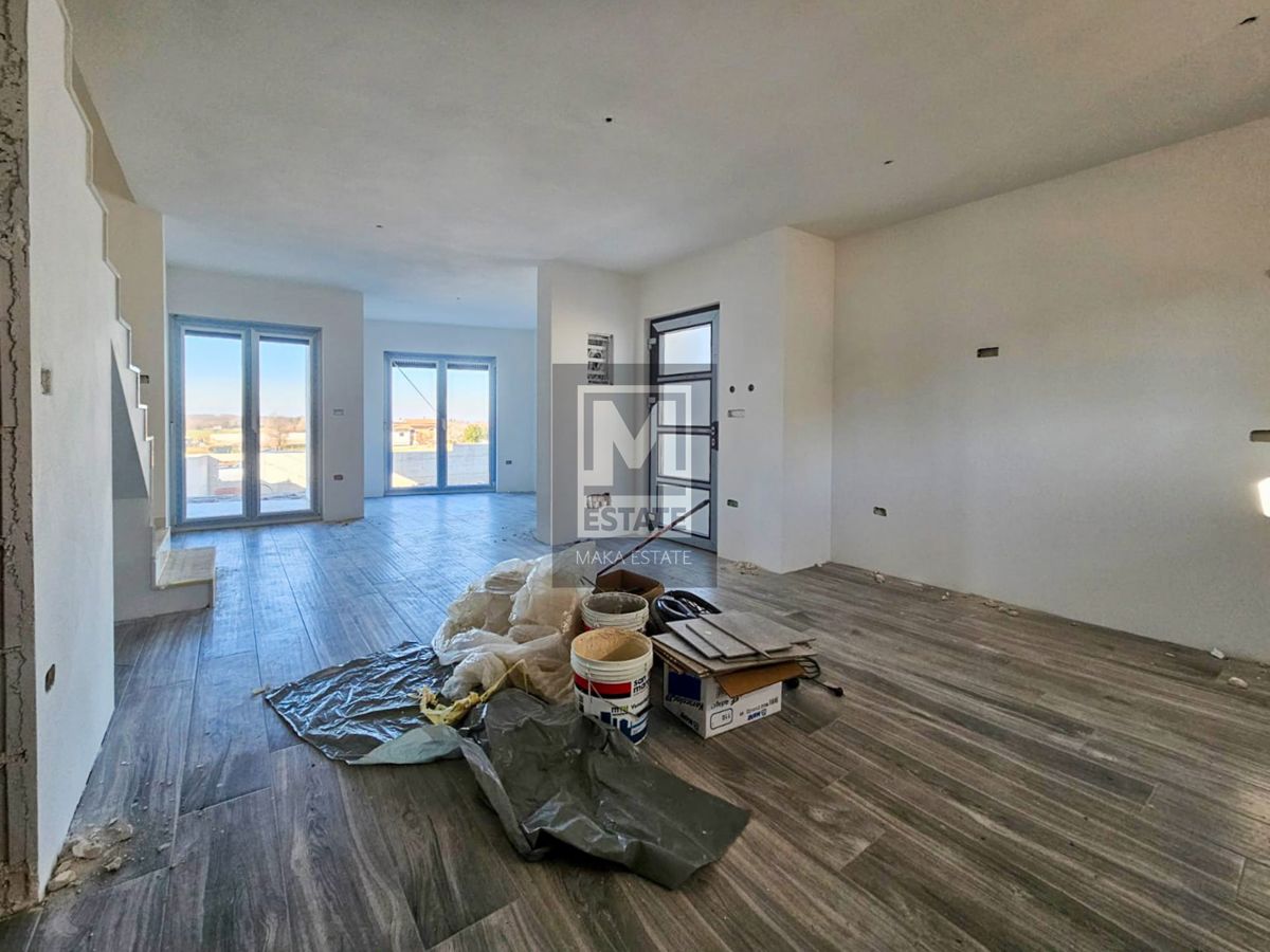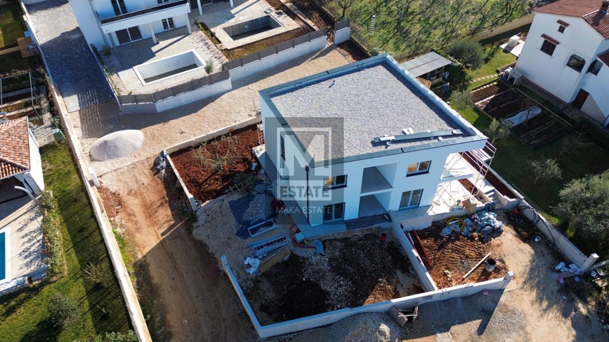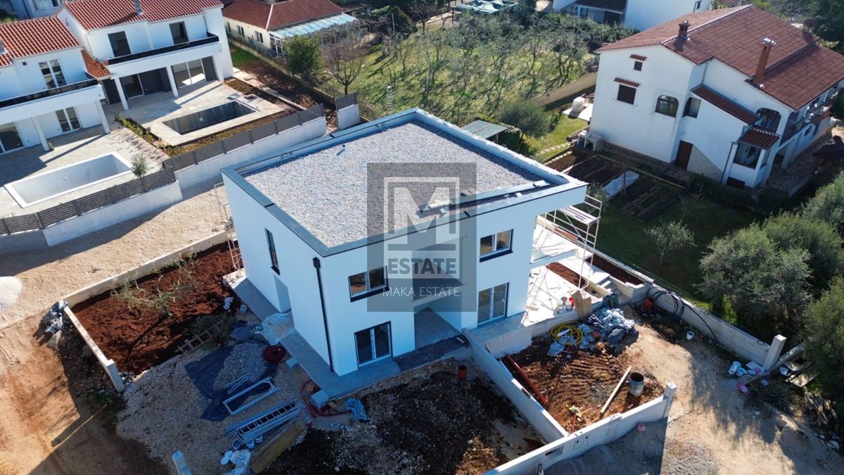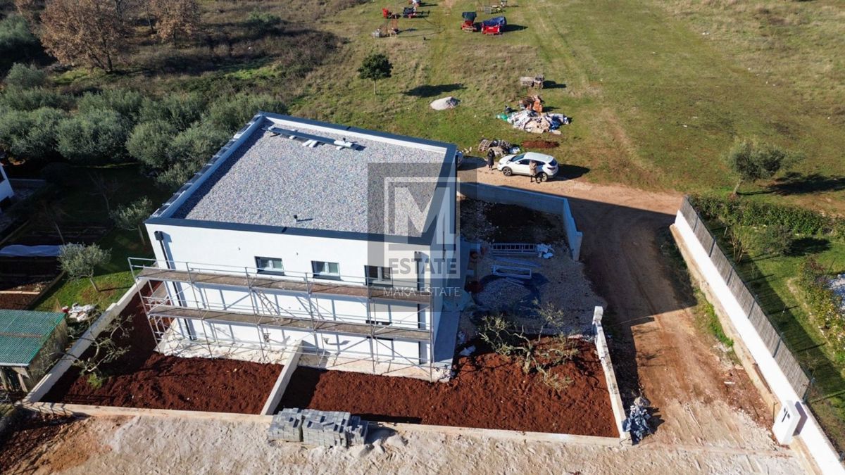 Poreč, okolica, odlična dvojnica sa pogledom na more! Suvremena dvojna kuća s pogledom na more - Poreč, okolica U idiličnom okruženju, samo 4 km udaljena od grada Poreča, smještena je ova izvanredna novoizgrađena dvojna kuća koja se ističe sofisticirani