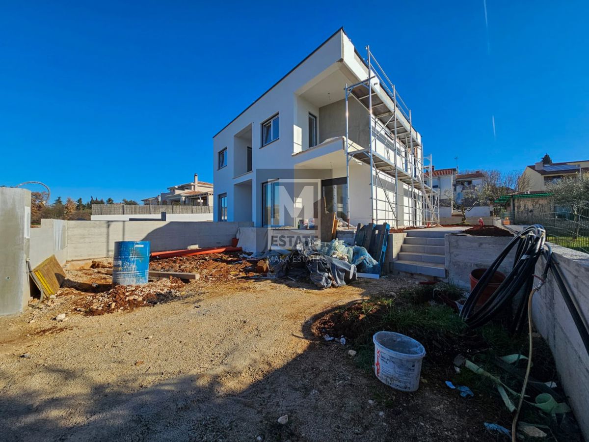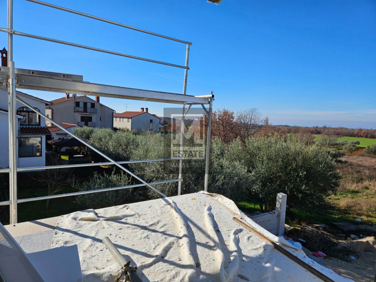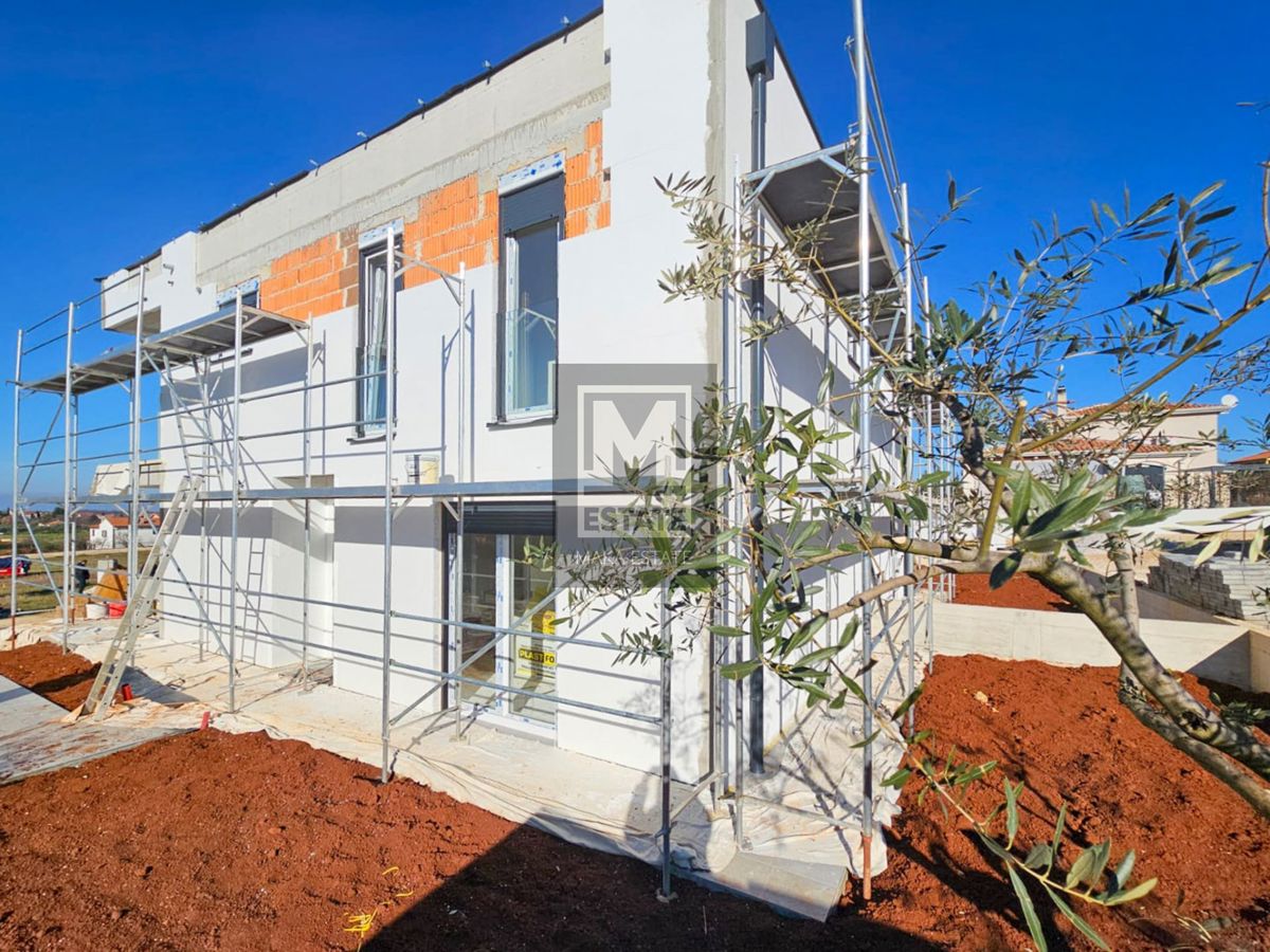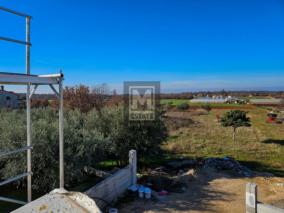 Poreč, okolica, odlična dvojnica sa pogledom na more! Suvremena dvojna kuća s pogledom na more - Poreč, okolica U idiličnom okruženju, samo 4 km udaljena od grada Poreča, smještena je ova izvanredna novoizgrađena dvojna kuća koja se ističe sofisticirani