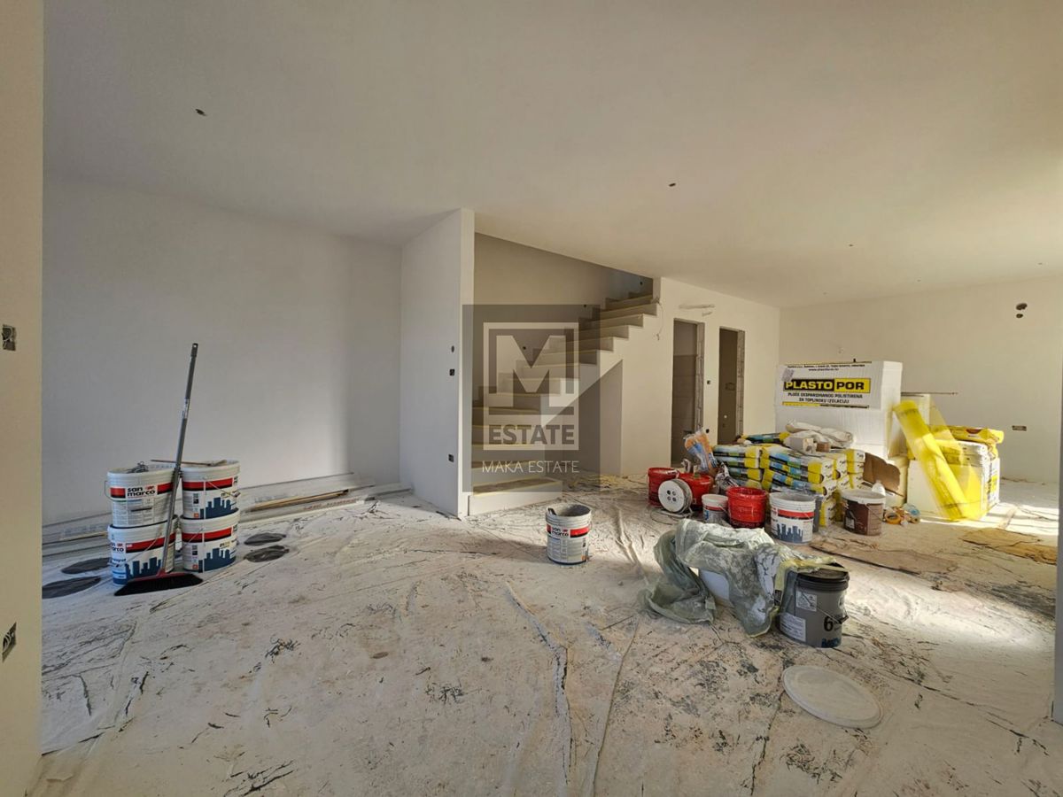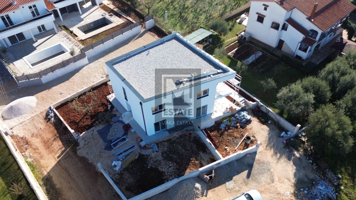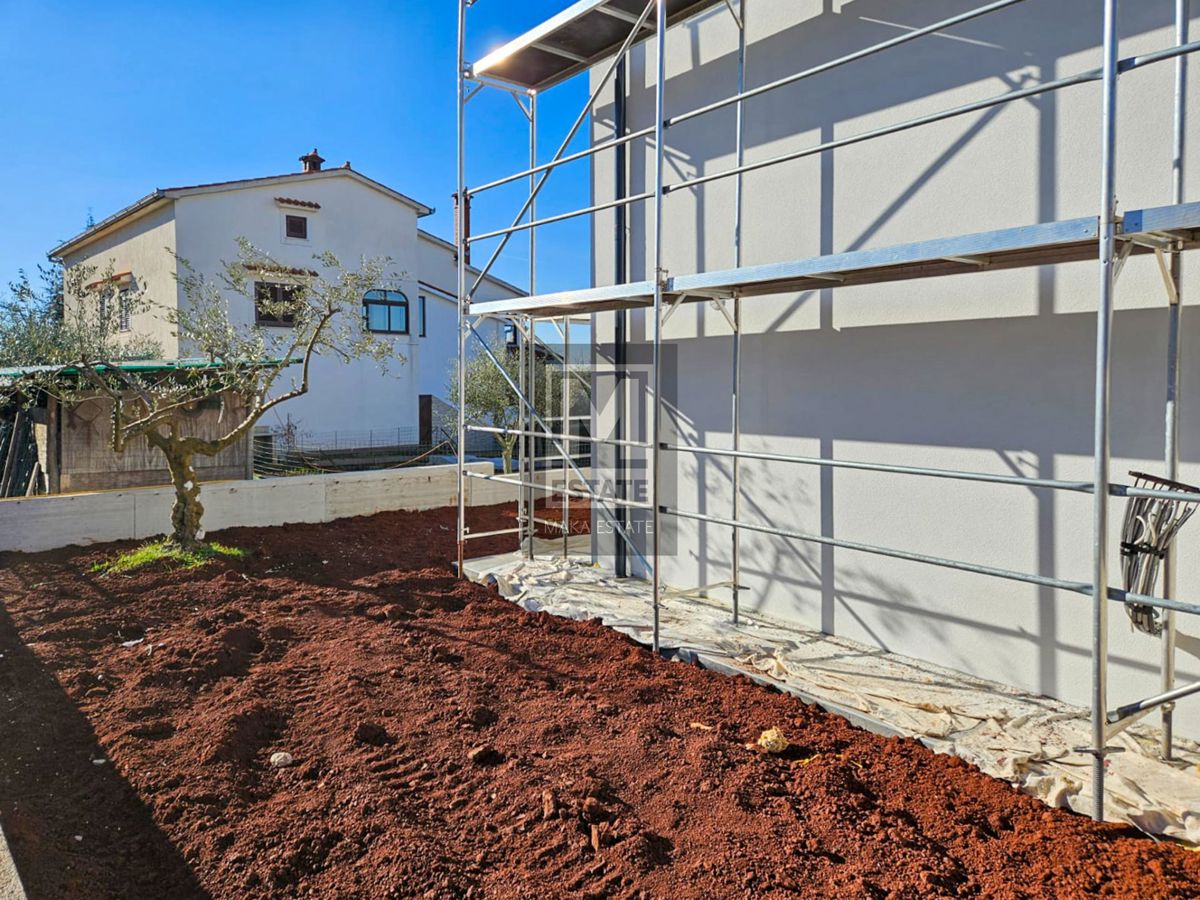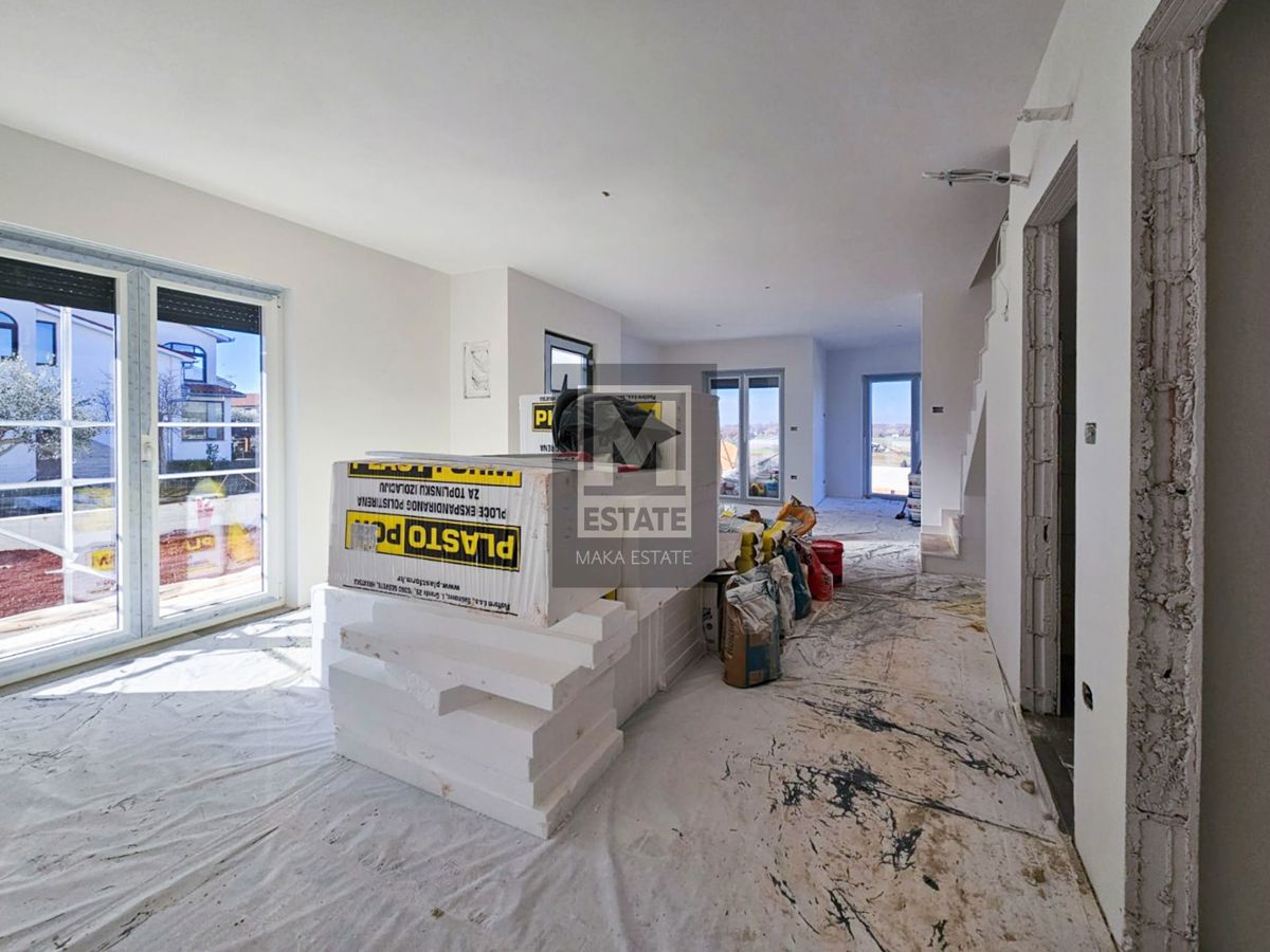 Poreč, okolica, odlična dvojnica sa pogledom na more! Suvremena dvojna kuća s pogledom na more - Poreč, okolica U idiličnom okruženju, samo 4 km udaljena od grada Poreča, smještena je ova izvanredna novoizgrađena dvojna kuća koja se ističe sofisticirani