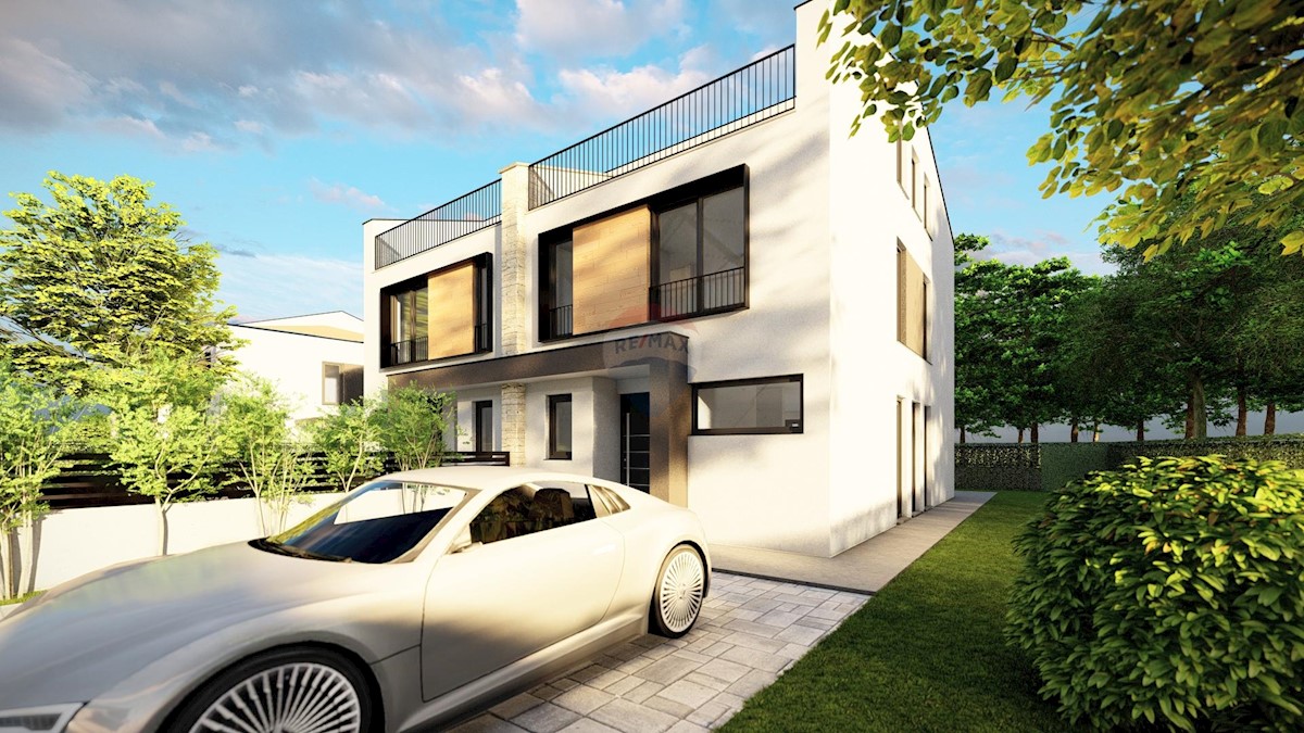 Na prodaju je jedinstvena duplex moderna kuća smještena samo par kilometara od Poreča i mora. Sastoji se od dva djela, prizemlje svakog čine ulazni hodnik, praonica/tehnička prostorija, wc, kuhinja, dnevni boravak s blagovaonicom. Na katu dvije spavaće so