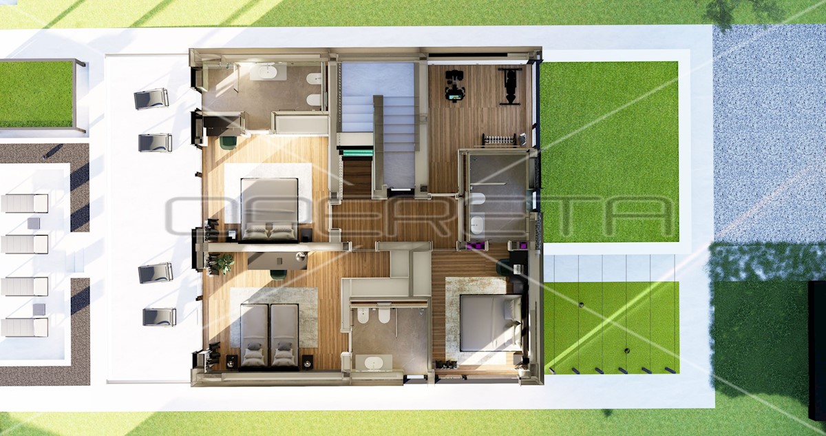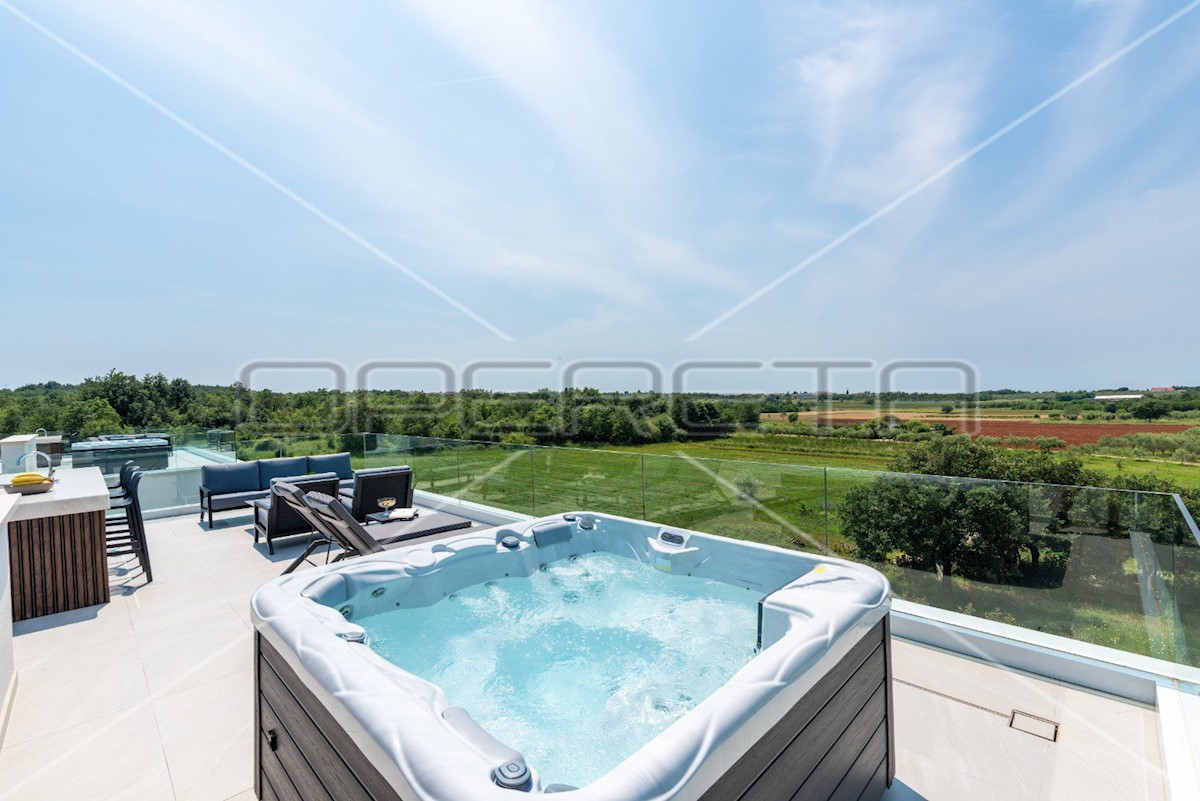Ekskluzivna vila kraj Poreča s pogledom na more - Villa FourProjekt vila u Kukcima kod Poreča predstavlja vrhunac luksuznog stambenog smještaja. Smješten na posljednjoj ulici naselja, na rubnim parcelama građevinske zone, kompleks nudi izuzetan pogled na
