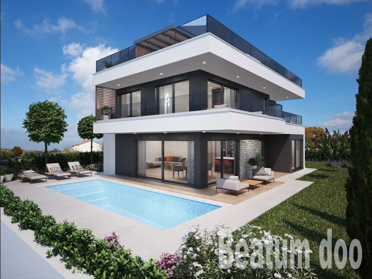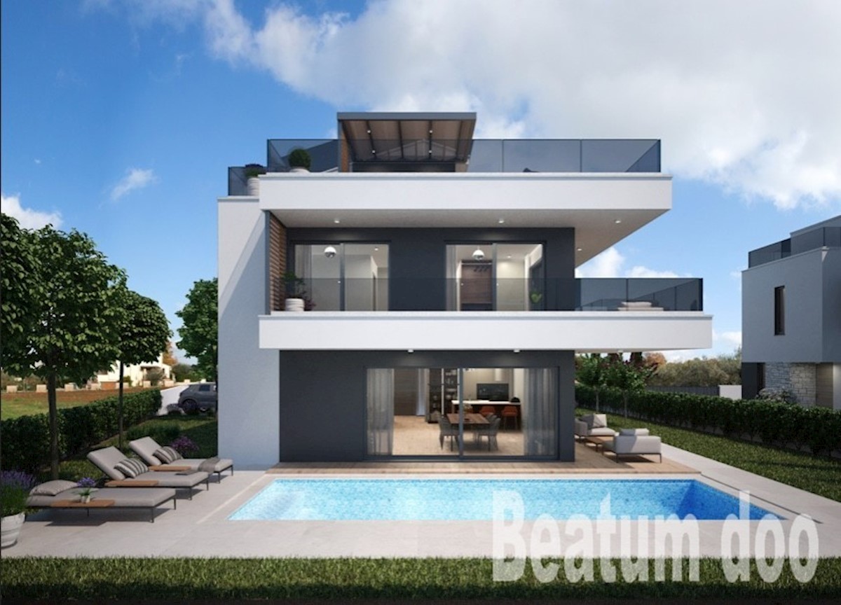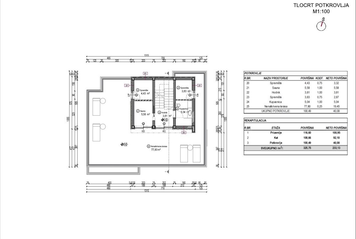 Kuća u gradnji,Poreč U prizemlju :dnevni boravak,kuhinja,spremište,tehnička soba,wc,welness Na katu:tri spavaće sobe,tri kupatila U potkrovlju:dva spremišta,sauna,kupatilo Podno grijanje(električno)u cijeloj kući. Dva parking mjesta Vanjski bazen