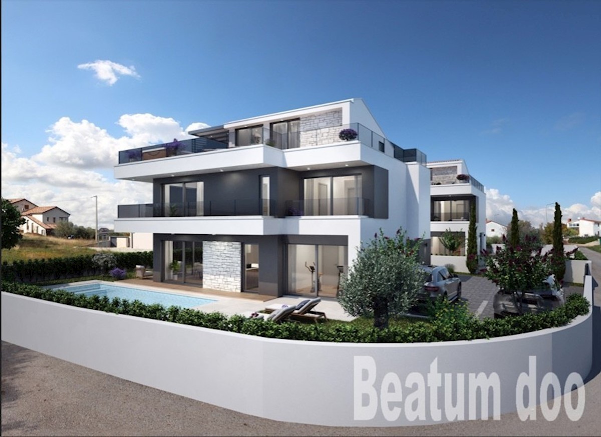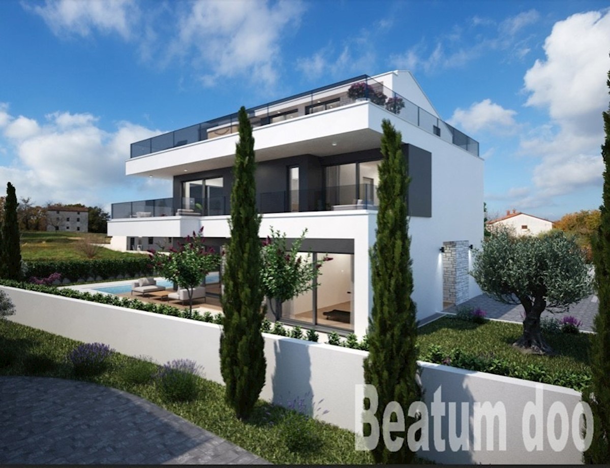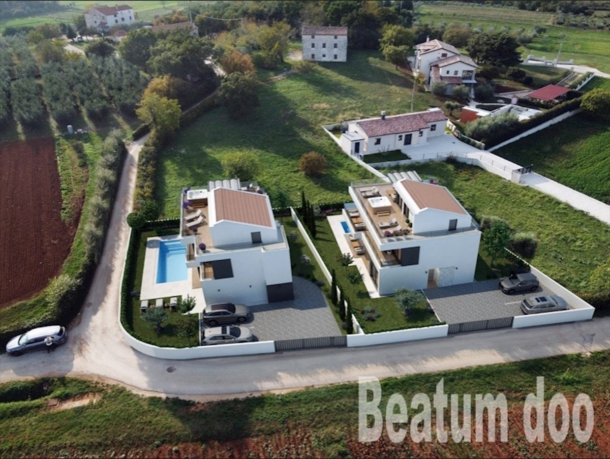 Kuća u gradnji,Poreč U prizemlju :dnevni boravak,kuhinja,spremište,tehnička soba,wc,welness Na katu:tri spavaće sobe,tri kupatila U potkrovlju:dva spremišta,sauna,kupatilo Podno grijanje(električno)u cijeloj kući. Dva parking mjesta Vanjski bazen