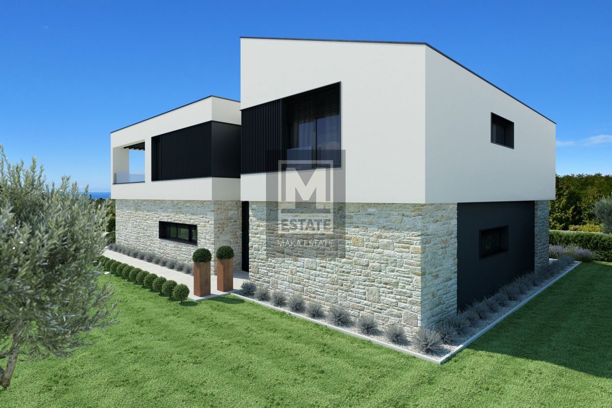 Poreč, okolica, luksuzna moderna vila sa panoramskim pogledom na more! Na istaknutoj lokaciji, samo 5 km udaljenoj od bisera Istre, grada Poreča, uzdiže se ova bajkovita vila u fazi izgradnje, predstavljajući vrhunac modernog dizajna i udobnog životnog p