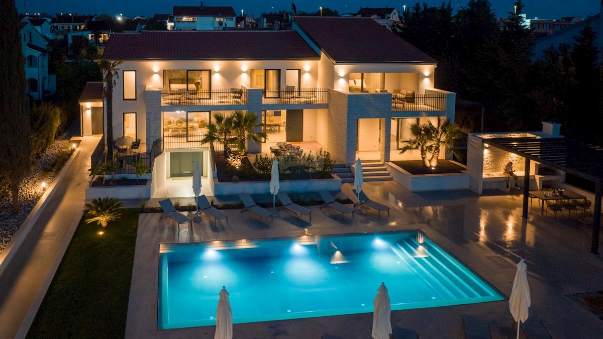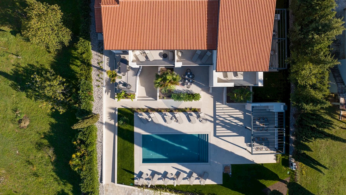 U Poreču, nadomak plaža i svih potrebnih sadržaja prodajemo ovu modernu novogradnju sa tri dvoetažne stambene jedinice. Kuća je smještena na pomno uređenoj i prostranoj okućnici od 1378 m2 na kojoj se smjestilo sunčalište sa grijanim bazenom te vanjska ku