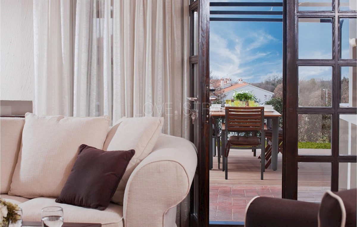 Na samo 2,5 km od Poreča i 3,5 km od mora nalazi se ova lijepa kuća. Kuća je veličine 330 m2 i sastoji se od suterena gdje se nalazi : Garaža za 2 auta, kotlovnica, praonica i spremište. U prizemlju nalazi se : 2 kupatila , 3 spavaće sobe , Wc za goste, h