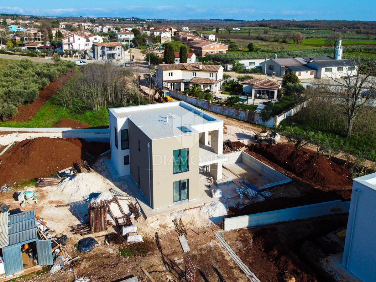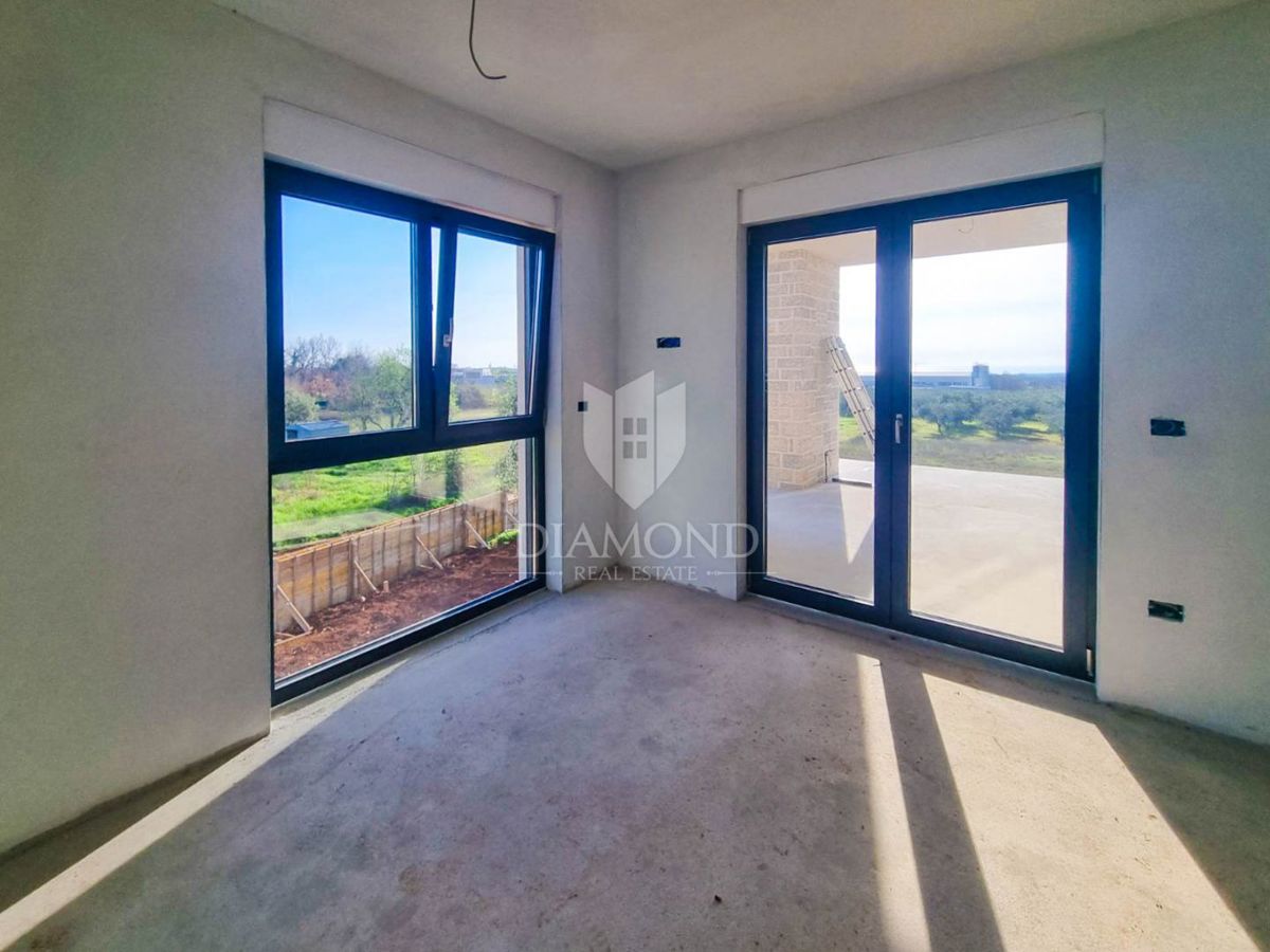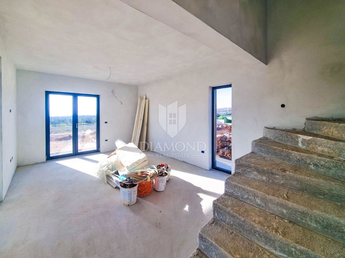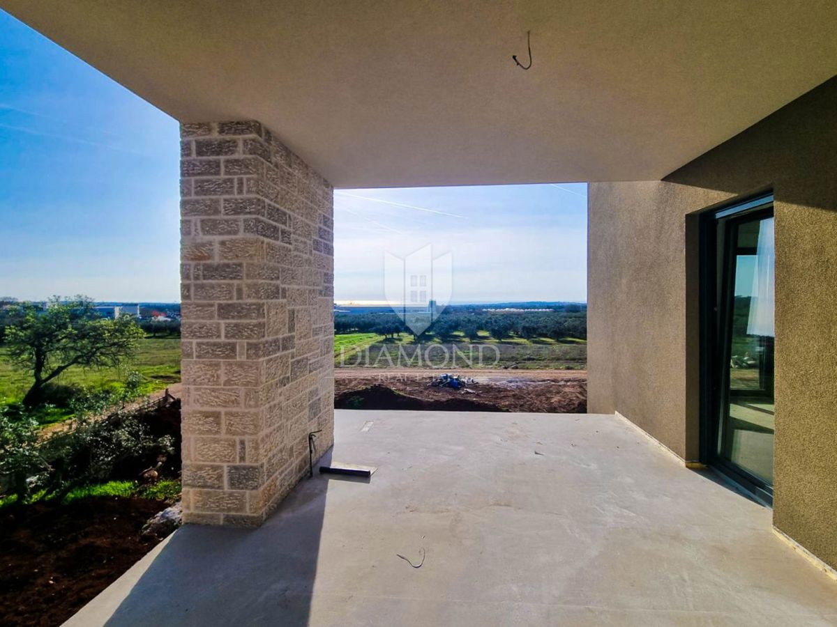 Poreč, okolica, moderna vila sa panoramskim pogledom na more! U interesantnom djelu na sjeverozapadu Istre, na samo deset kilometara udaljenosti od Poreča i mora smjestila se ova moderna vila sa panoramskim pogledom na more. Njezina ukupna površina iznos