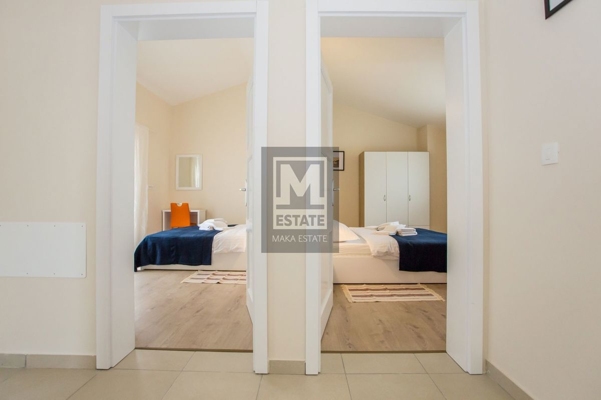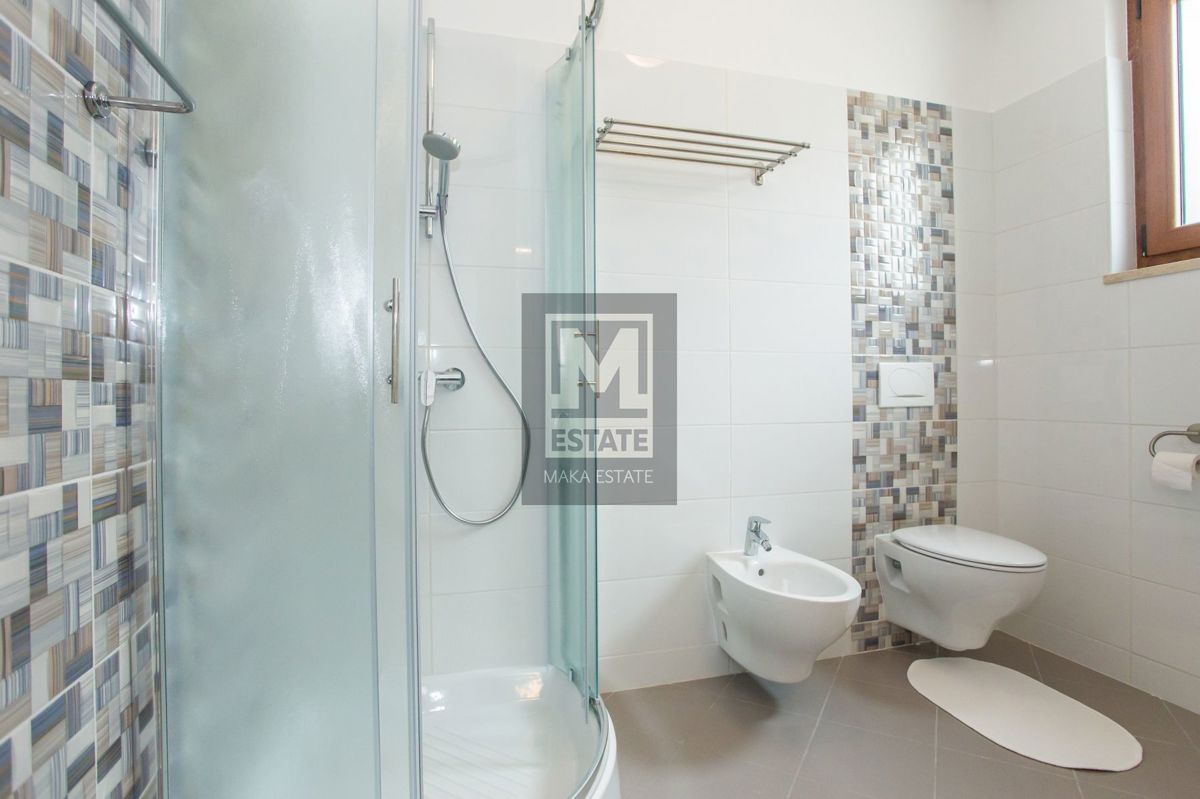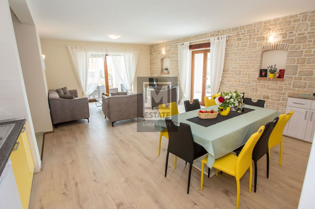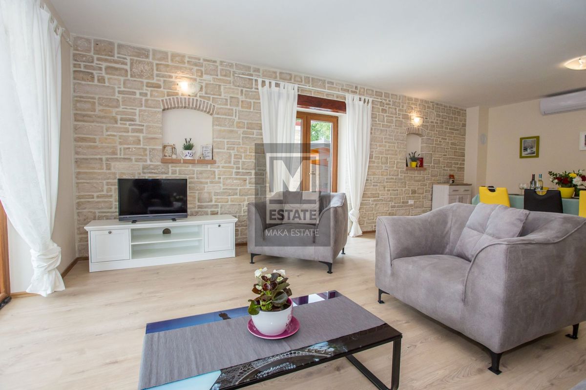 Poreč, okolica, Samostojeća kuća s bazenom i pogledom na more U mirnom okruženju udaljenom 7 kilometara od obale i prvih plaža, te 11 kilometara od živopisnog centra Poreča, smjestila se ova prostrana kuća na parceli od 464 kvadratna metra. Sa svojih 18