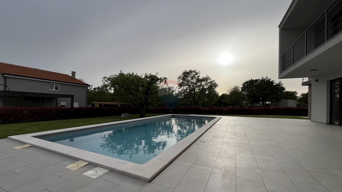 U bližoj okolici Poreča, na samo 5 minuta vožnje od grada i mora prodaje se moderna novogradnja sa uređenom okućnicom i bazenom. Kuća je ukupne površine 140 m2 na dvije etaže. U prizemlju se nalazi jedan wc, ulazni hodnik iz kojeg se ulazi u veliki open-s