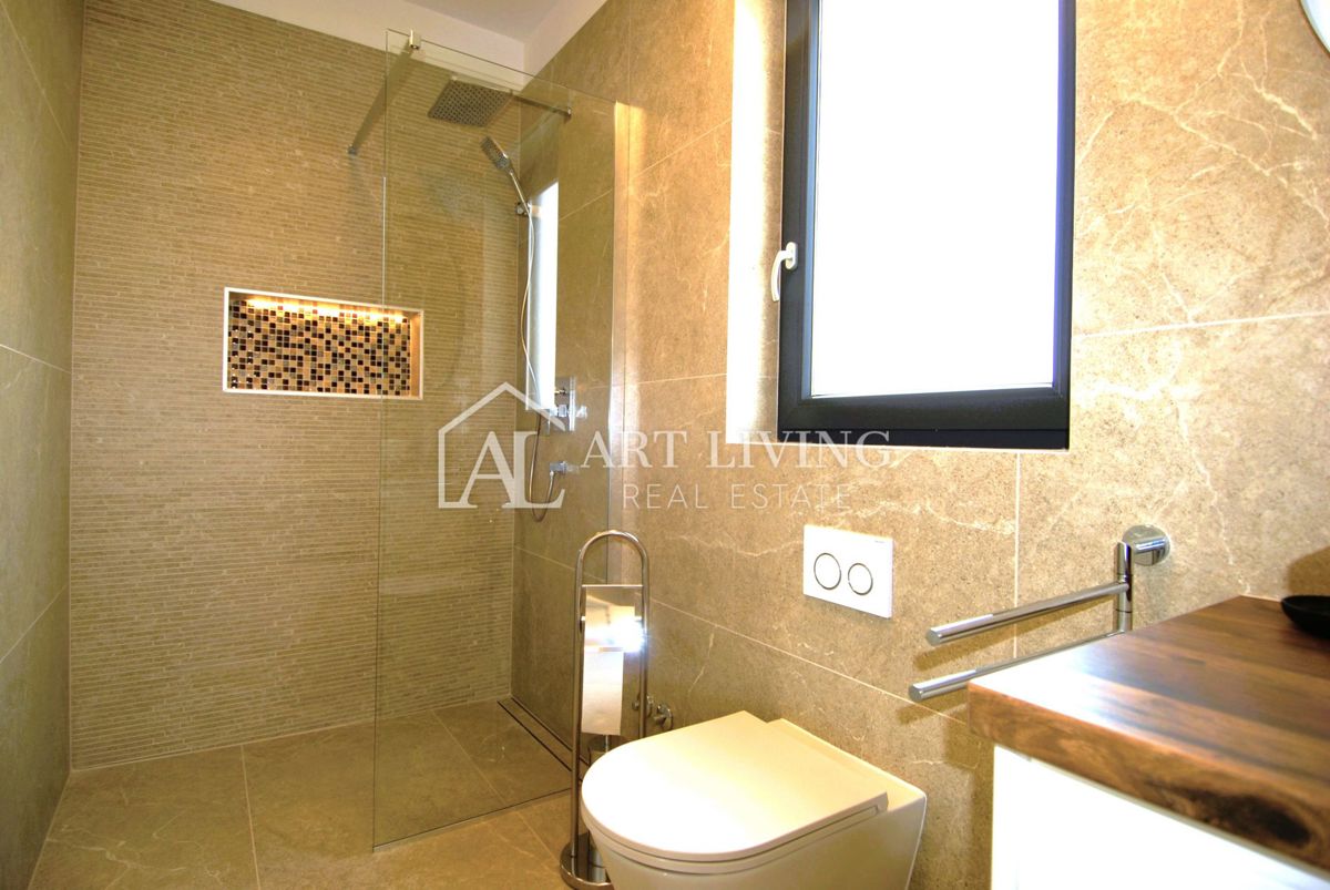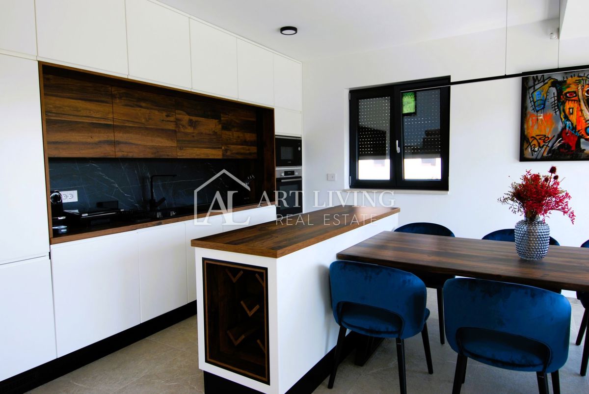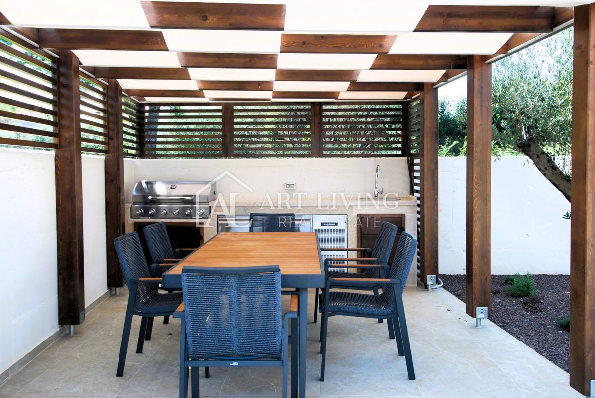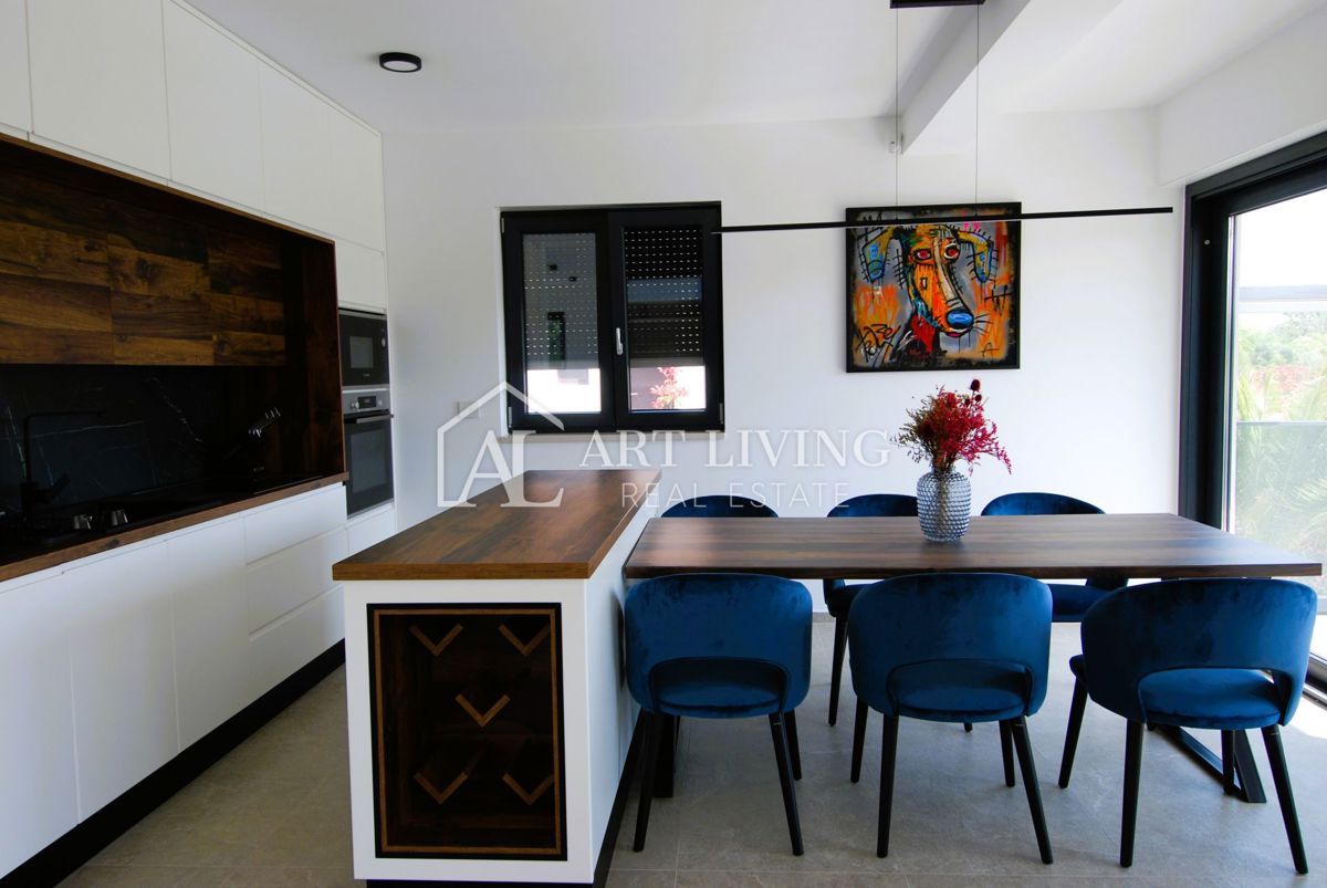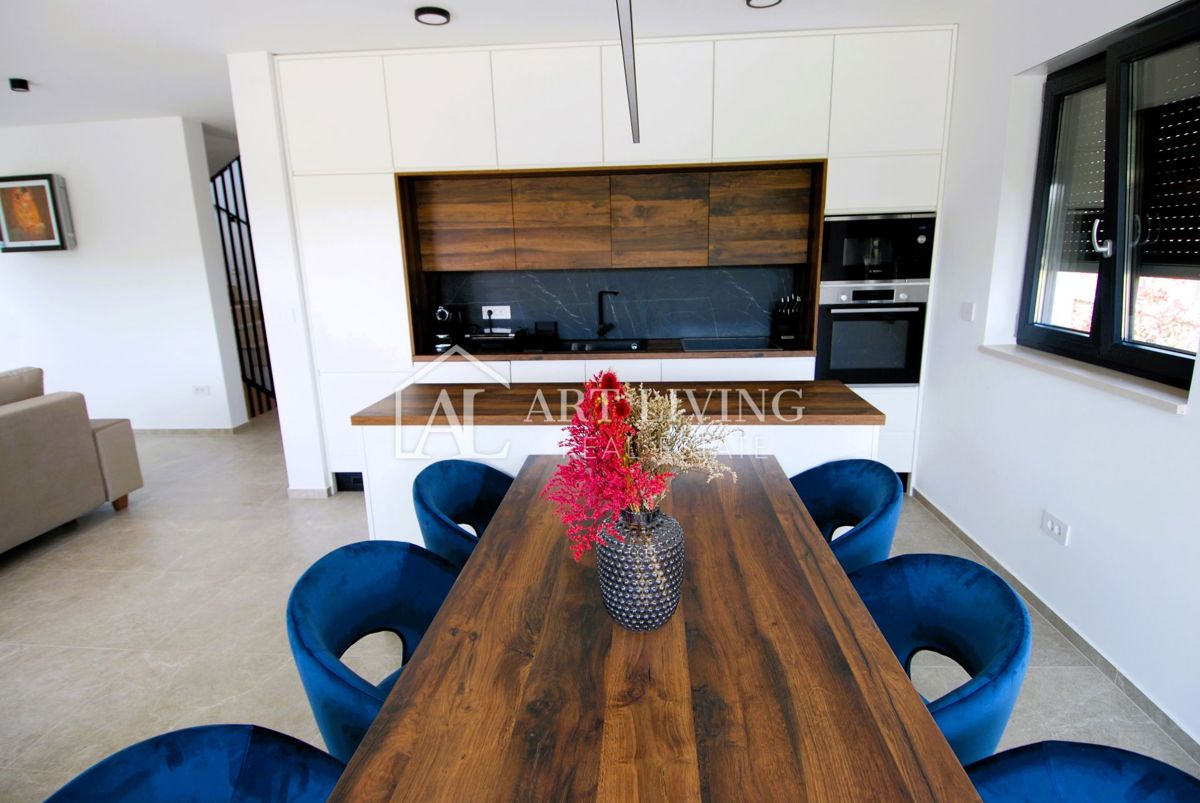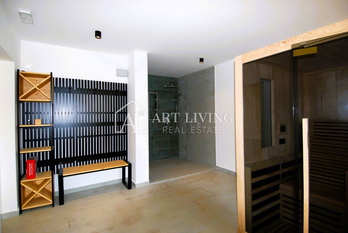Istra, Poreč Prodaje se luksuzna vila s bazenom u Poreču, udaljena samo 1500 metara od mora. Ova moderna villa ukupne površine 218 m2 prostire se na 3 etaže i potpuno je opremljena stilskim namještajem s posebnom pažnjom posvećenom kvaliteti i detaljima