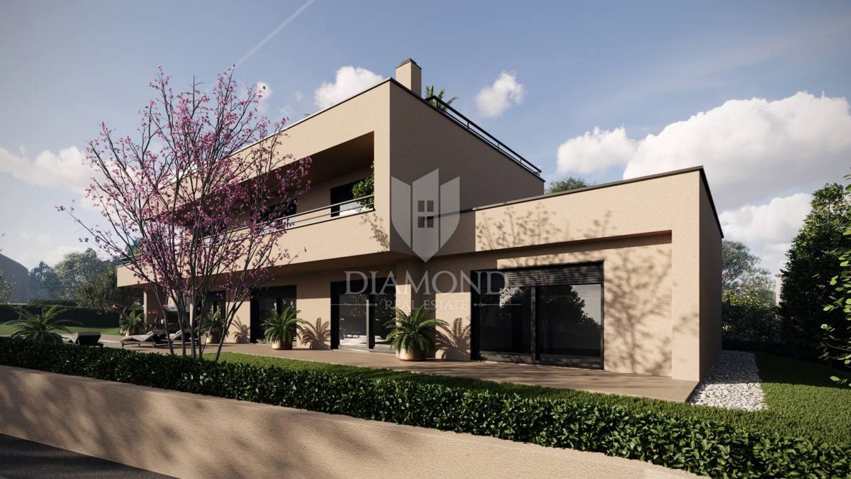 Okolica Poreča, impozantna moderna vila sa pogledom na more U predgrađu grada Poreča na prostranom zemljištu od ukupno 979 m2 smjestit će se ova impozantna moderna vila sa fantastičnim pogledom na more i okolicu. Njezina ukupna bruto površina iznosit će